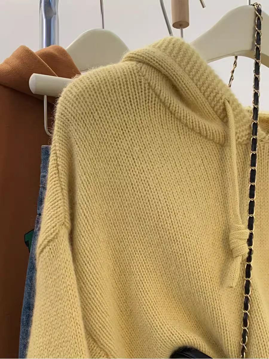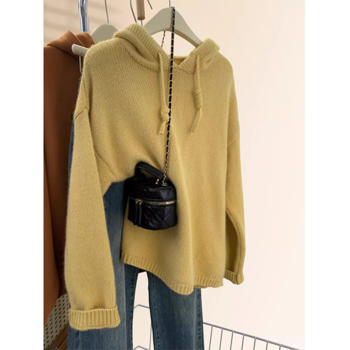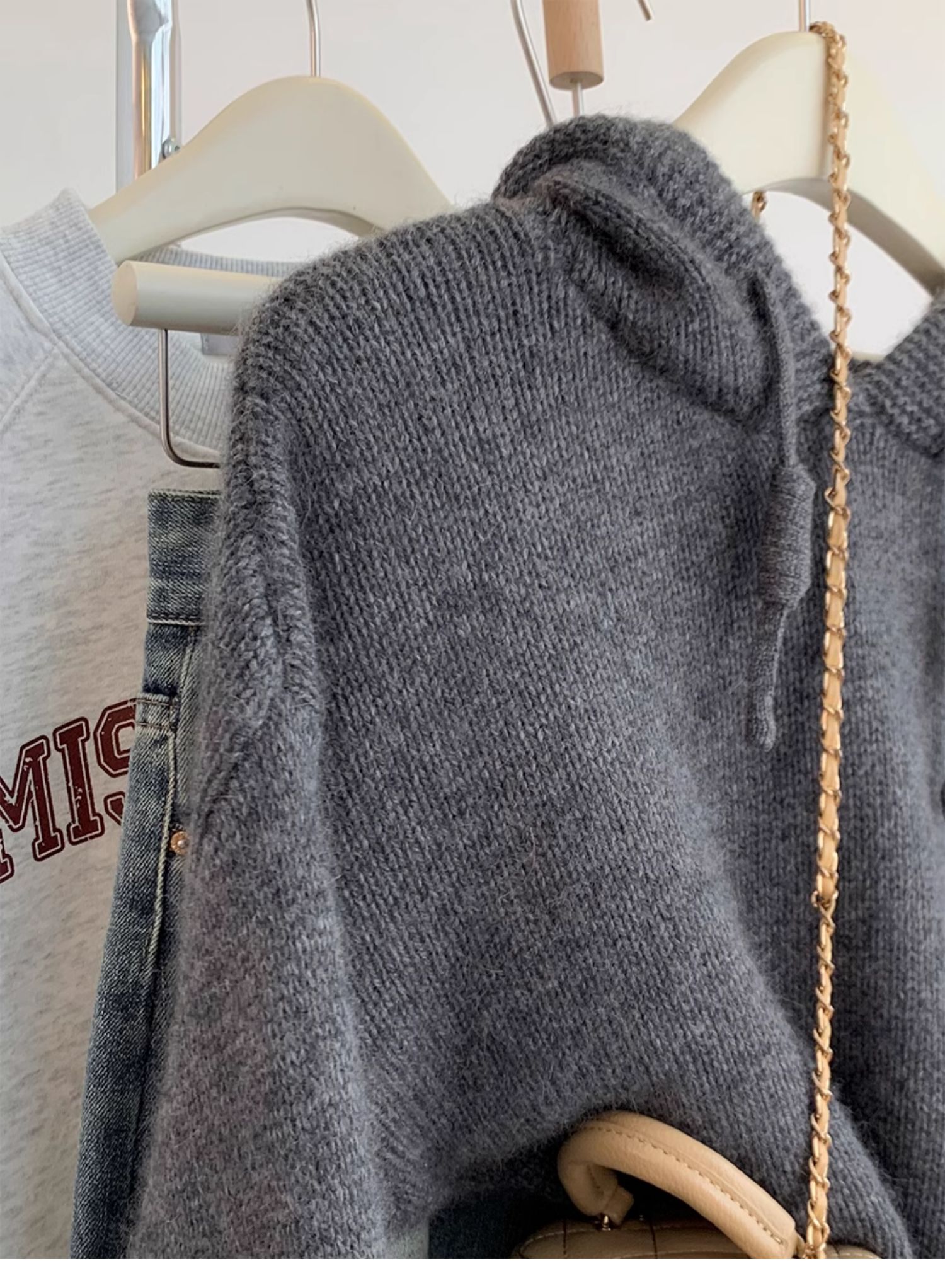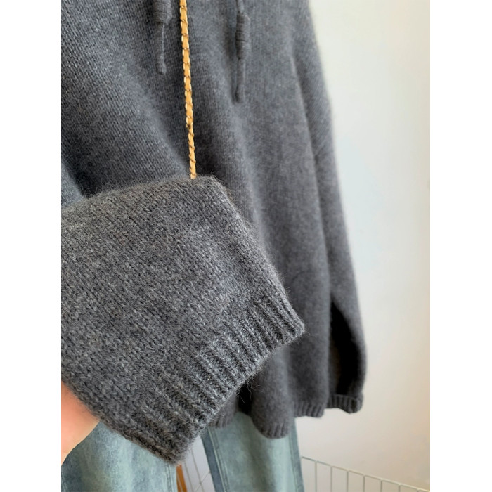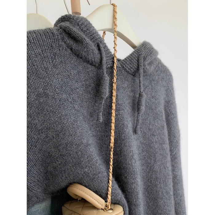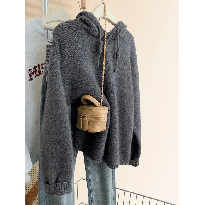 灰色浣熊絨連帽毛衣女秋冬季加厚慵懶風高級感帶帽針織衫衛衣帽衫