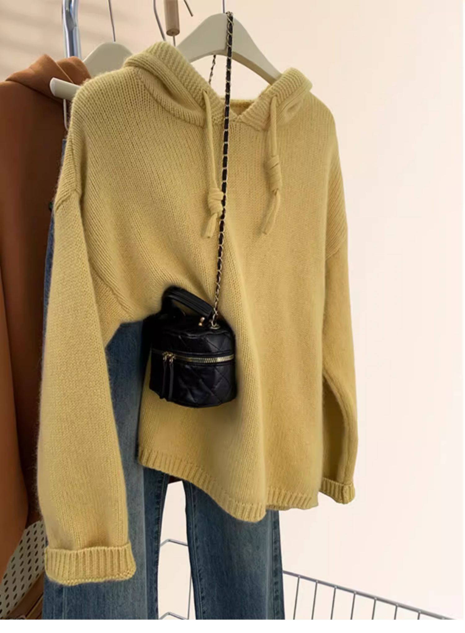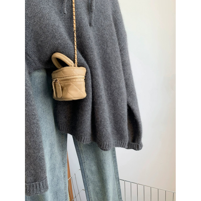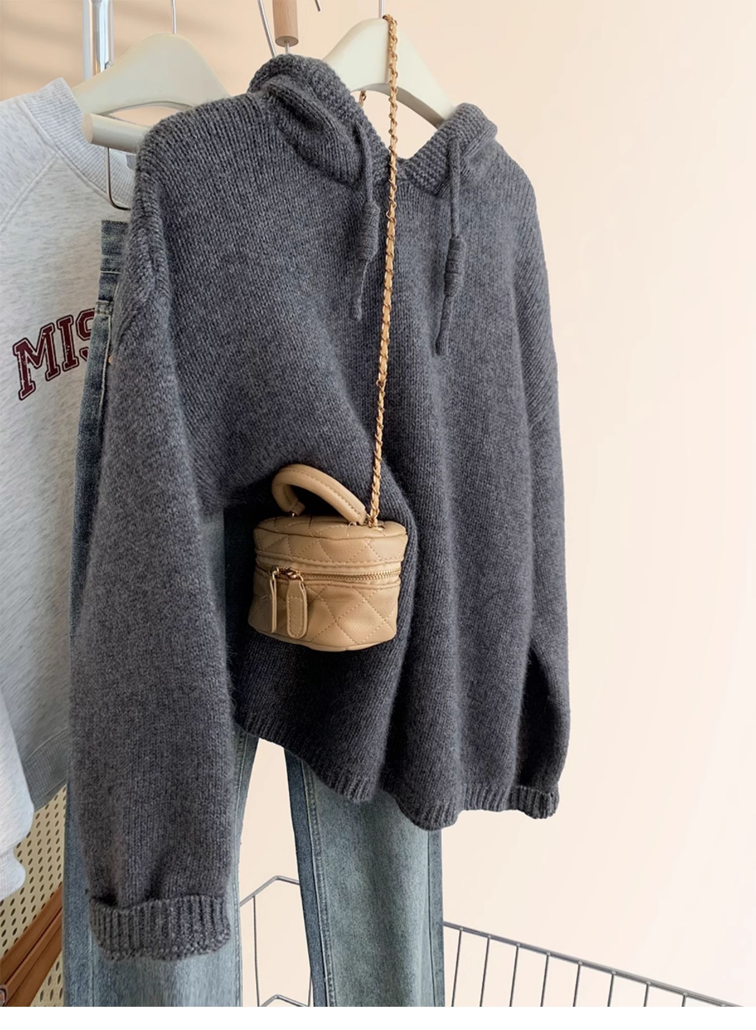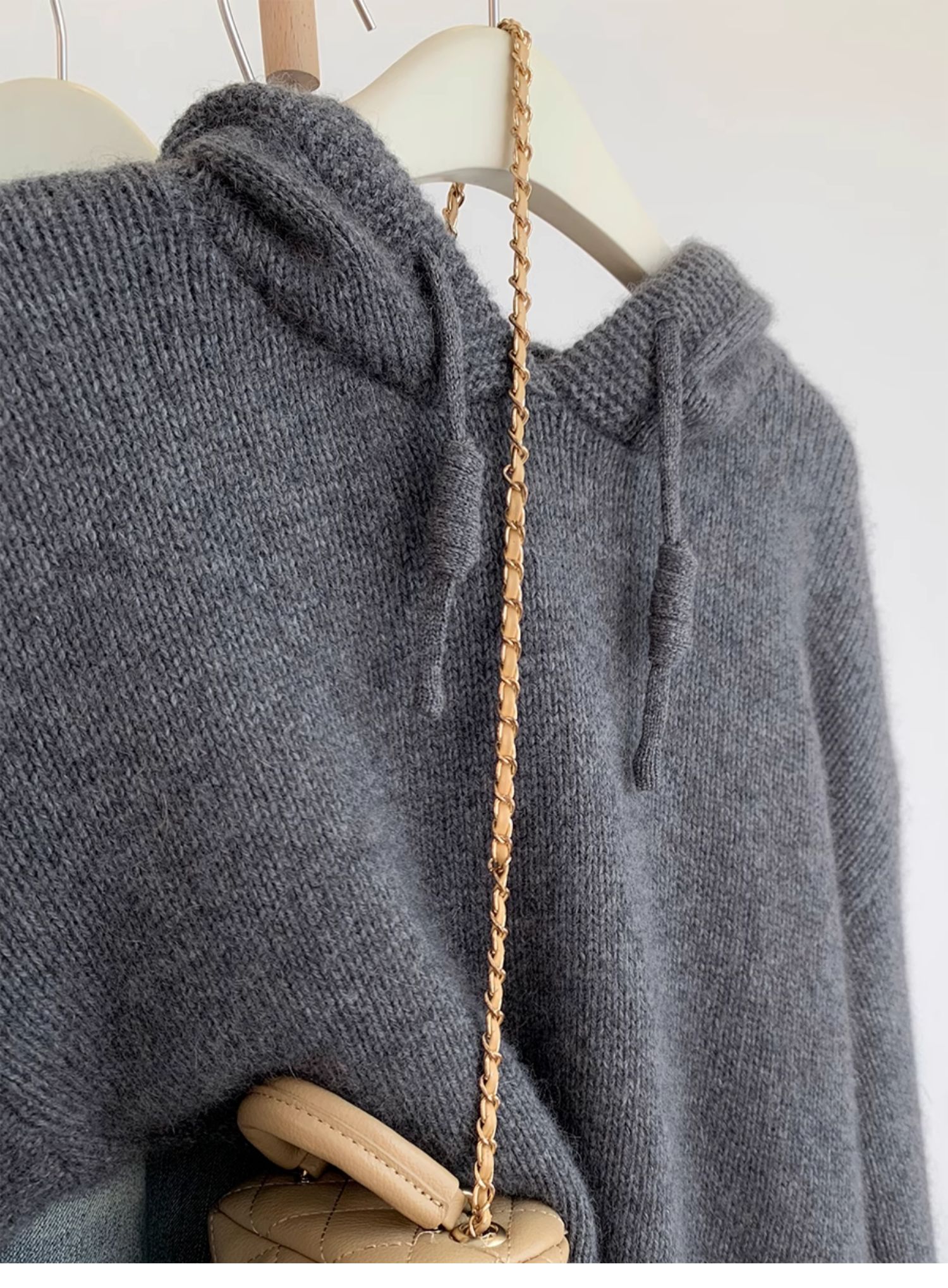 灰色浣熊絨連帽毛衣女秋冬季加厚慵懶風高級感帶帽針織衫衛衣帽衫