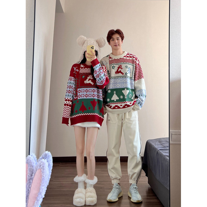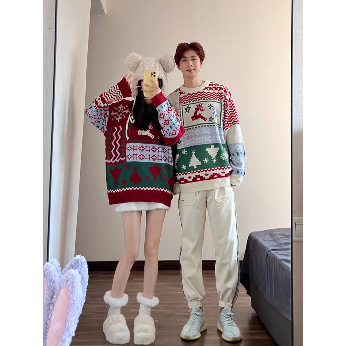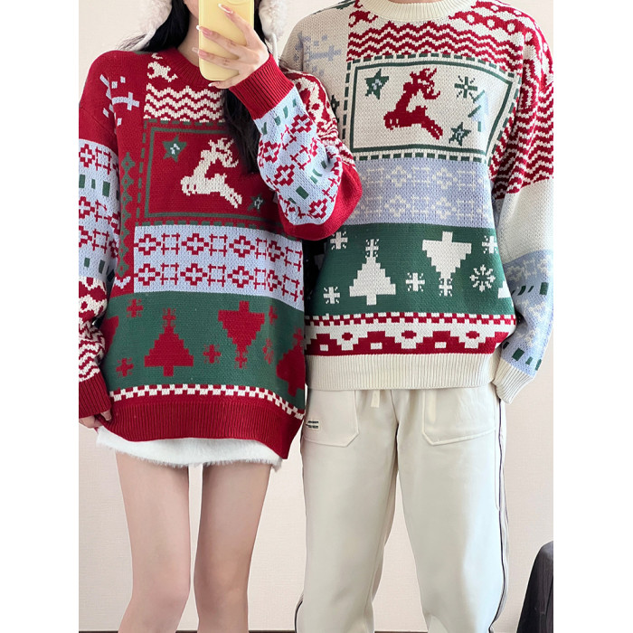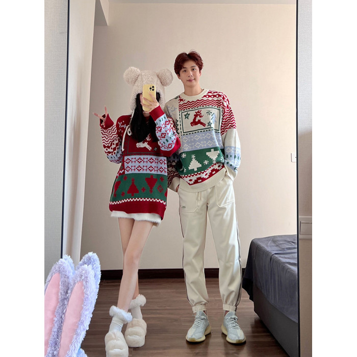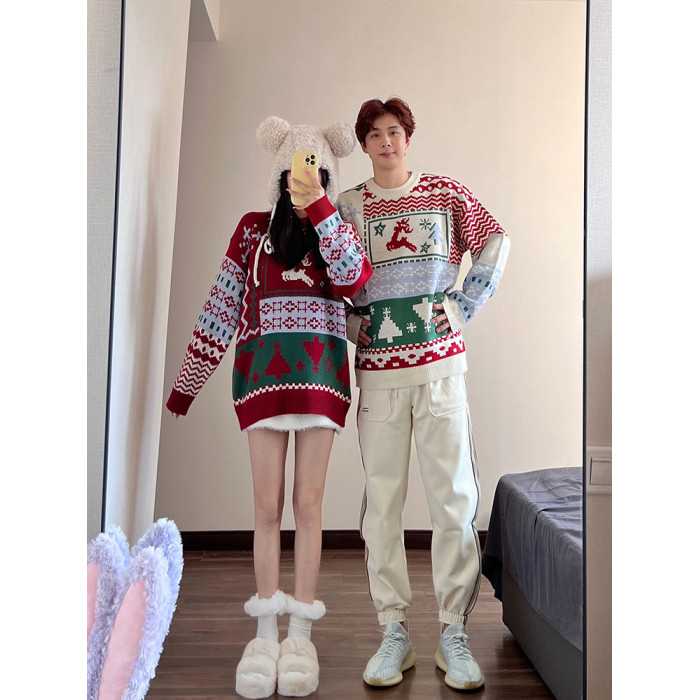 聖誕節戰袍情侶裝秋冬2025新款聖誕氛圍感穿搭毛衣紅色外穿針織衫