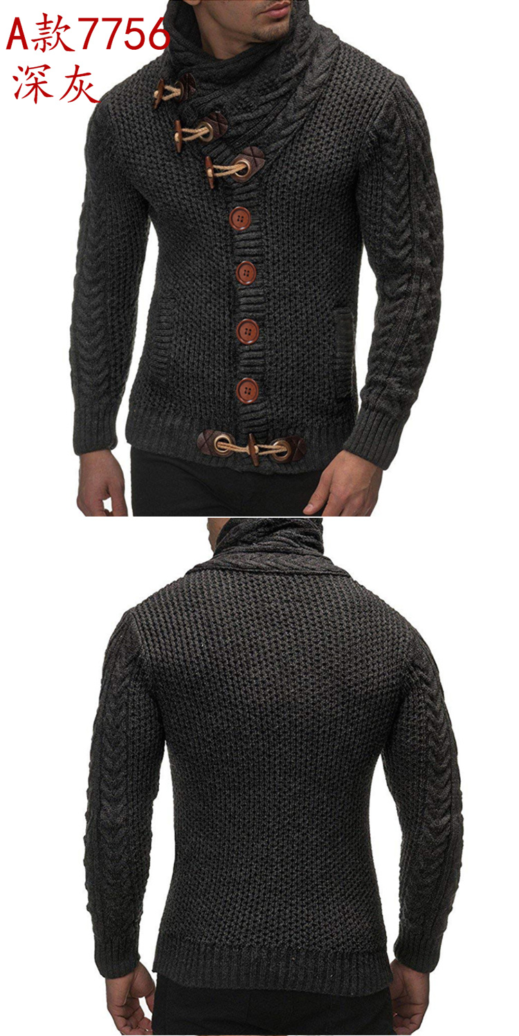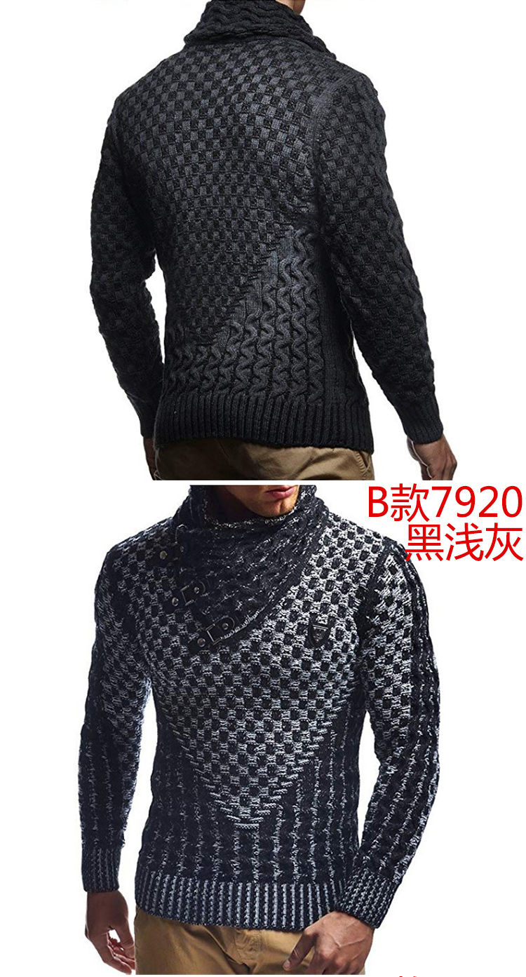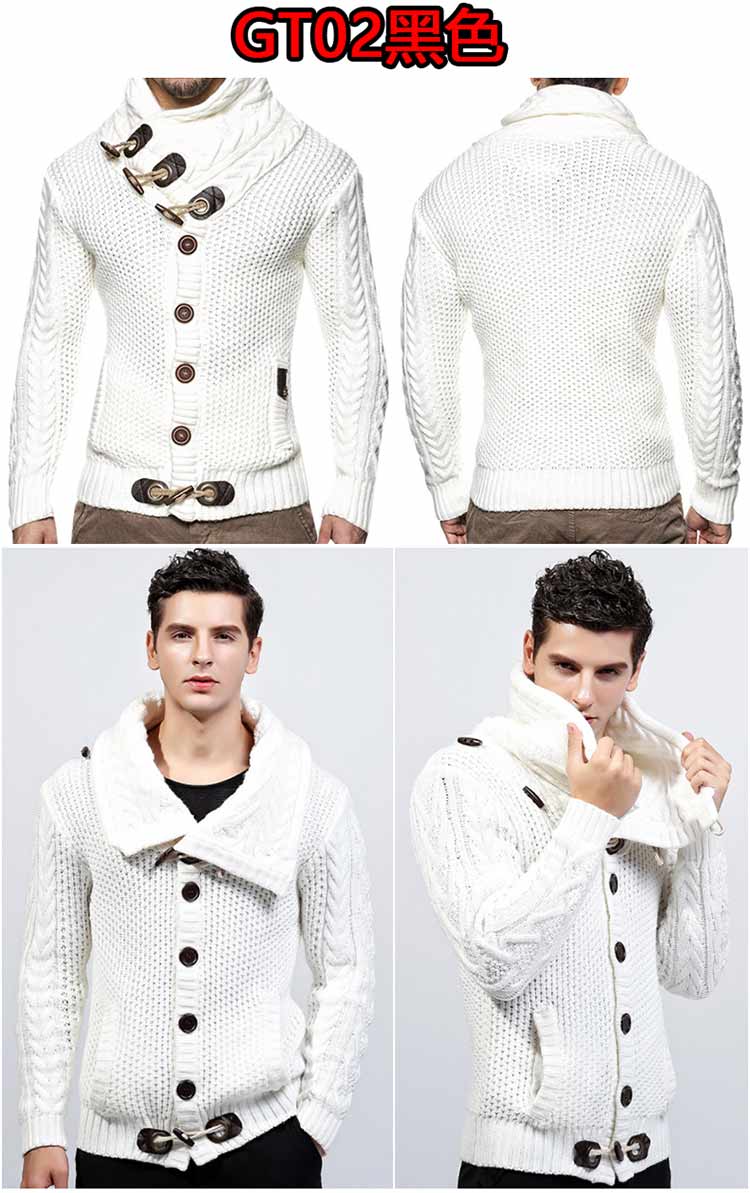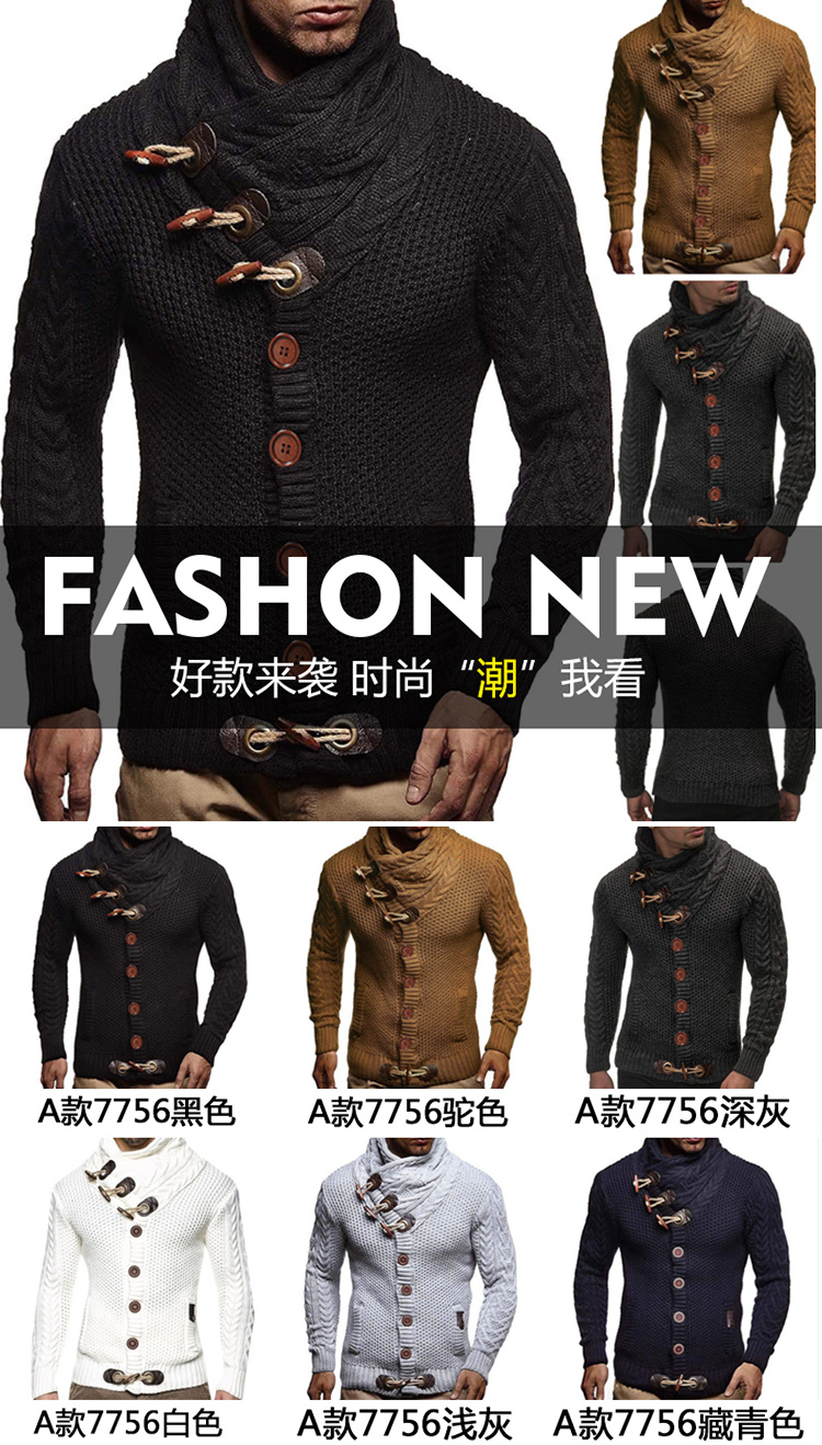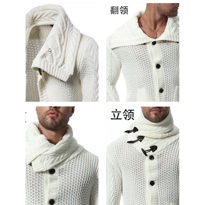 秋冬季個性潮流內搭毛線針織衫高領開衫堆堆領毛衣男粗線外套百搭