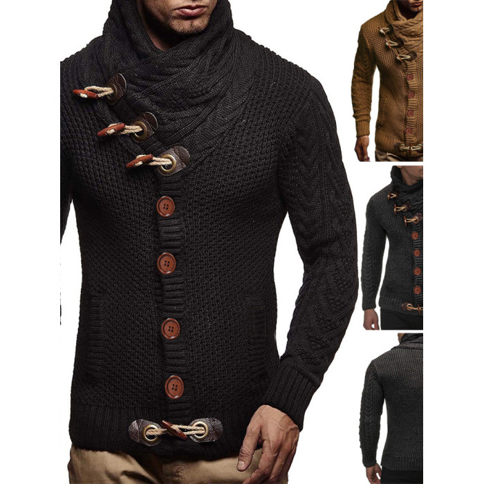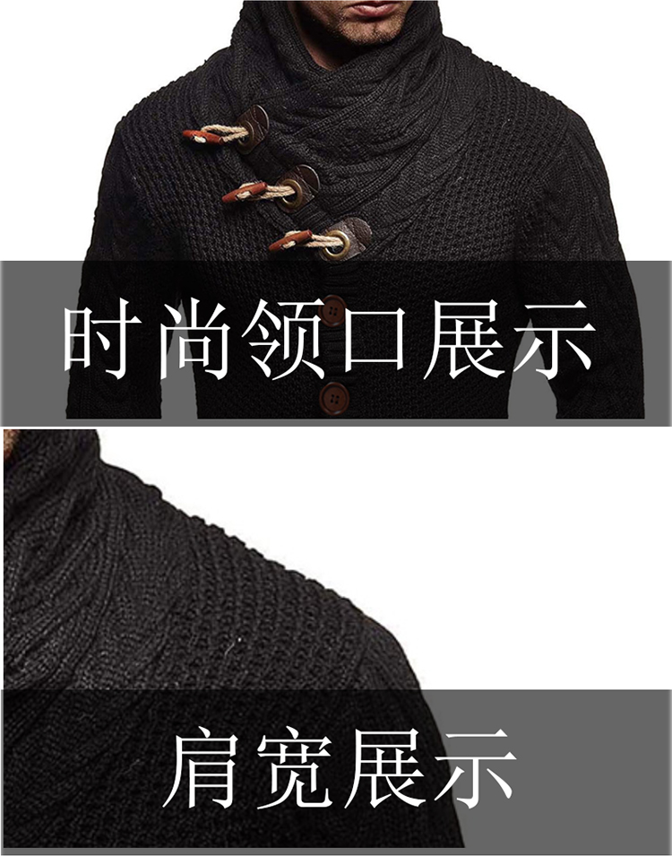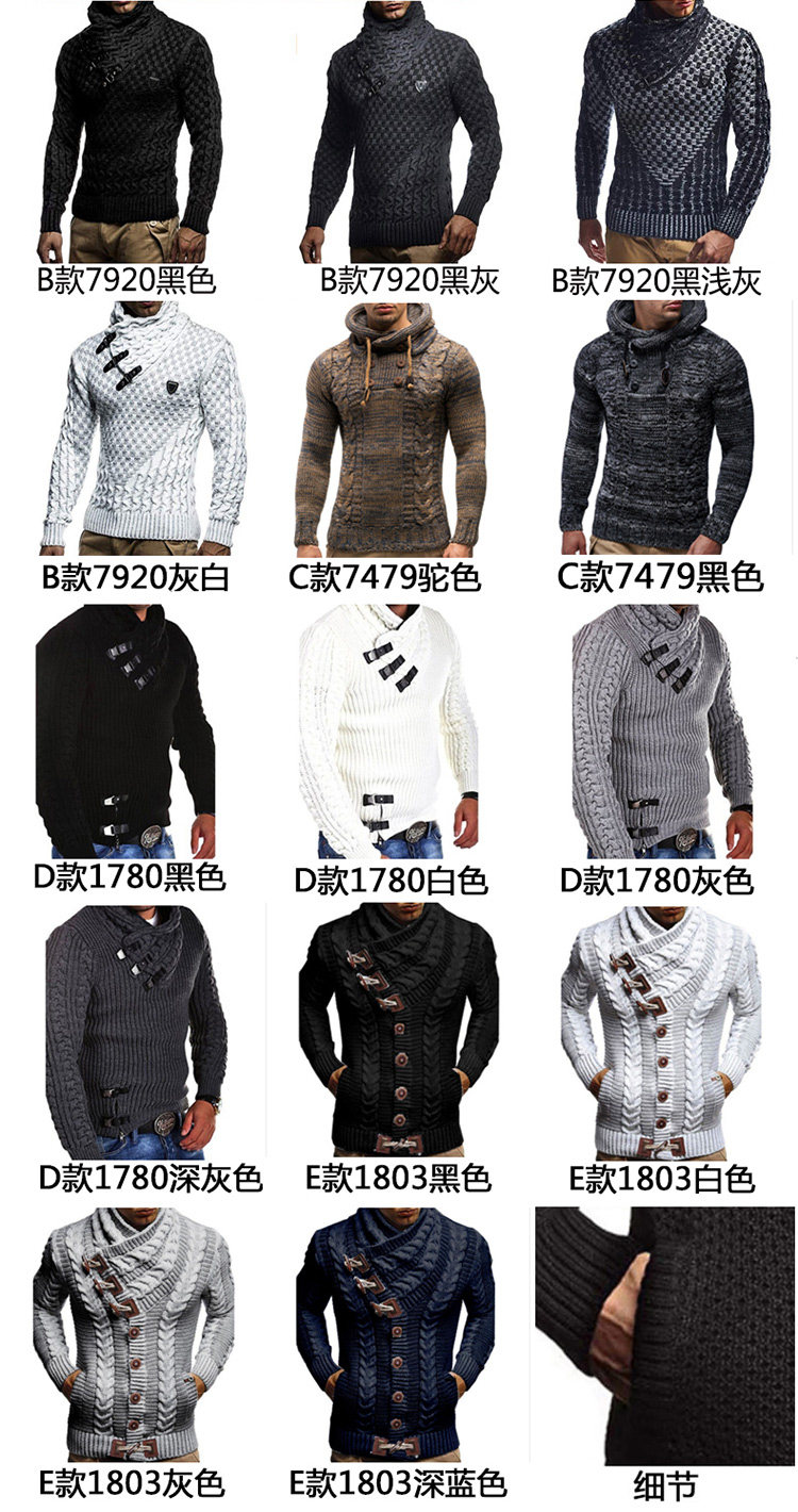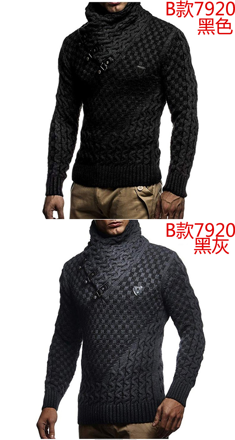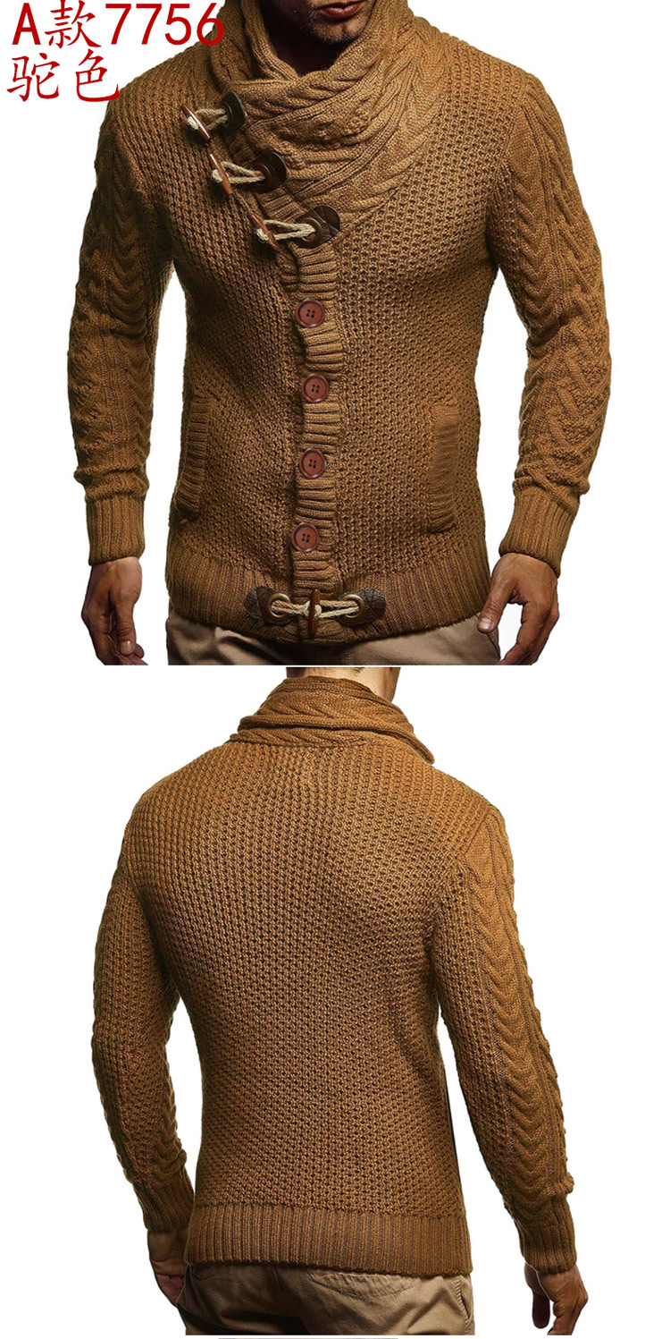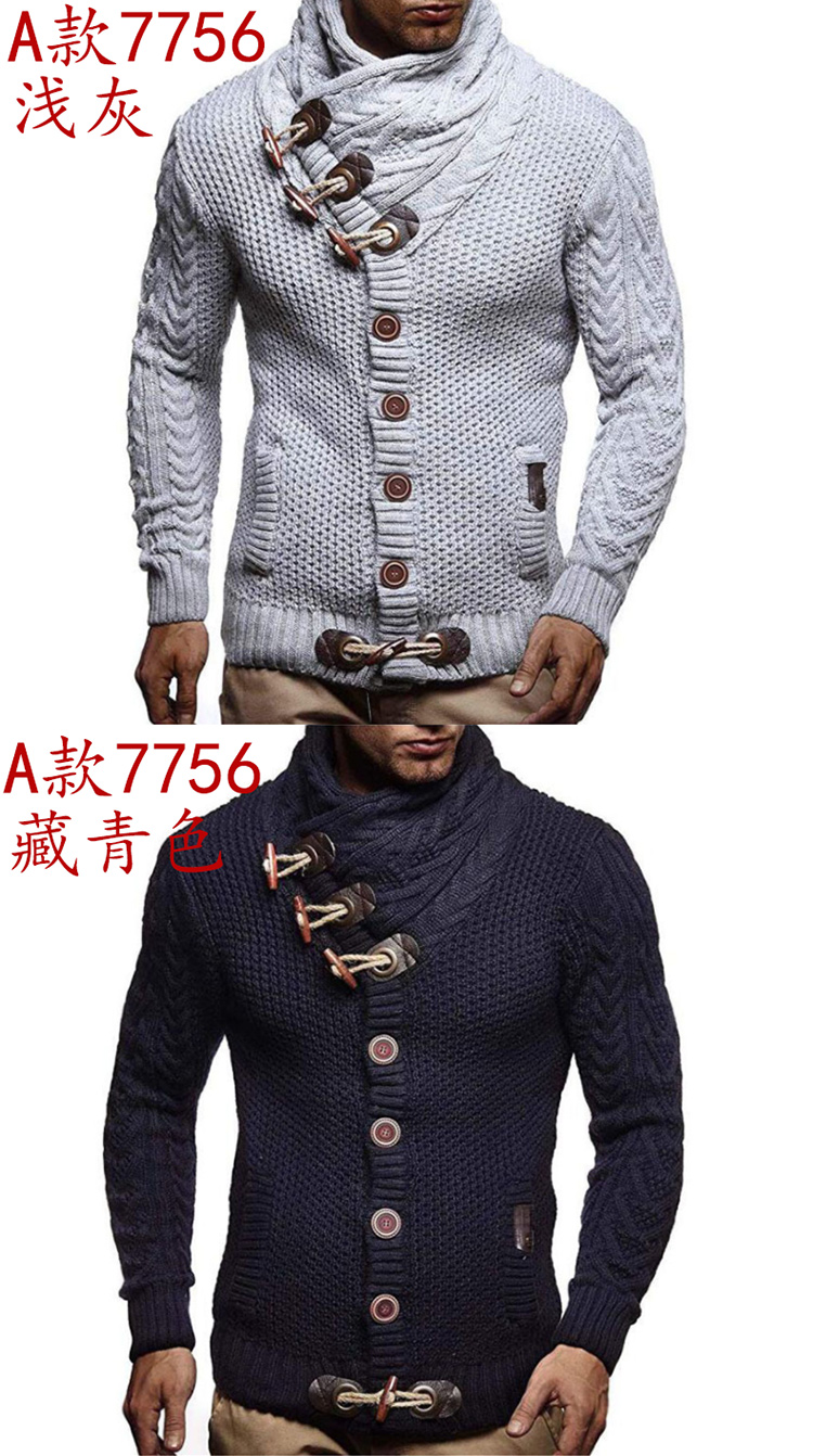 秋冬季個性潮流內搭毛線針織衫高領開衫堆堆領毛衣男粗線外套百搭