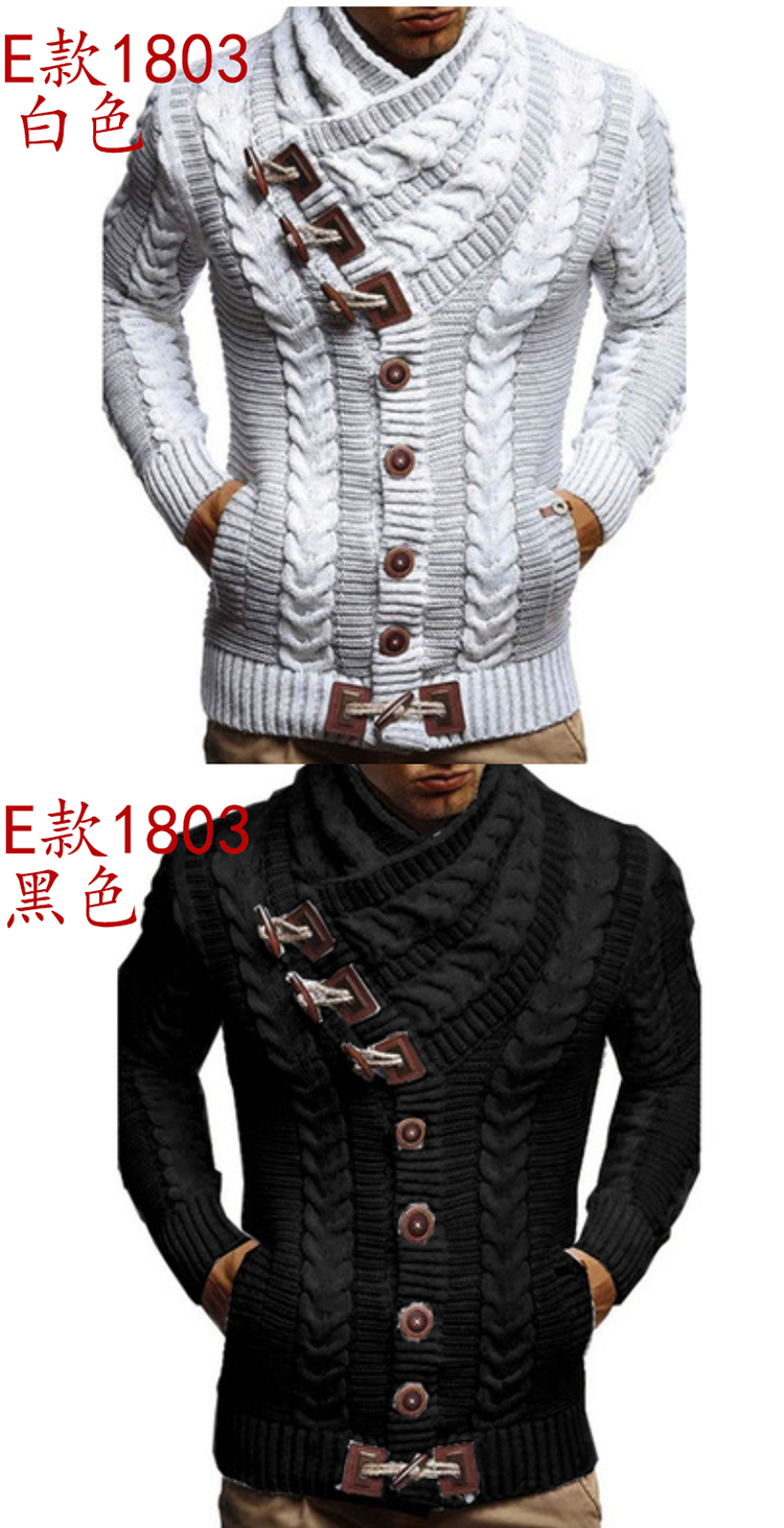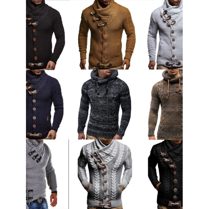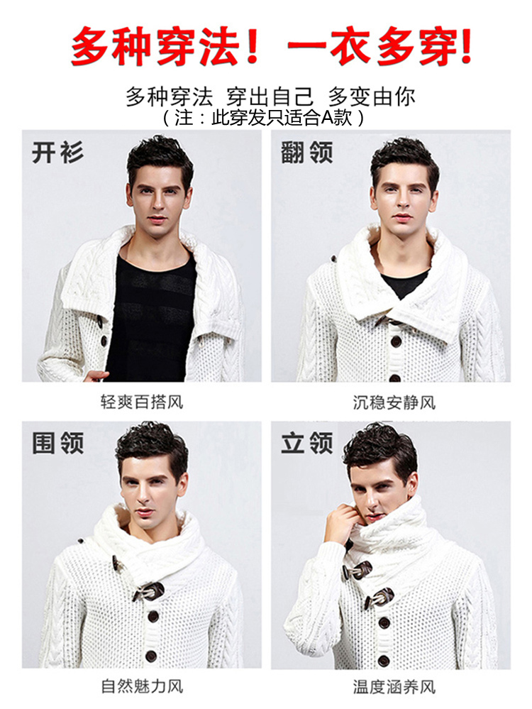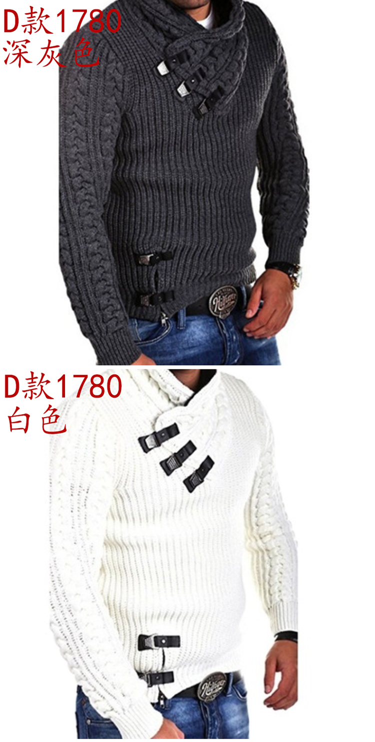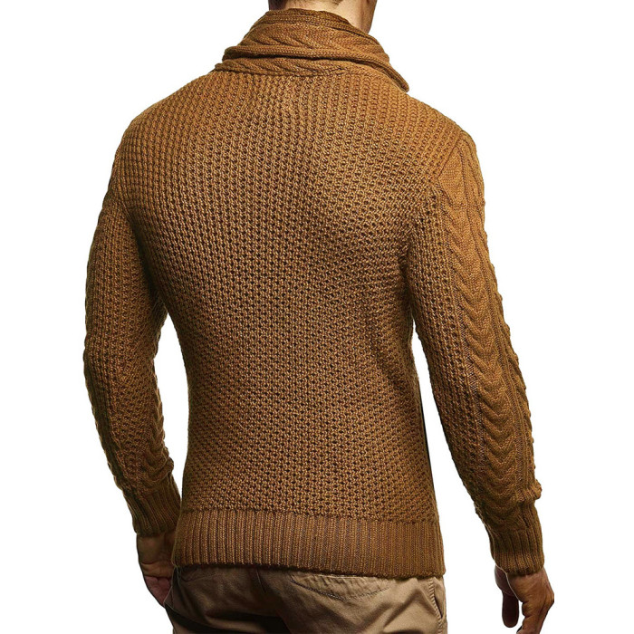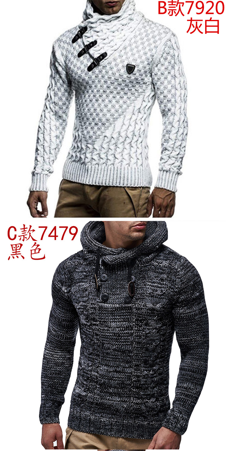 秋冬季個性潮流內搭毛線針織衫高領開衫堆堆領毛衣男粗線外套百搭