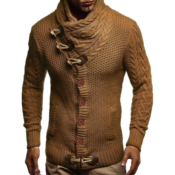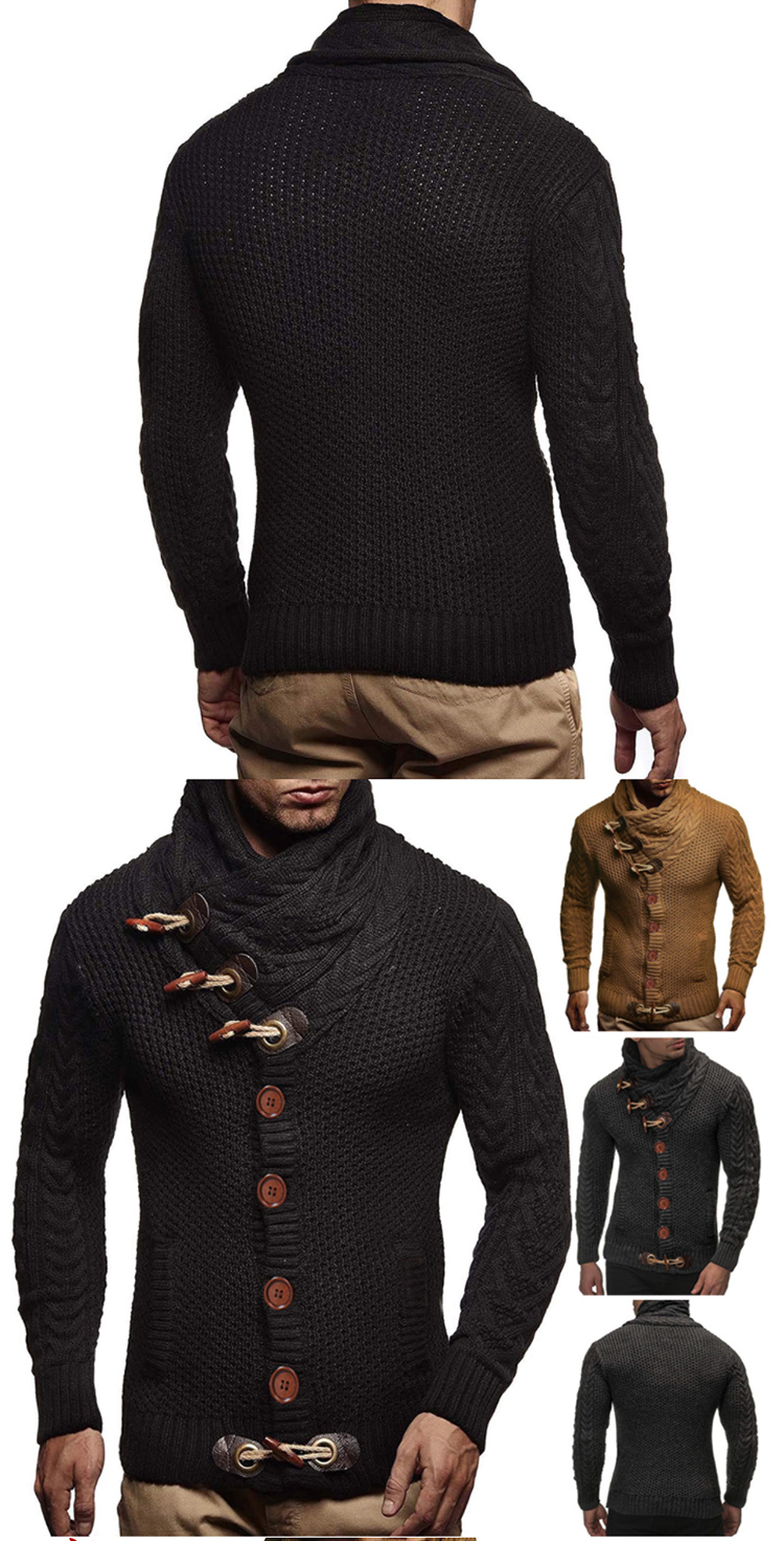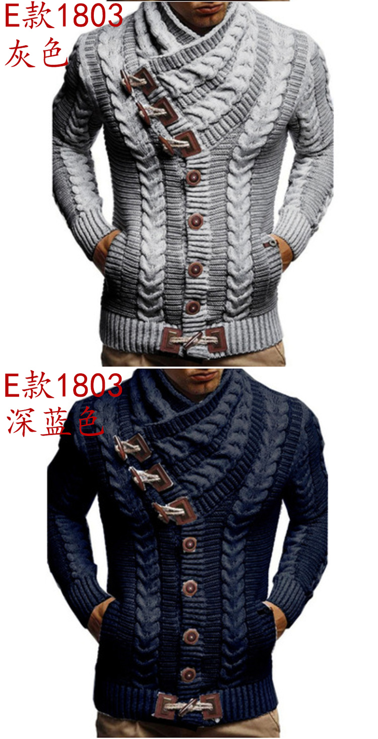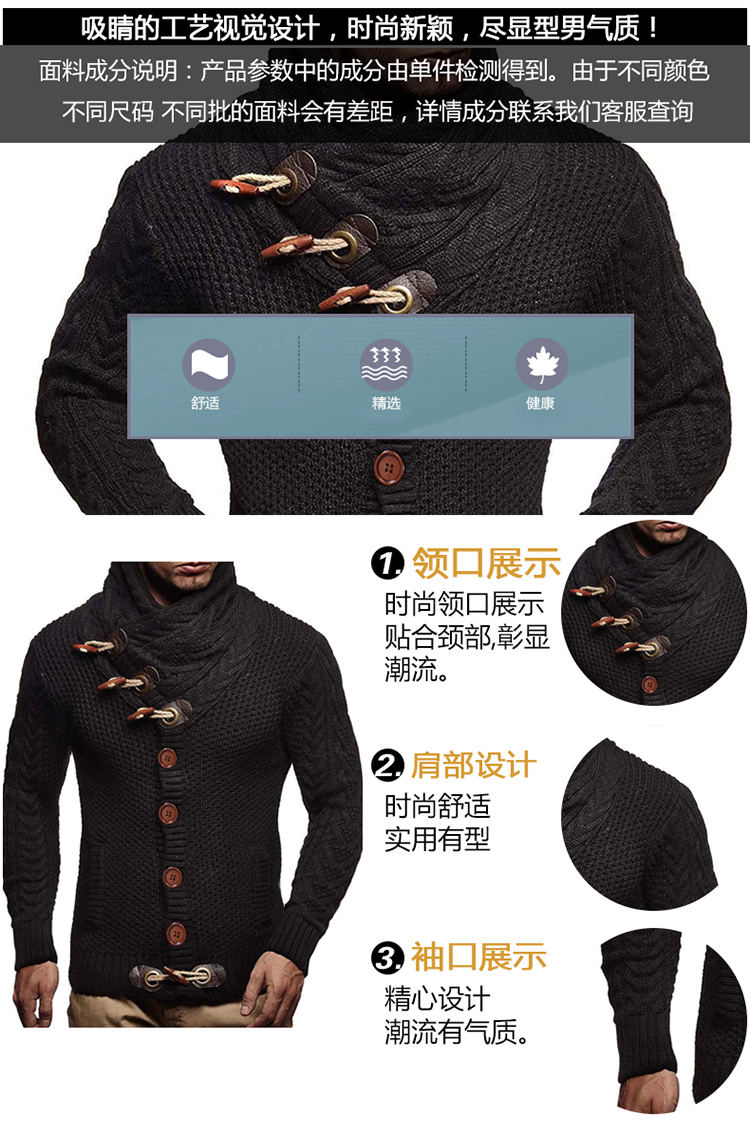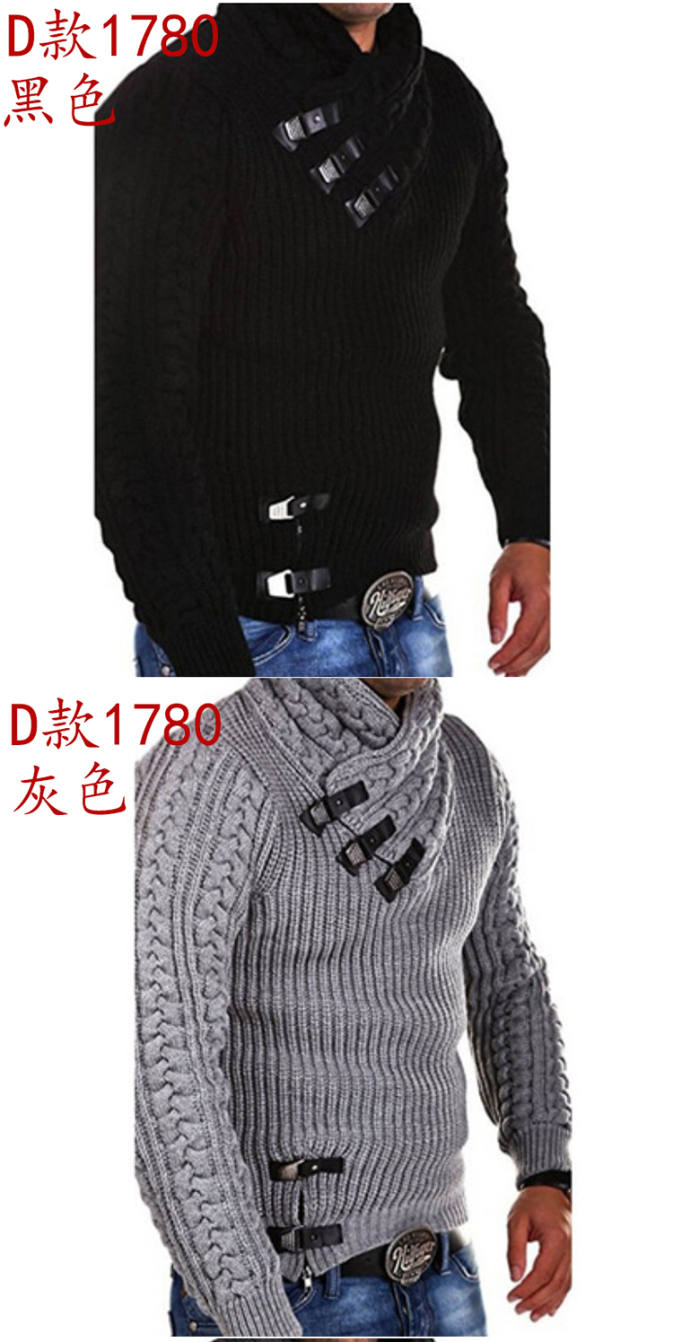 秋冬季個性潮流內搭毛線針織衫高領開衫堆堆領毛衣男粗線外套百搭