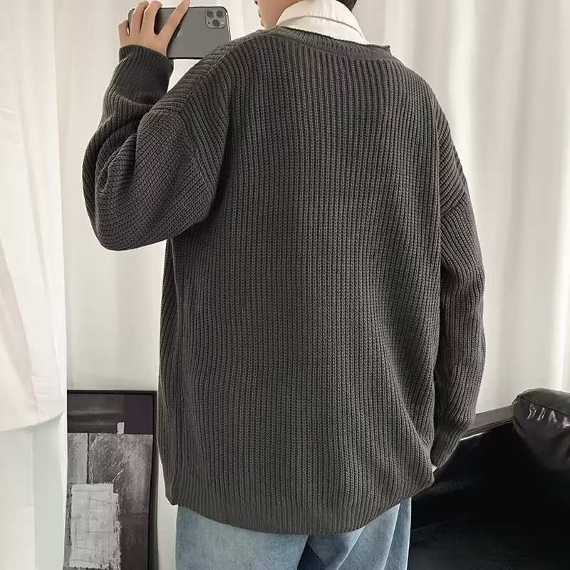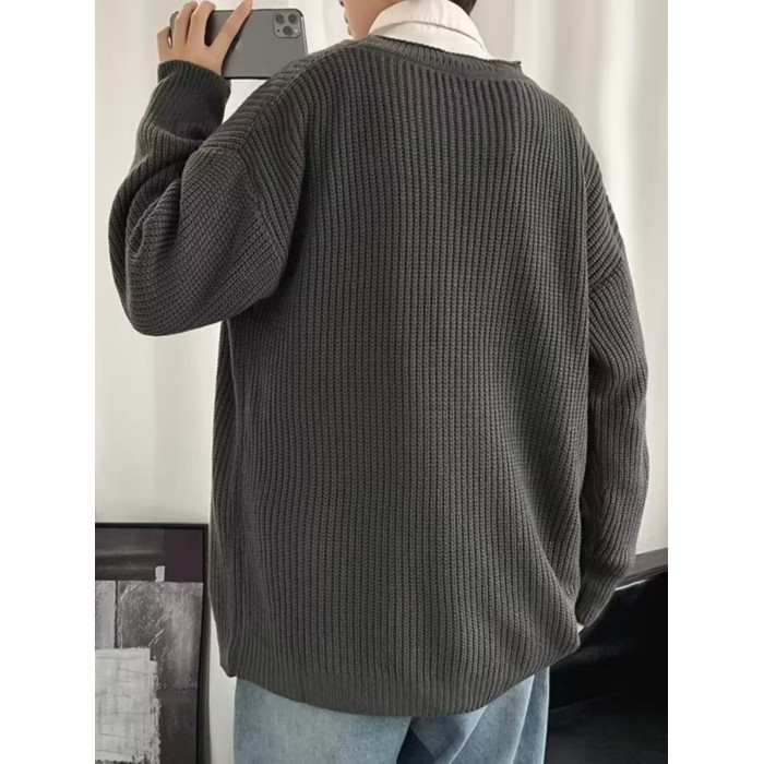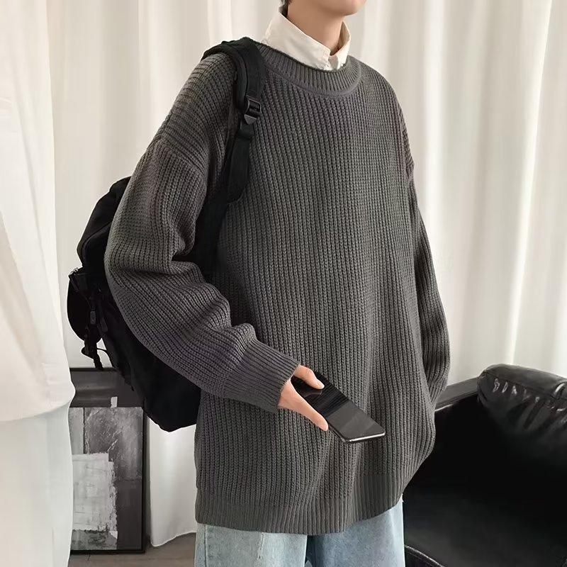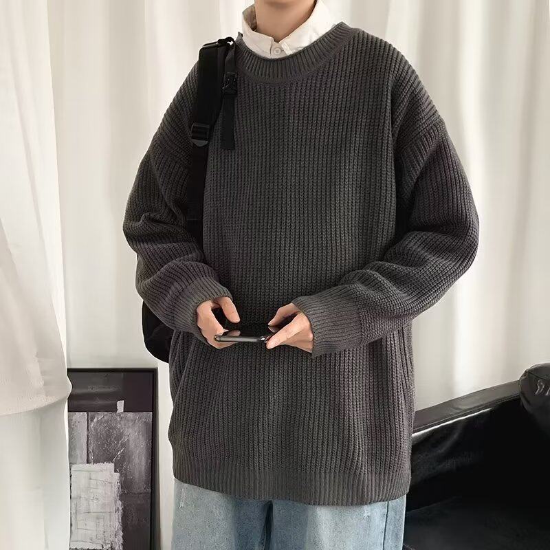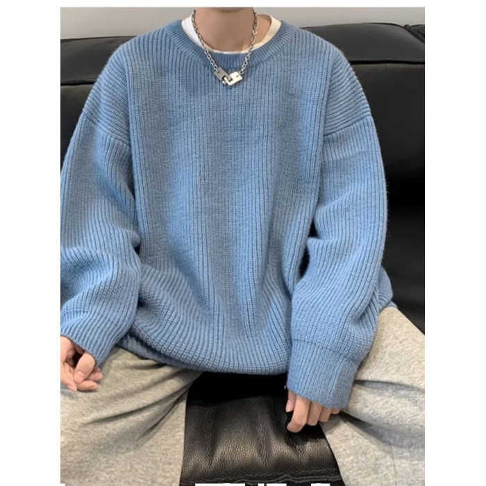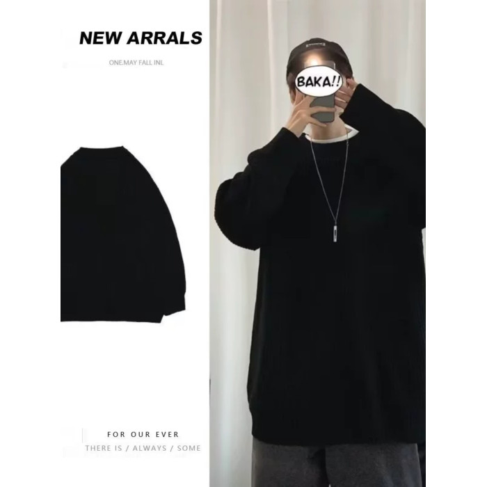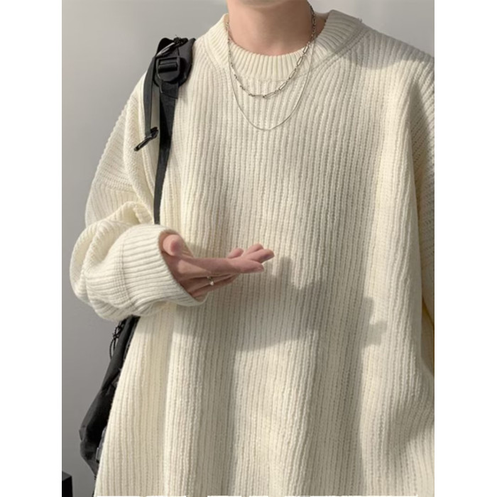 韓系慵懶風毛衣男套頭秋冬純色oversize針織衫小衆高級感情侶衛衣