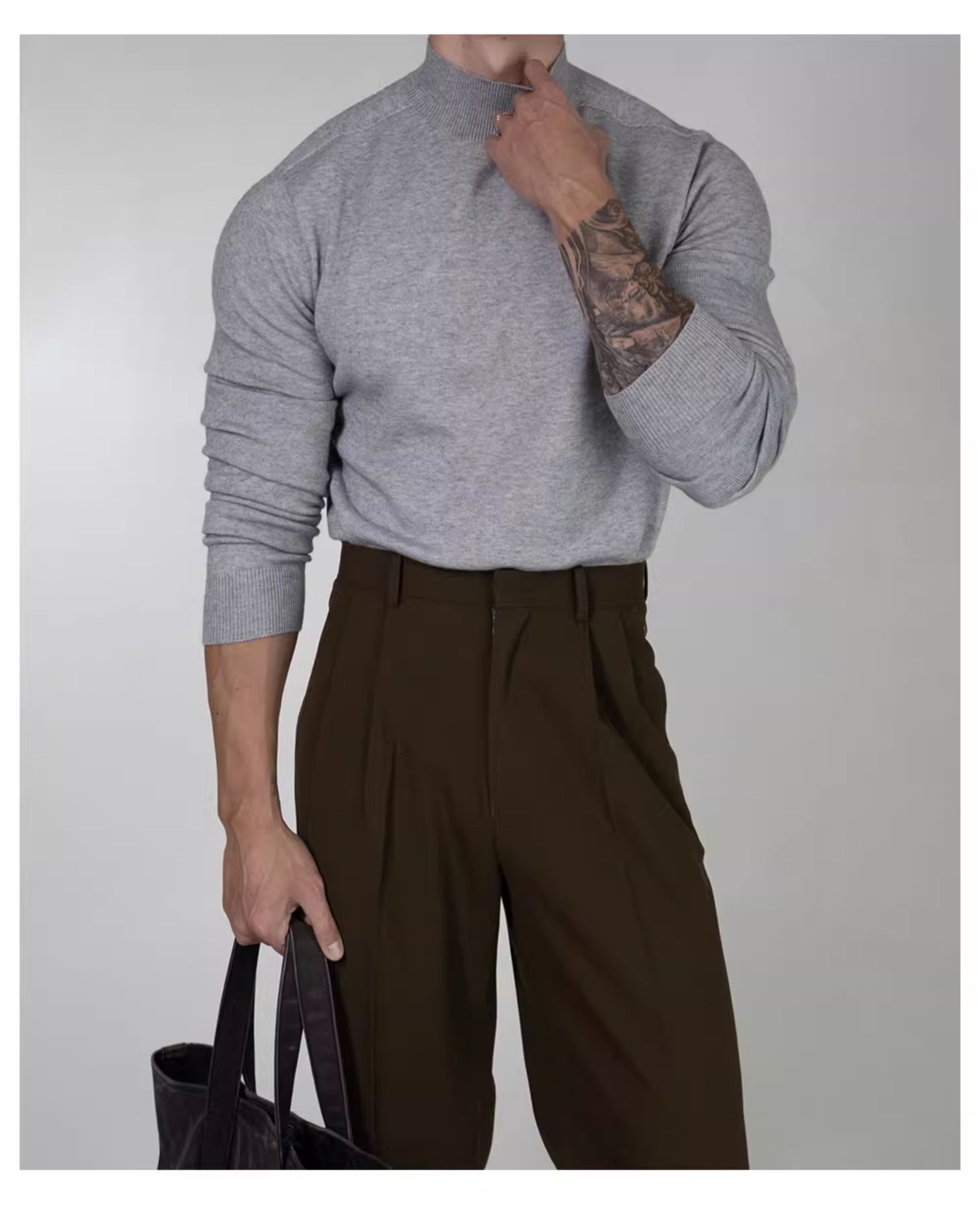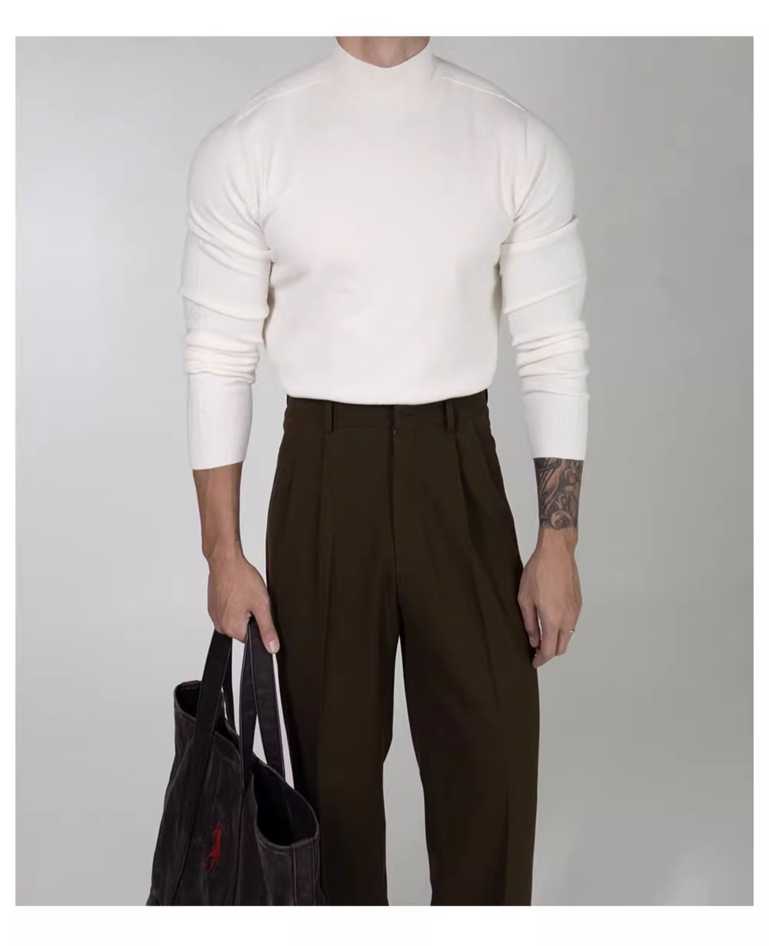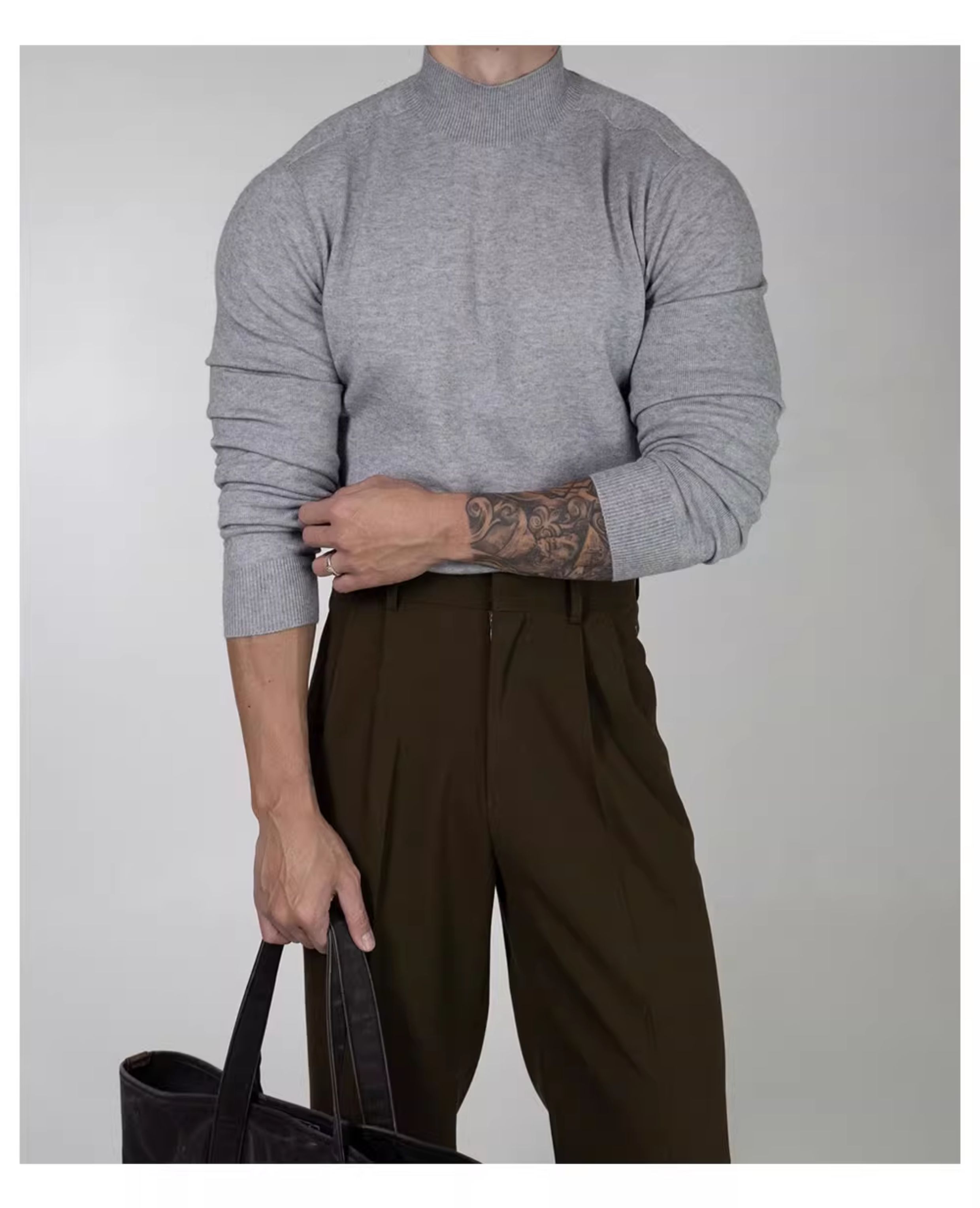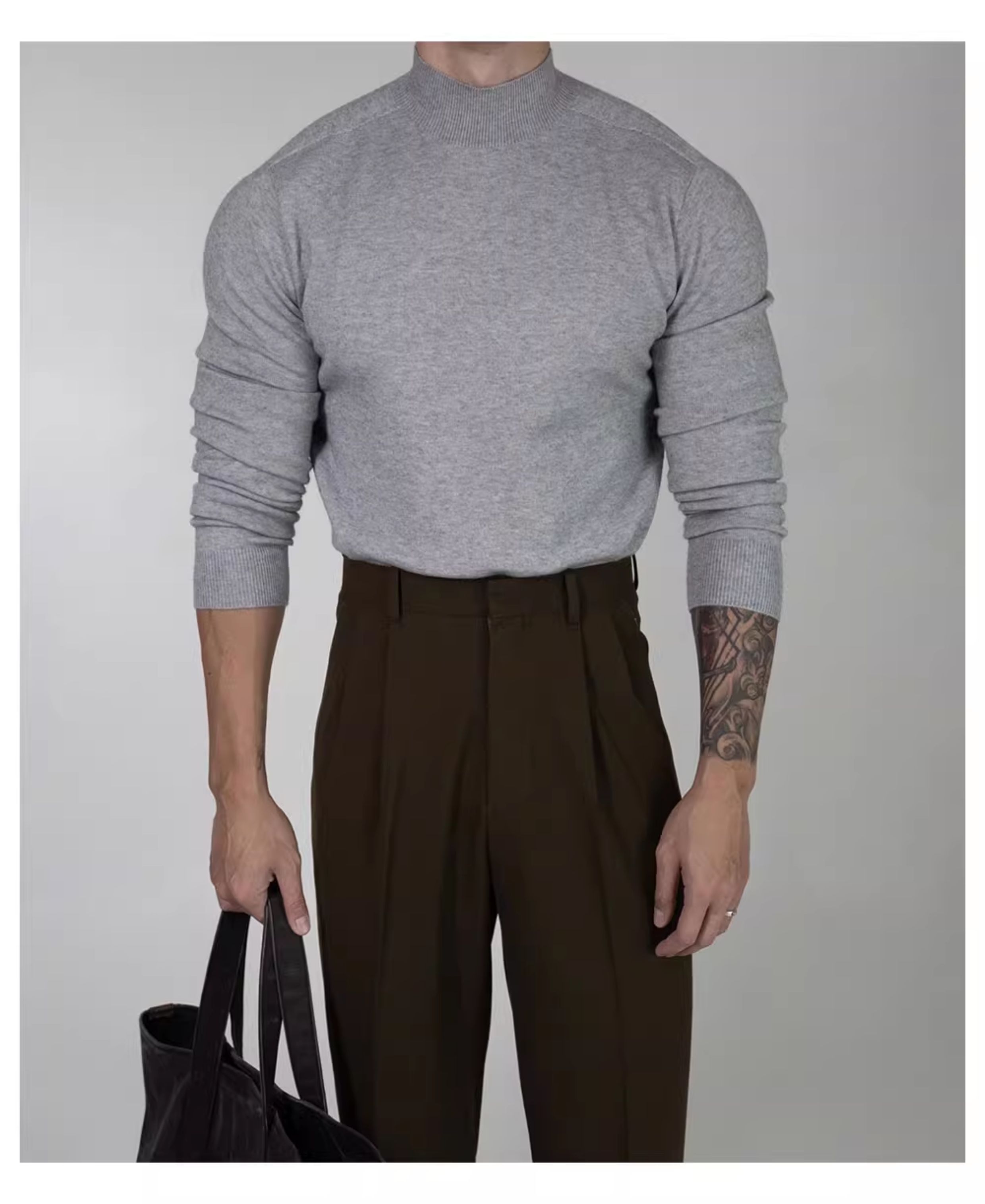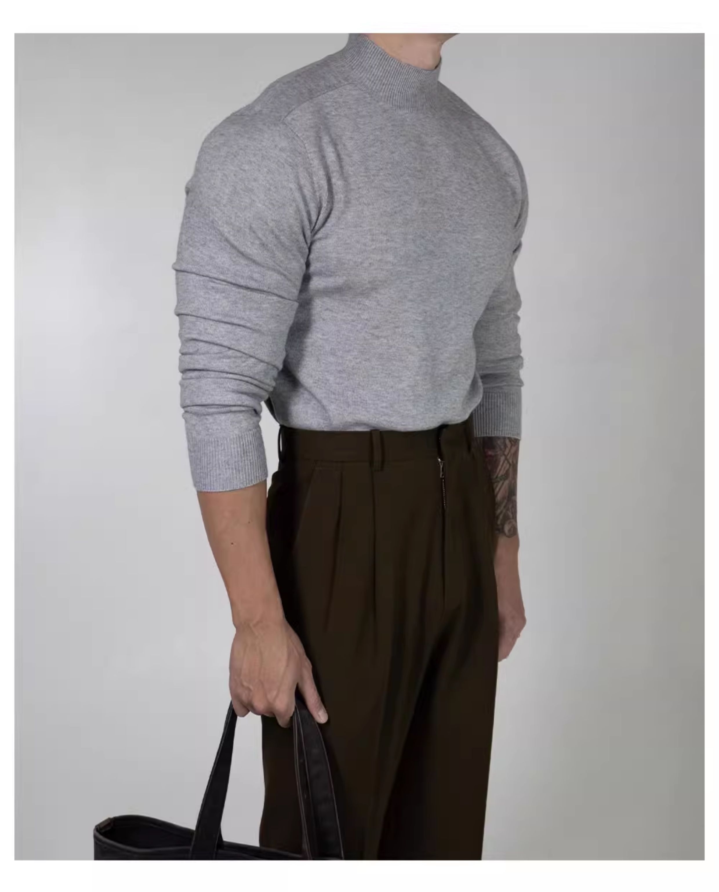 港味復古chic半高領針織衫男2025秋冬韓版潮流百搭修身毛衣打底衫