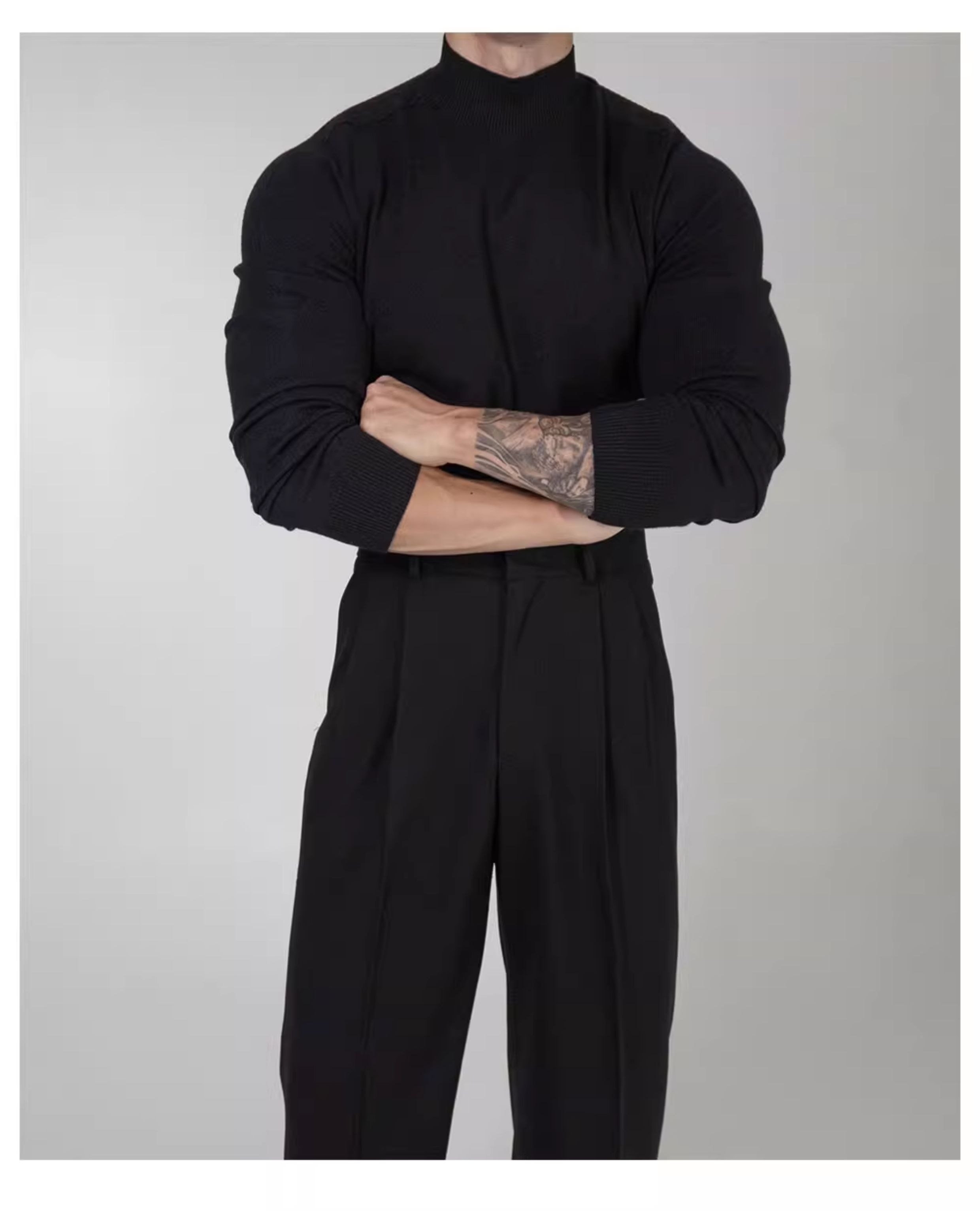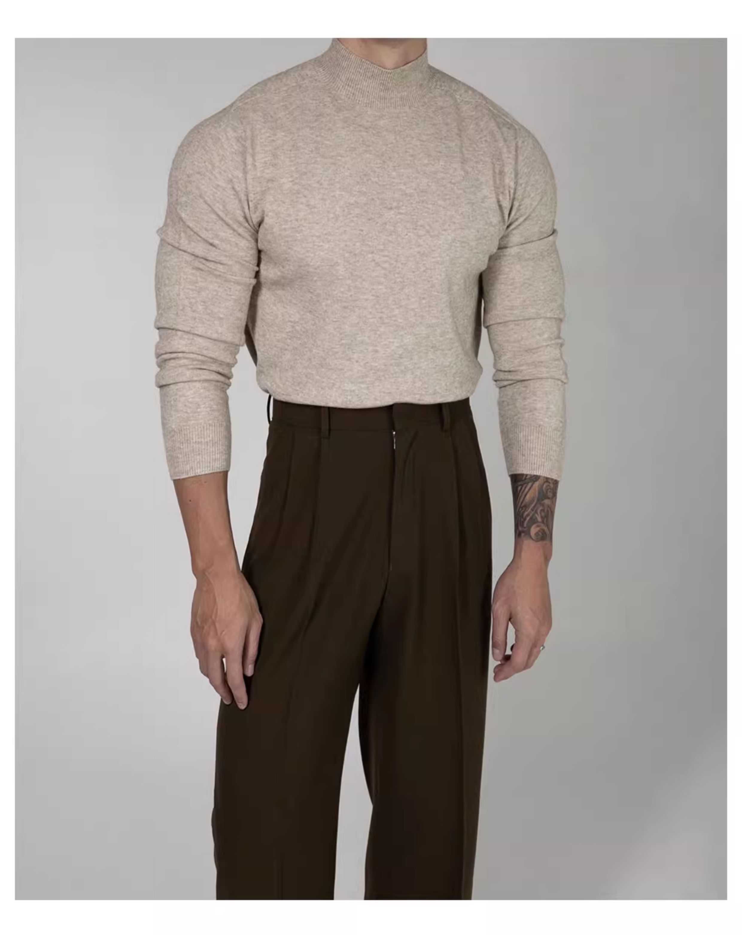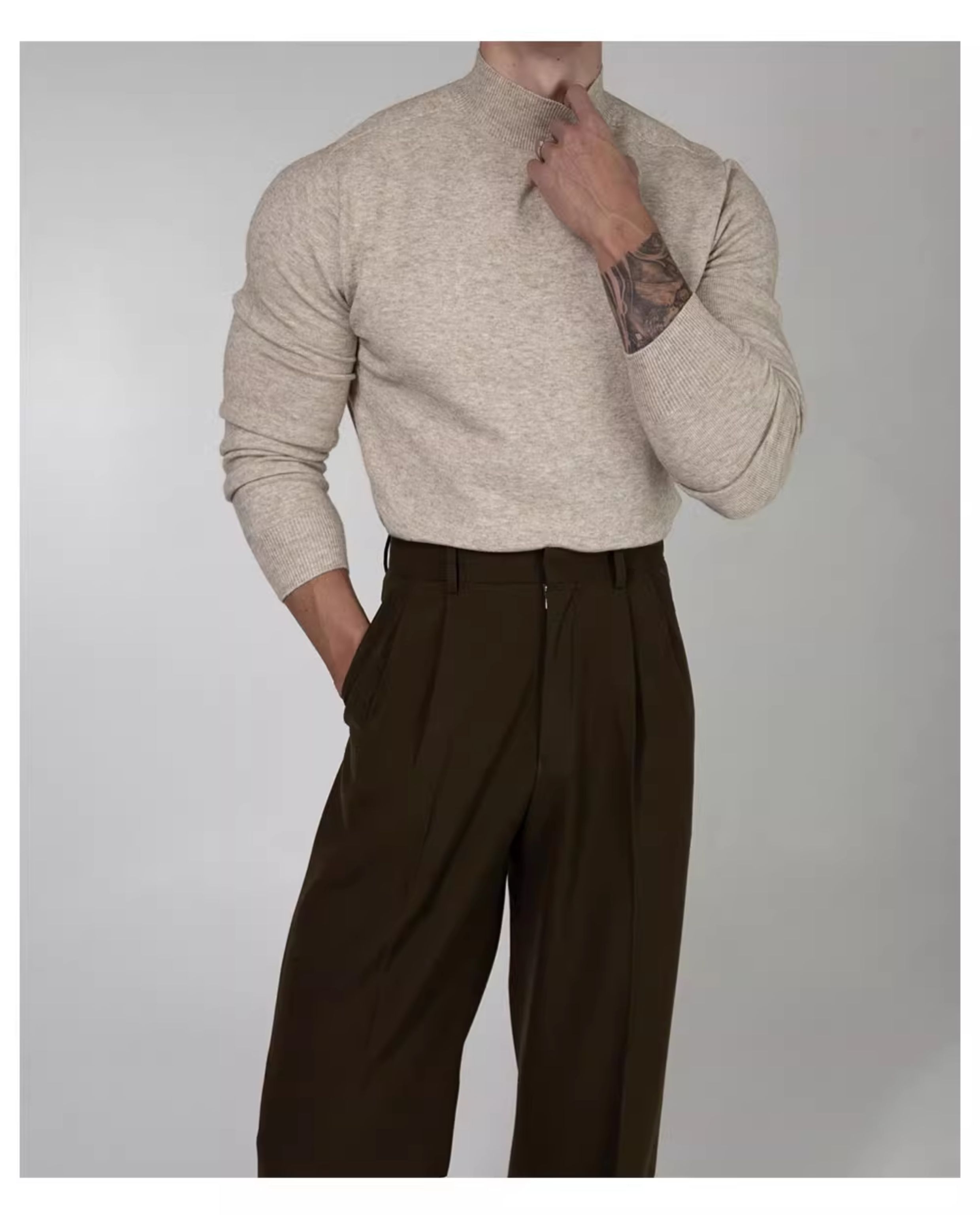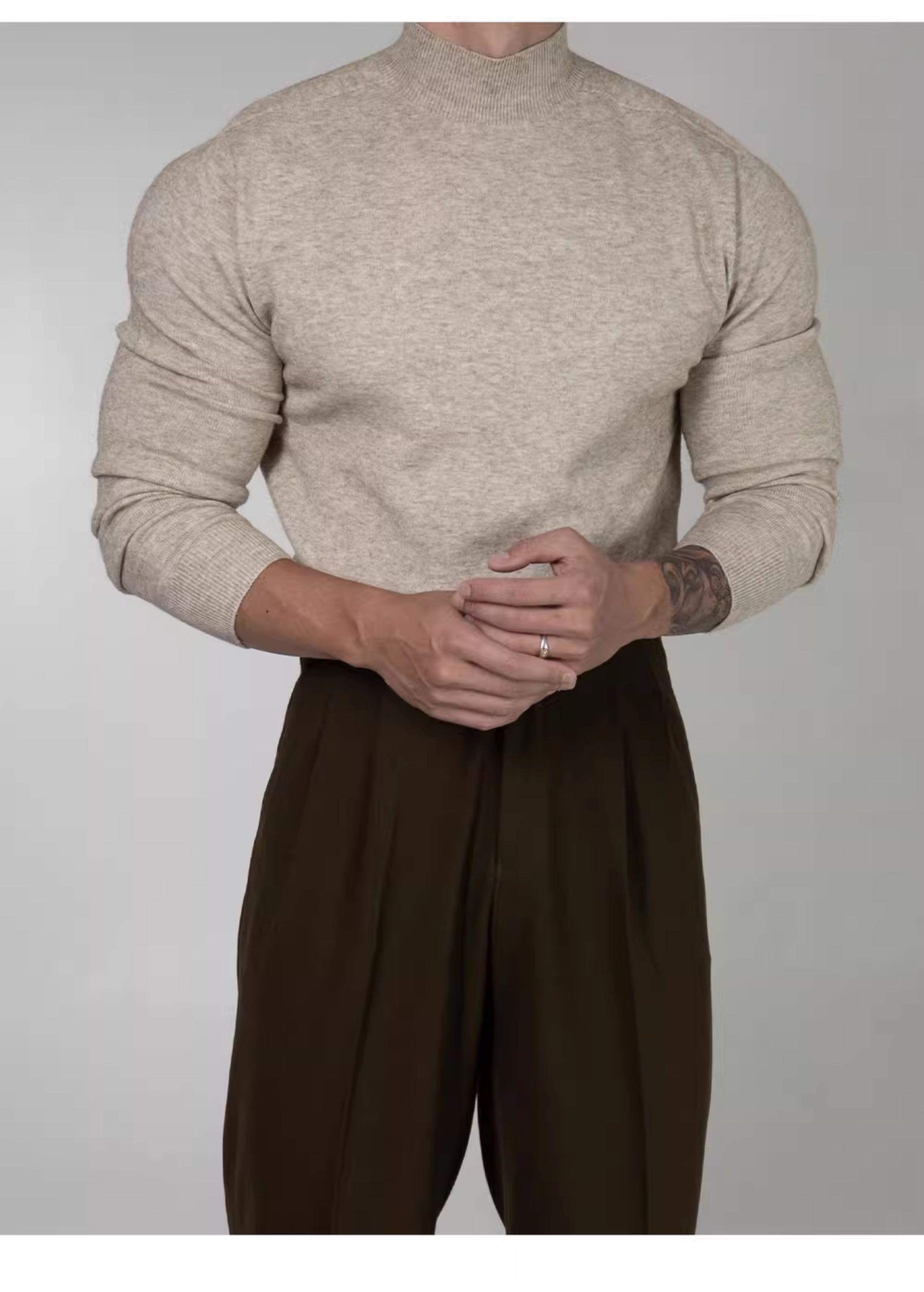 港味復古chic半高領針織衫男2025秋冬韓版潮流百搭修身毛衣打底衫