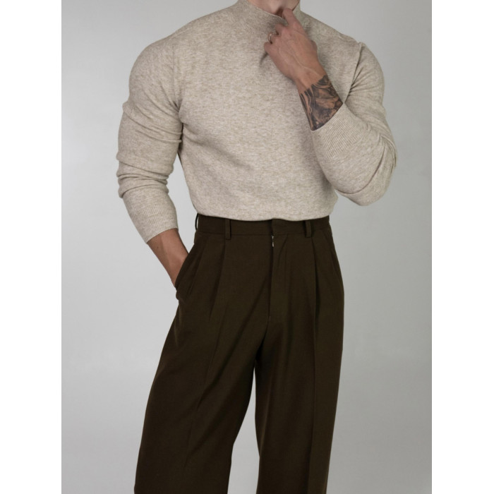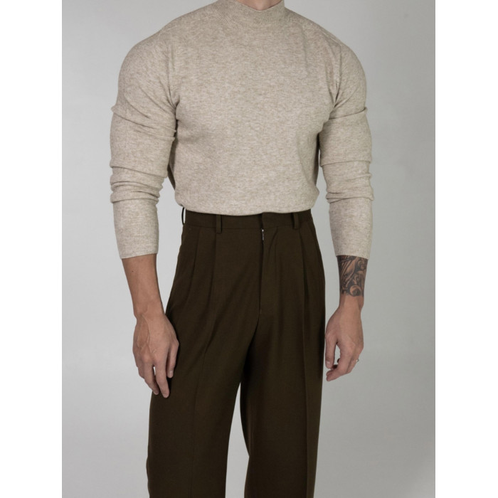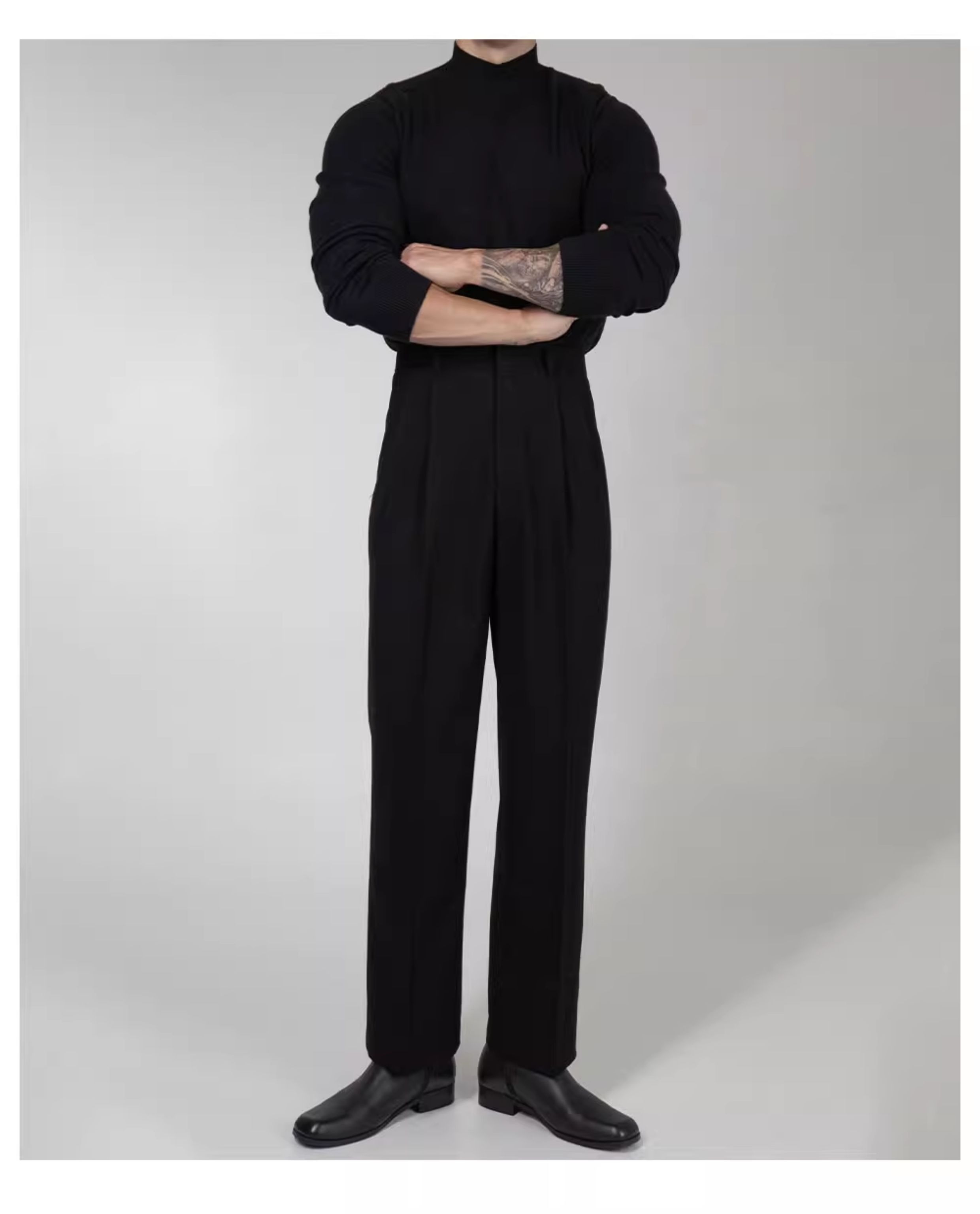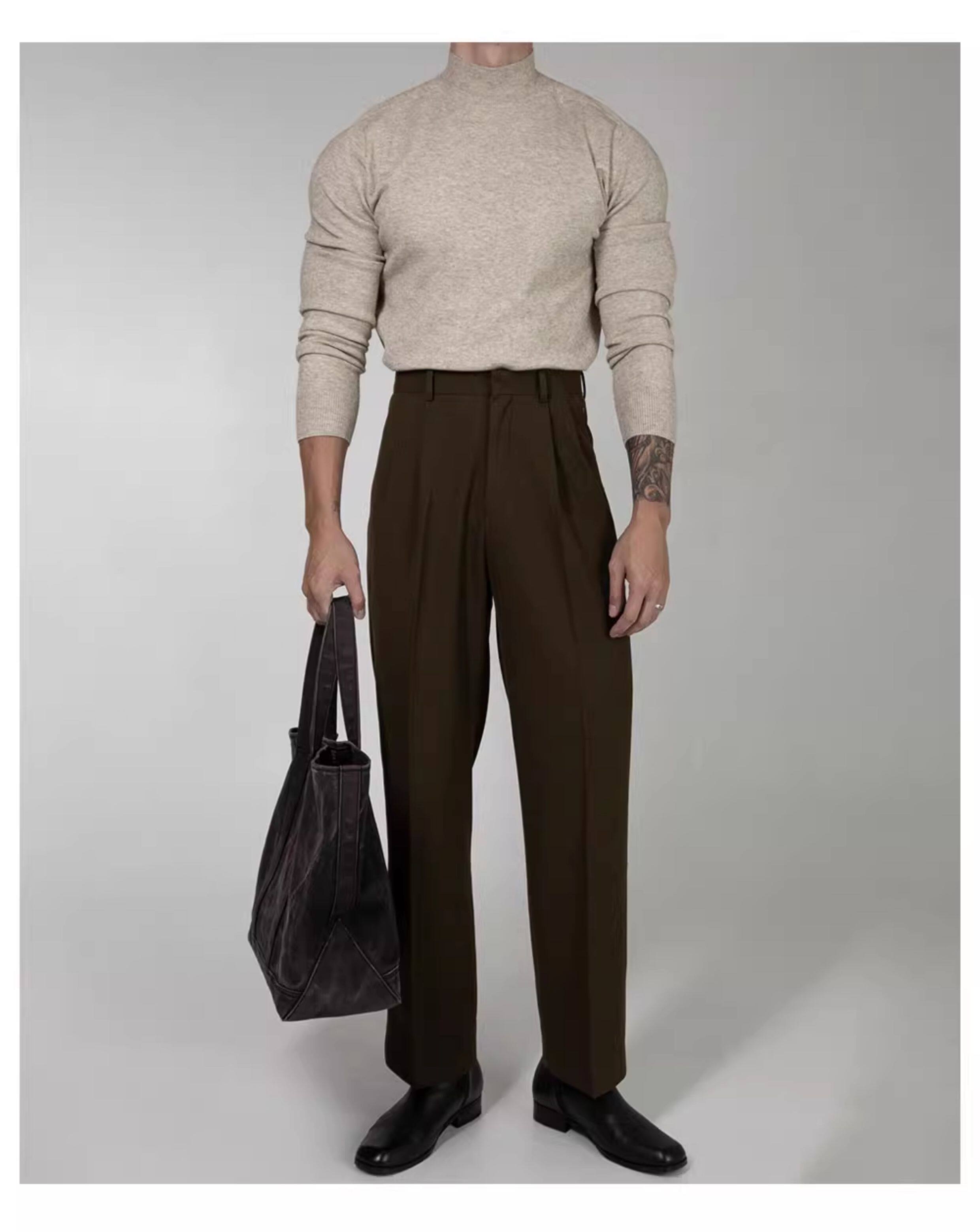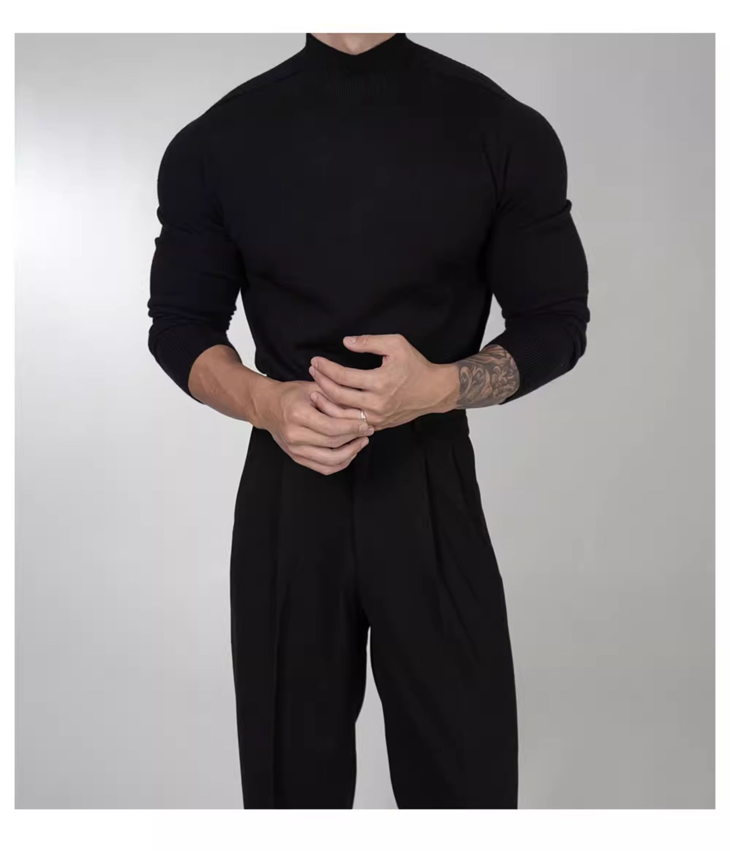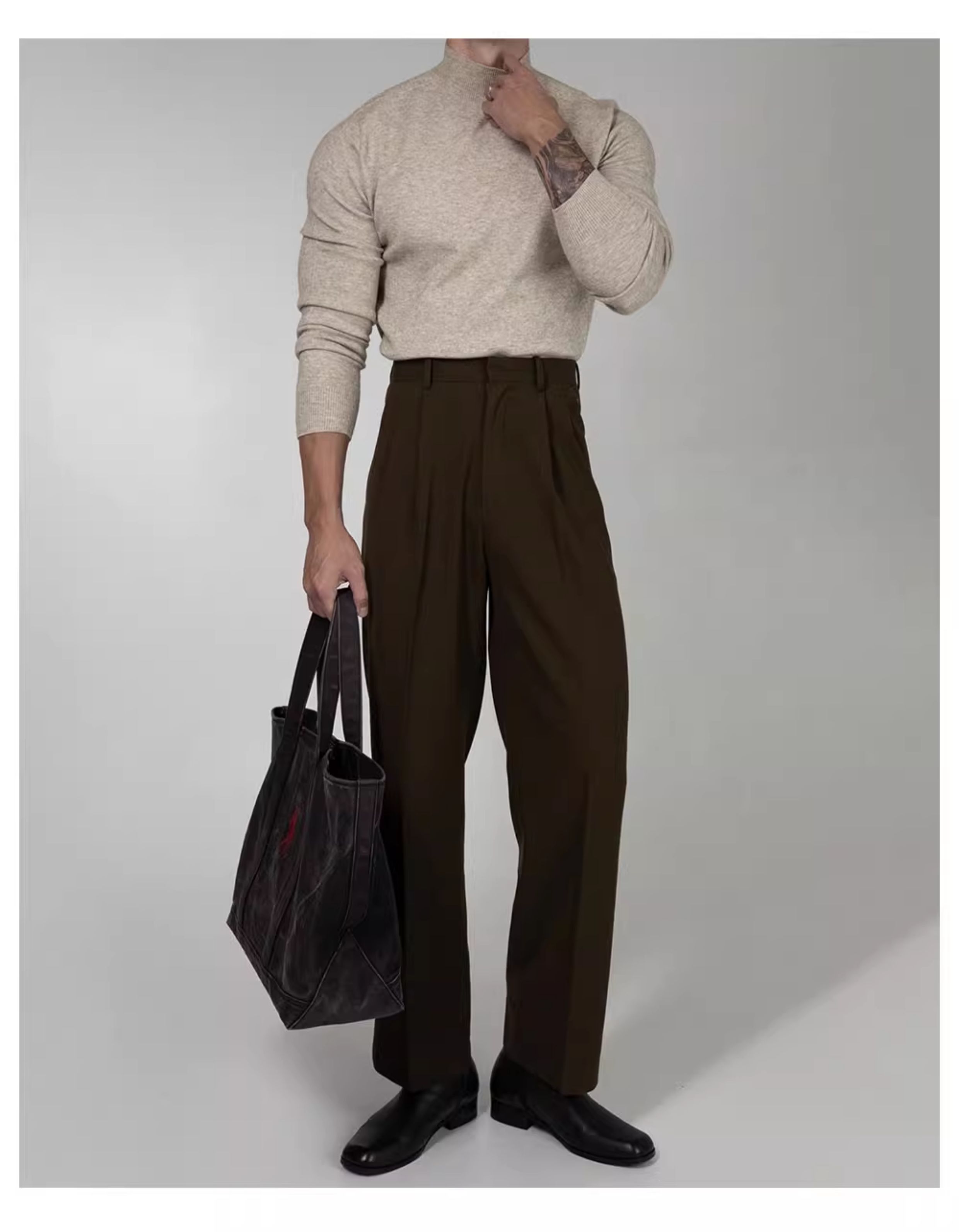港味復古chic半高領針織衫男2025秋冬韓版潮流百搭修身毛衣打底衫