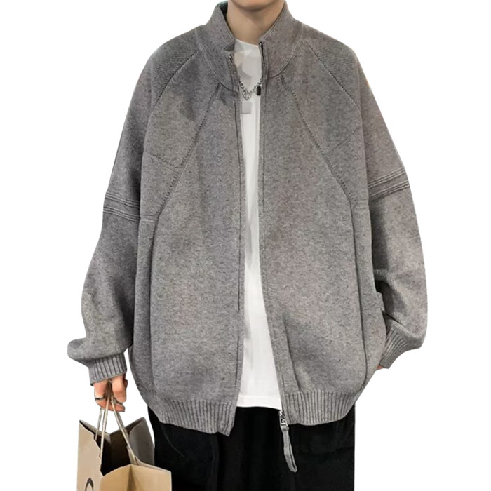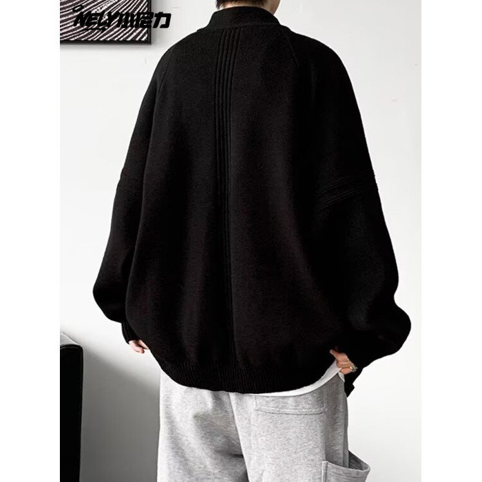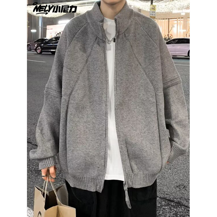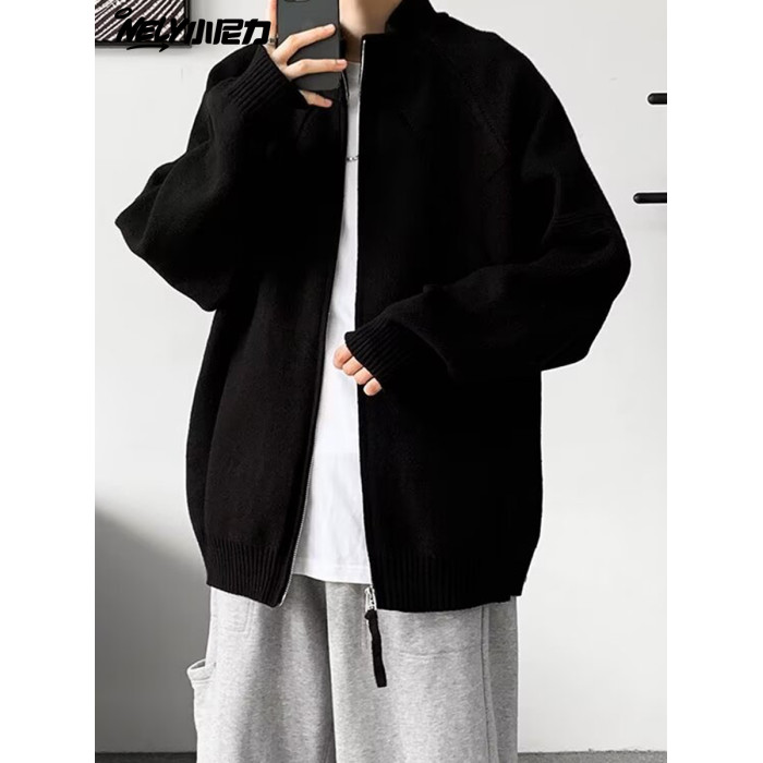 NELY小尼力秋冬慵懶風簡約百搭拉鍊立領毛衣男女休閒情侶針織開衫