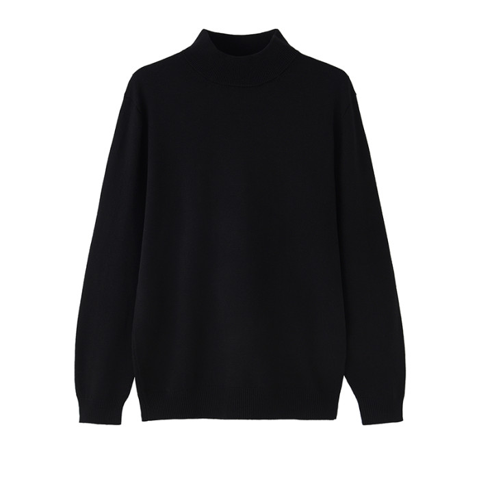 秋冬高級感半高領毛衣男韓版寬松休閒純色中領針織打底衫長袖內搭