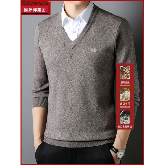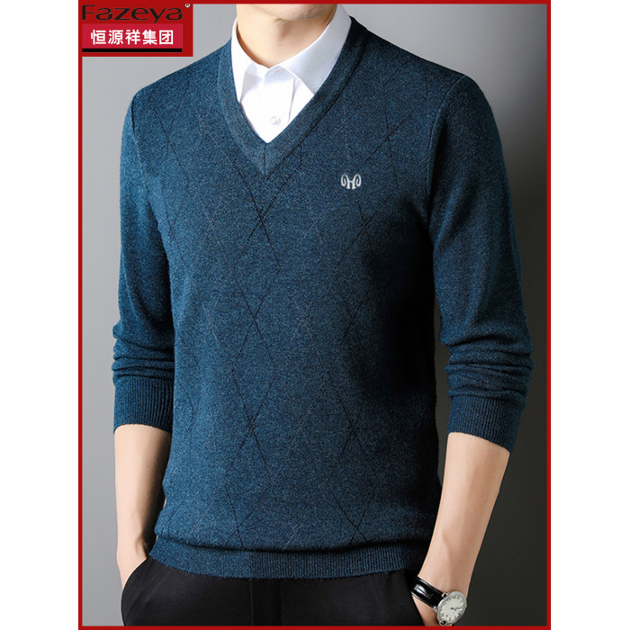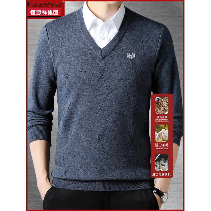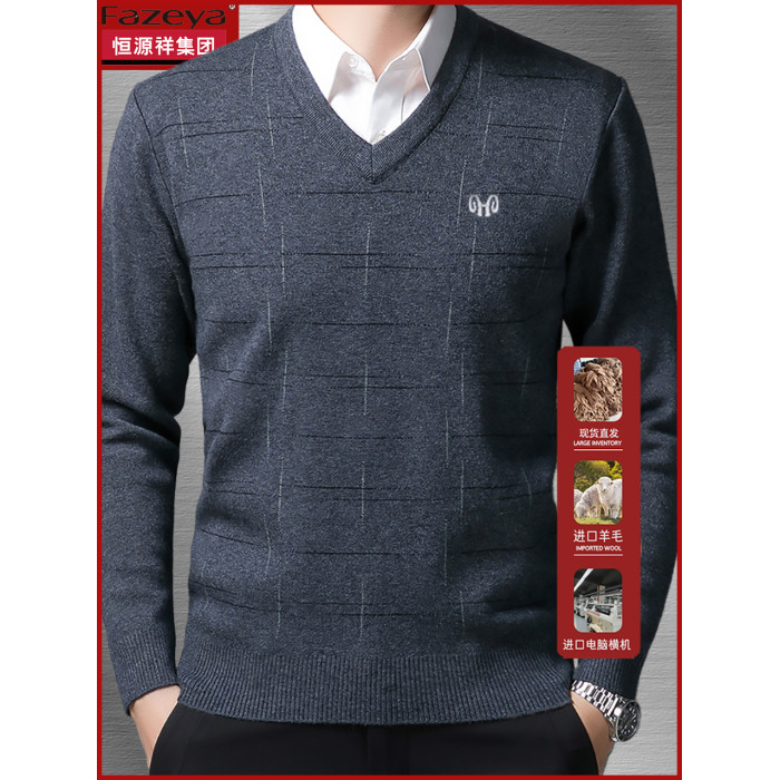 秋冬新款男士V領羊毛衫加厚抗起球雞心領毛線衣爸休閒保暖打底衫