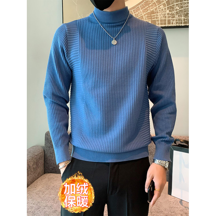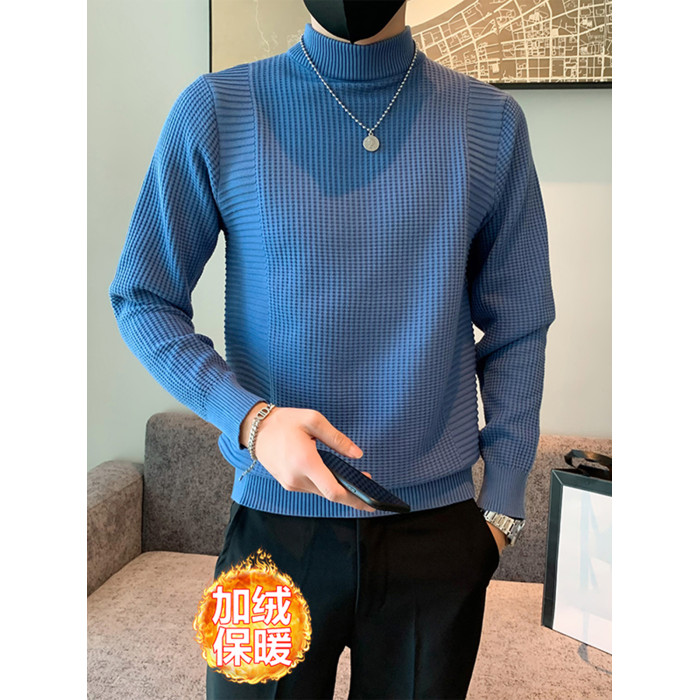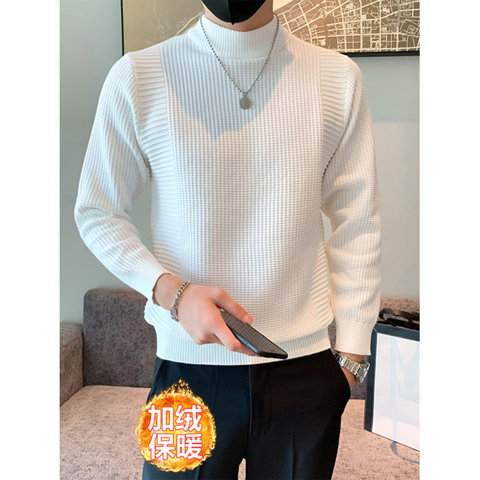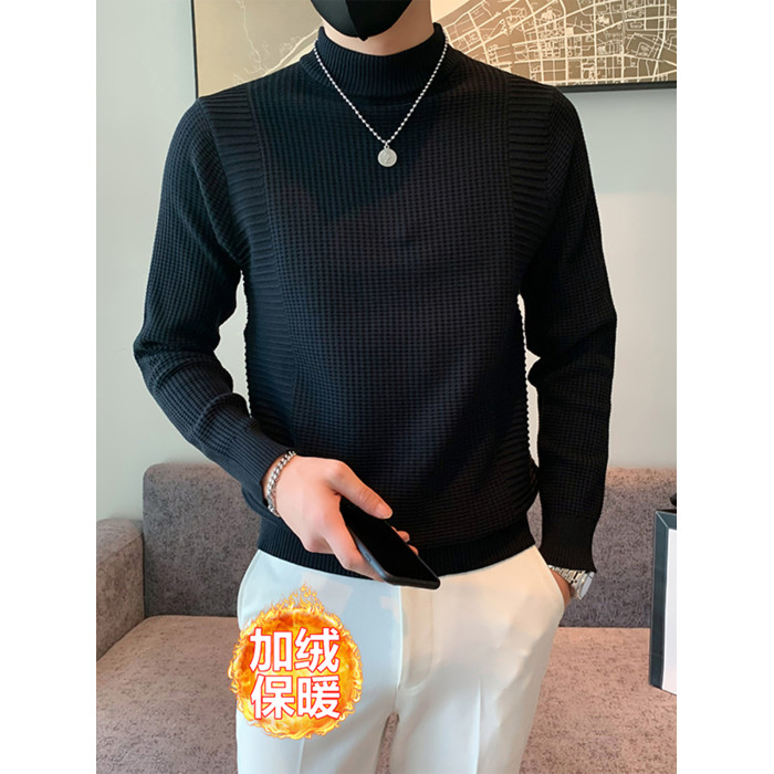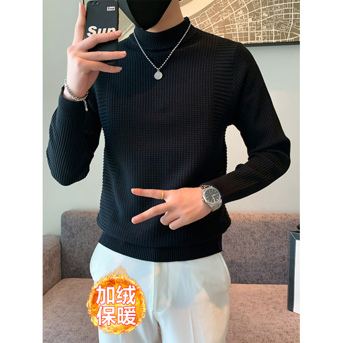 半高領加絨毛衣男士秋冬韓版修身內搭針織衫高級感百搭加厚毛線衣