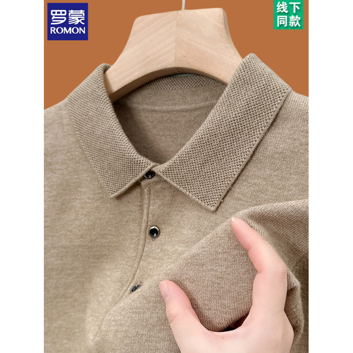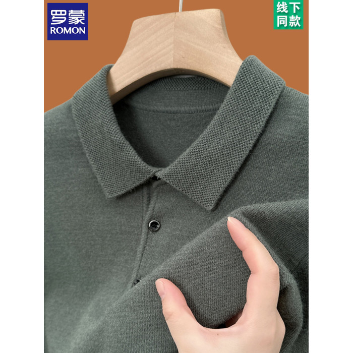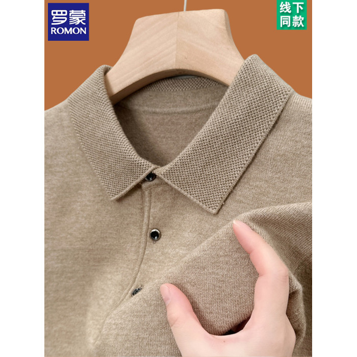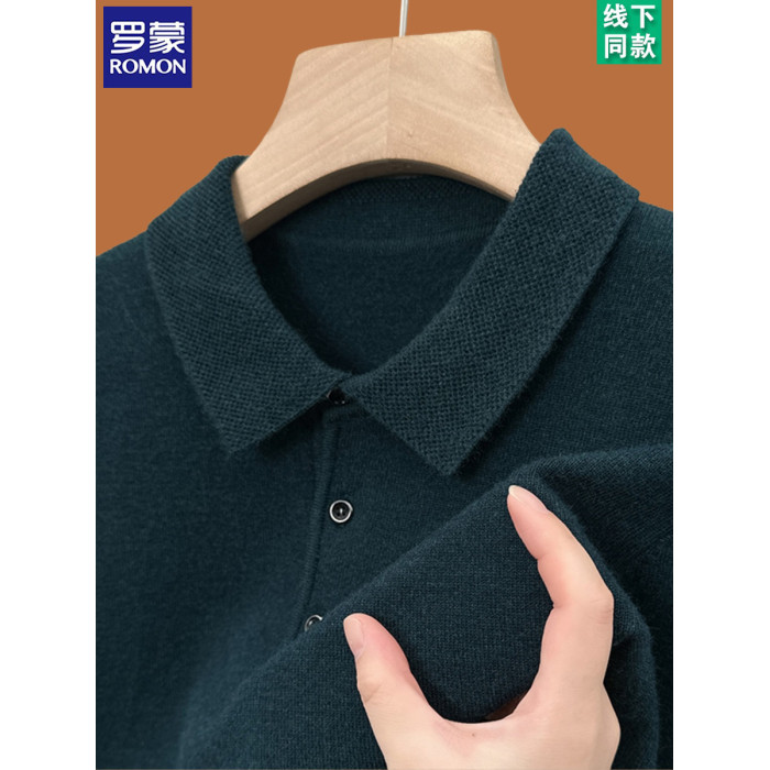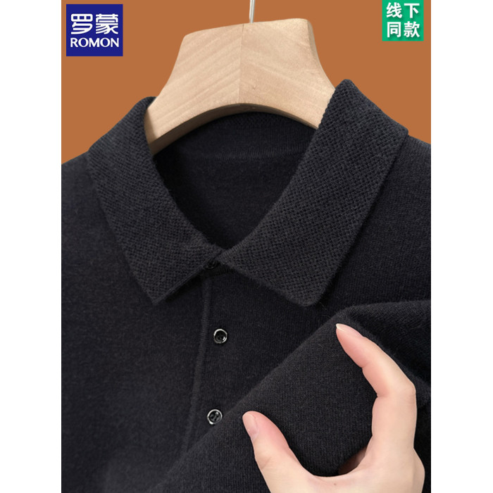 羅矇純色polo針織衫男士秋冬季商務休閒翻領套頭上衣毛衣打底衫男