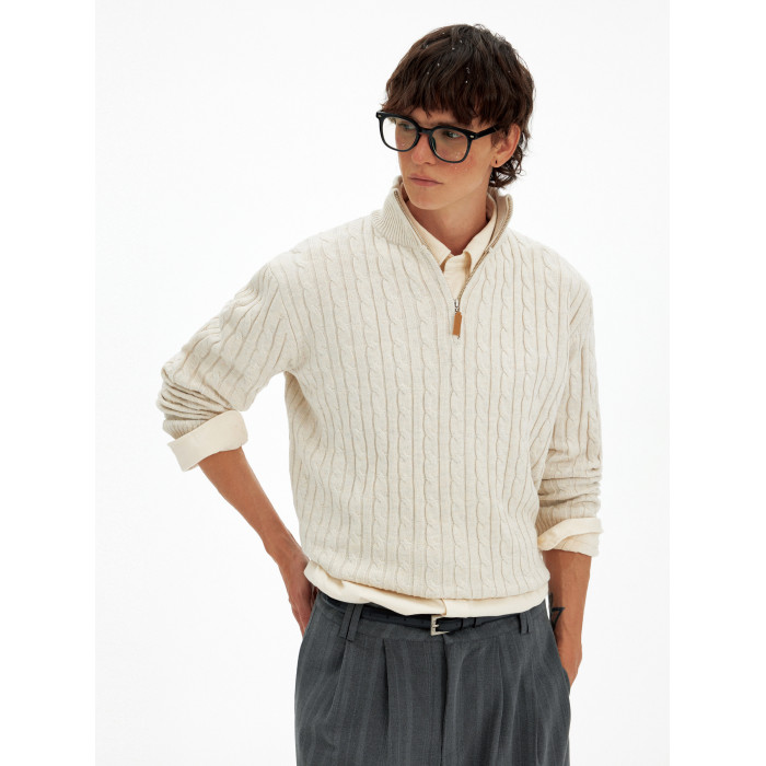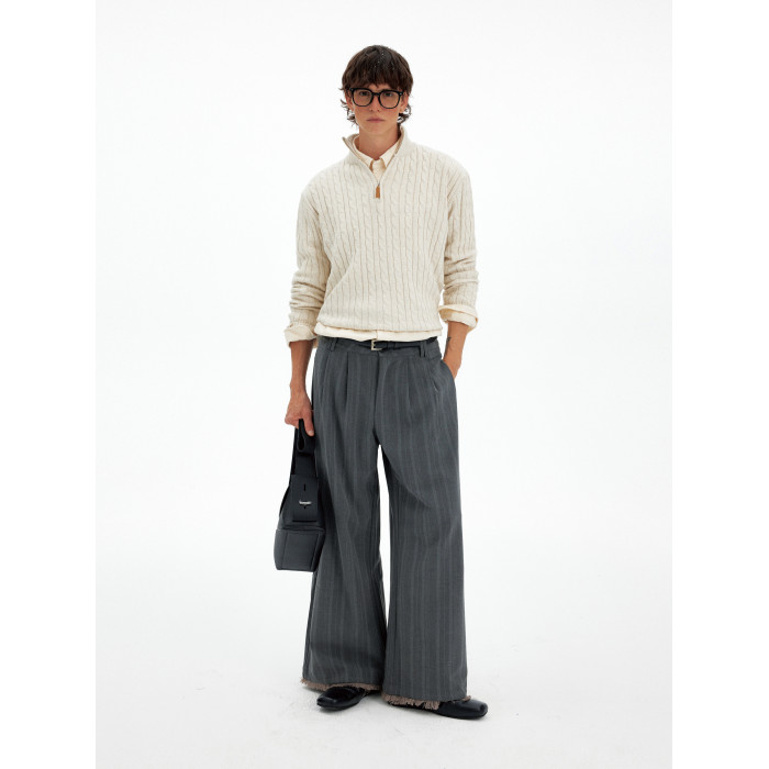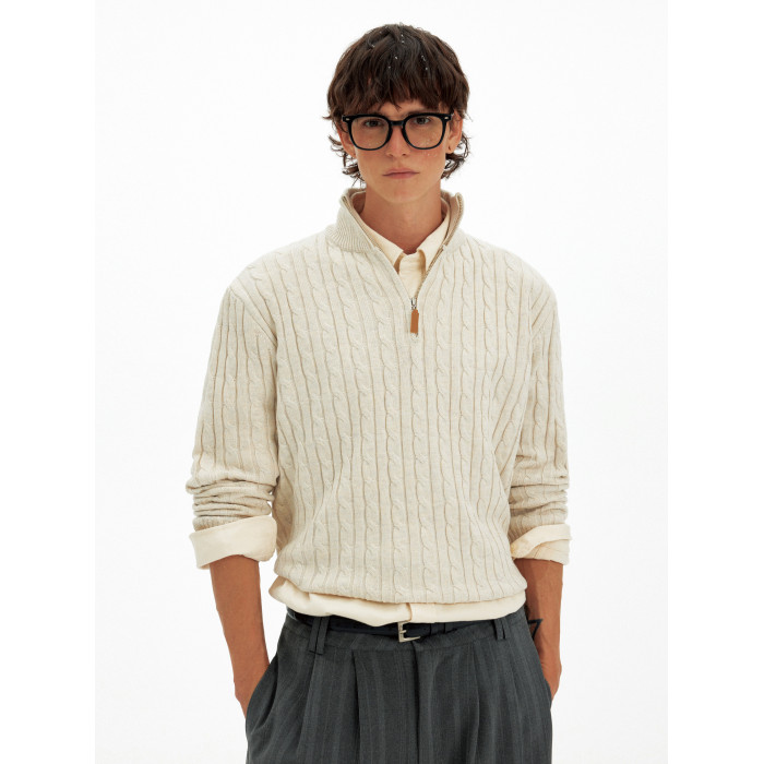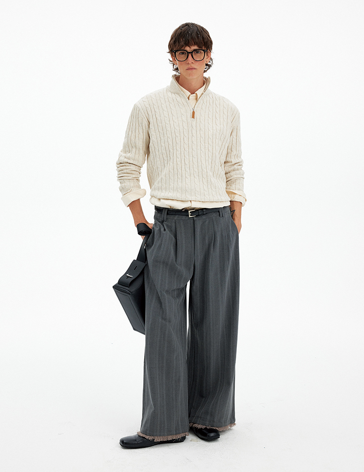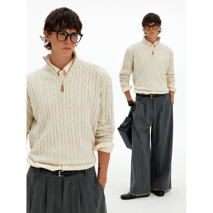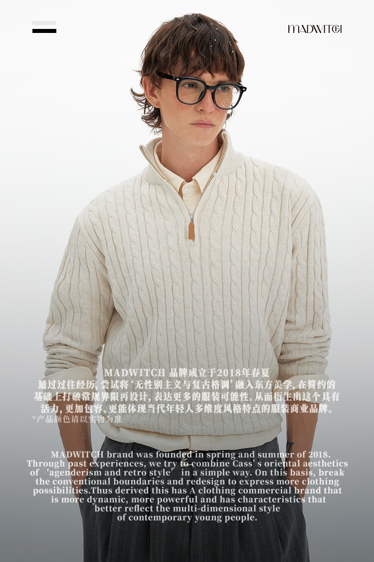 MADWITCH美式復古絞花半拉鍊毛衣男女秋冬休閒慵懶風軟糯針織衫潮