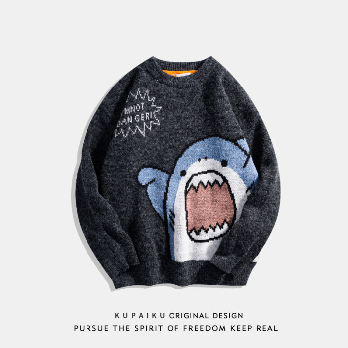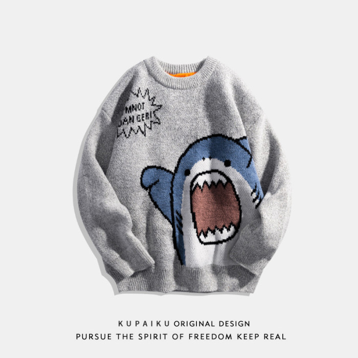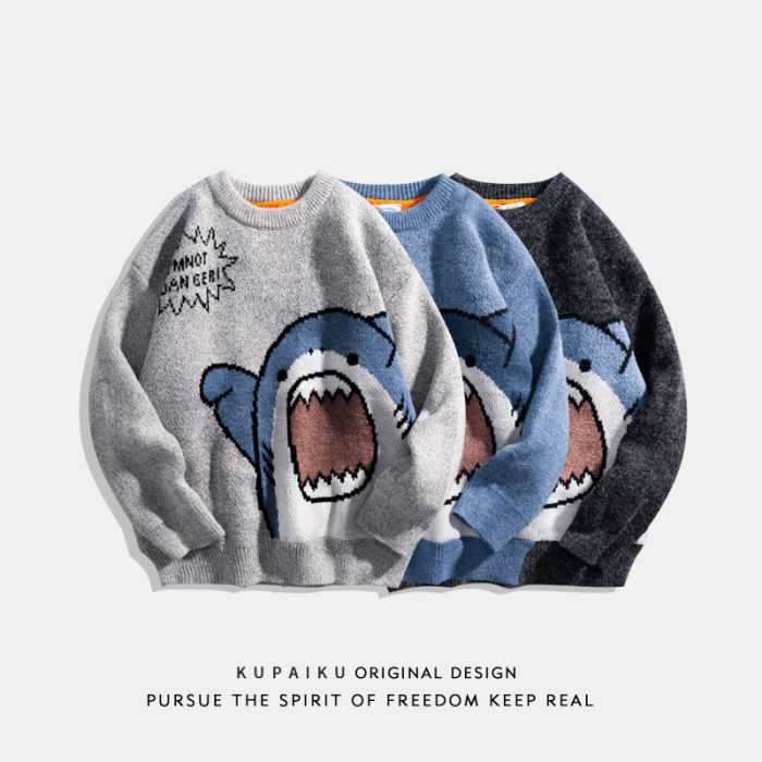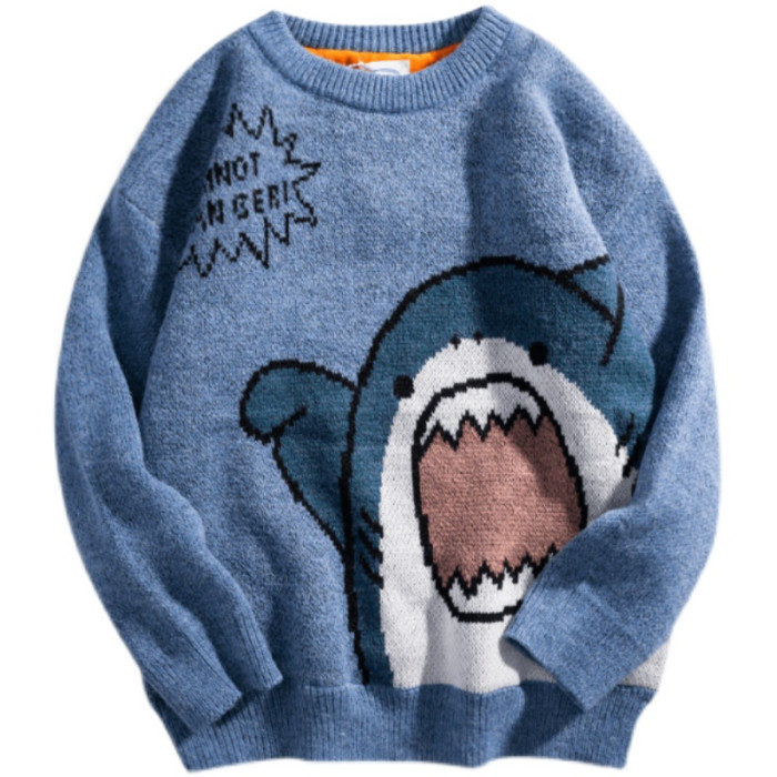 卡通圓領毛衣男秋冬潮ins春秋款復古日系感加厚大碼胖子針織衫