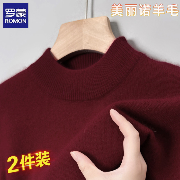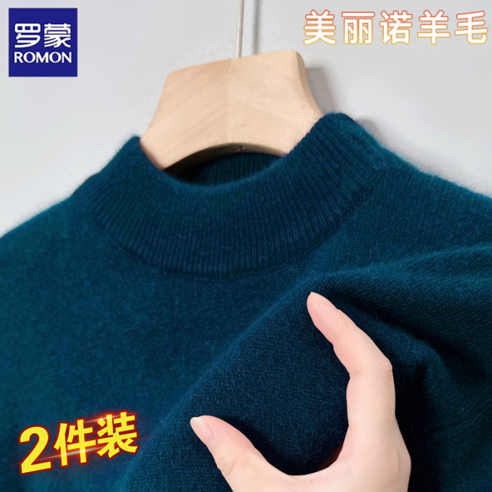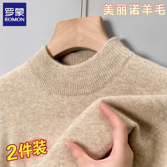 羅矇羊毛衫男士冬季加厚純色半高領羊絨毛衣爸爸裝針織大碼打底衫