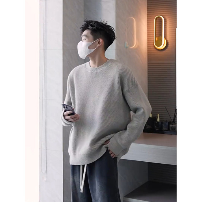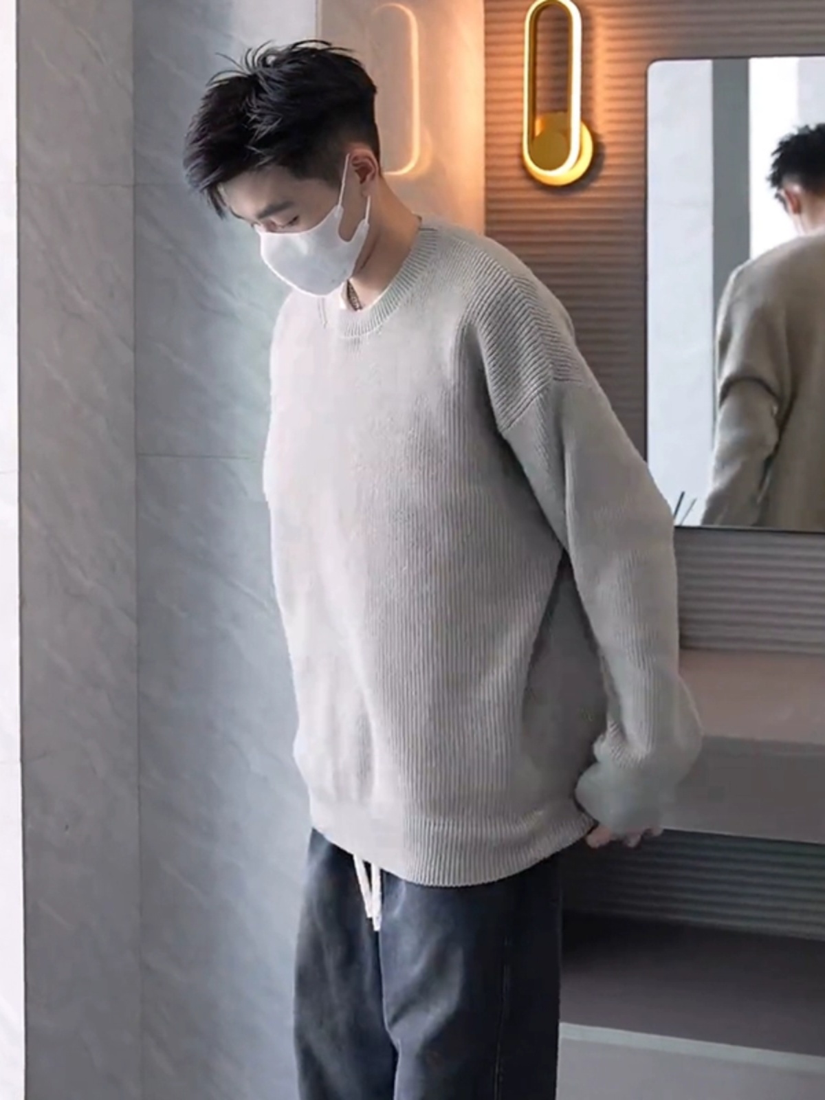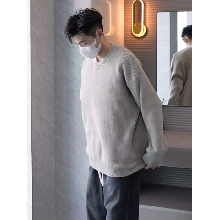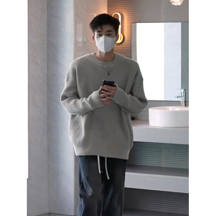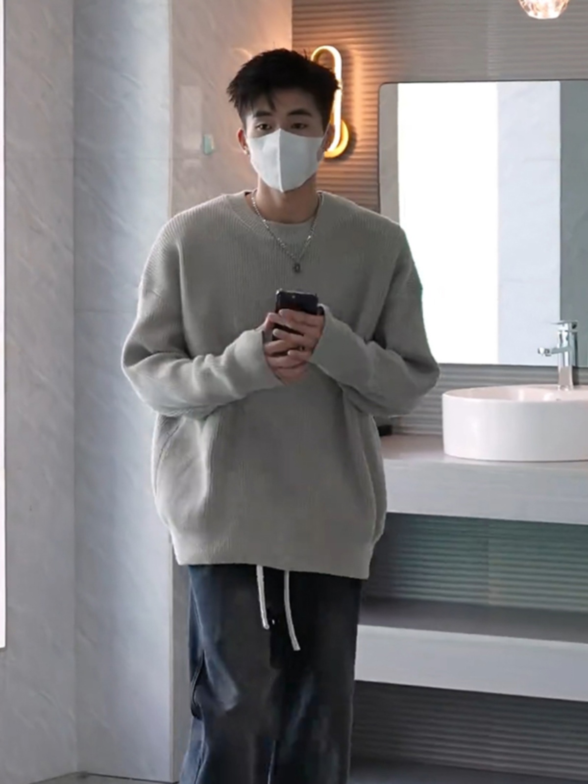 cleanfit灰色圓領毛衣男款秋冬季加絨內搭打底衫美式復古潮牌外套