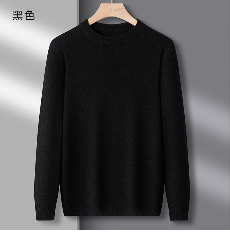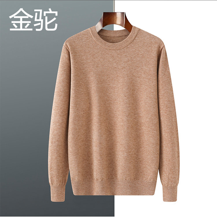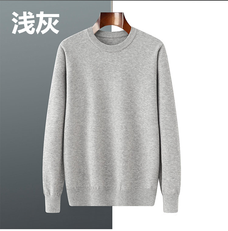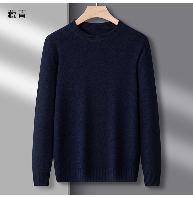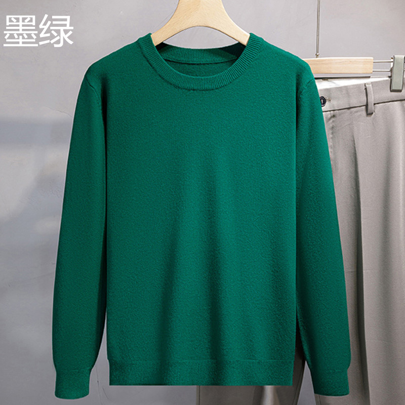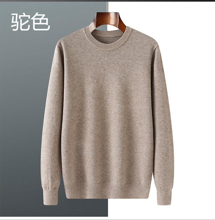 鄂爾多斯市産冬季羊毛衫男純色長袖針織衫加厚圓領打底衫羊絨毛衣