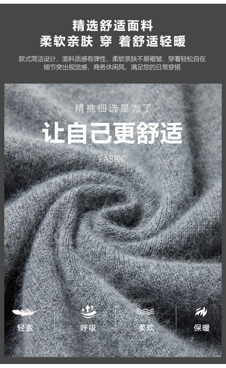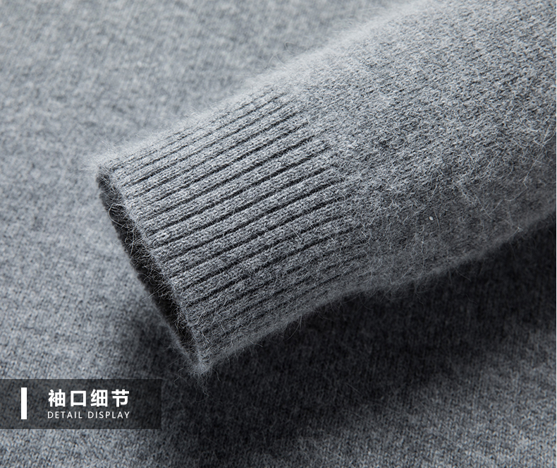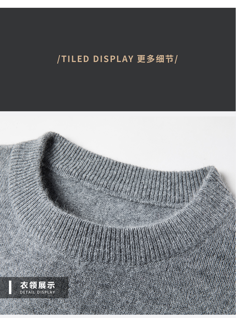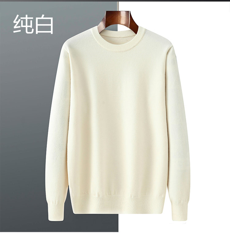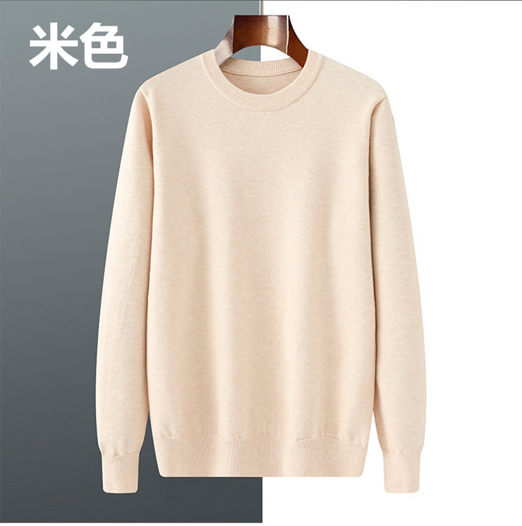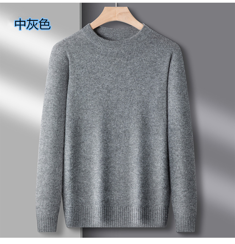 鄂爾多斯市産冬季羊毛衫男純色長袖針織衫加厚圓領打底衫羊絨毛衣