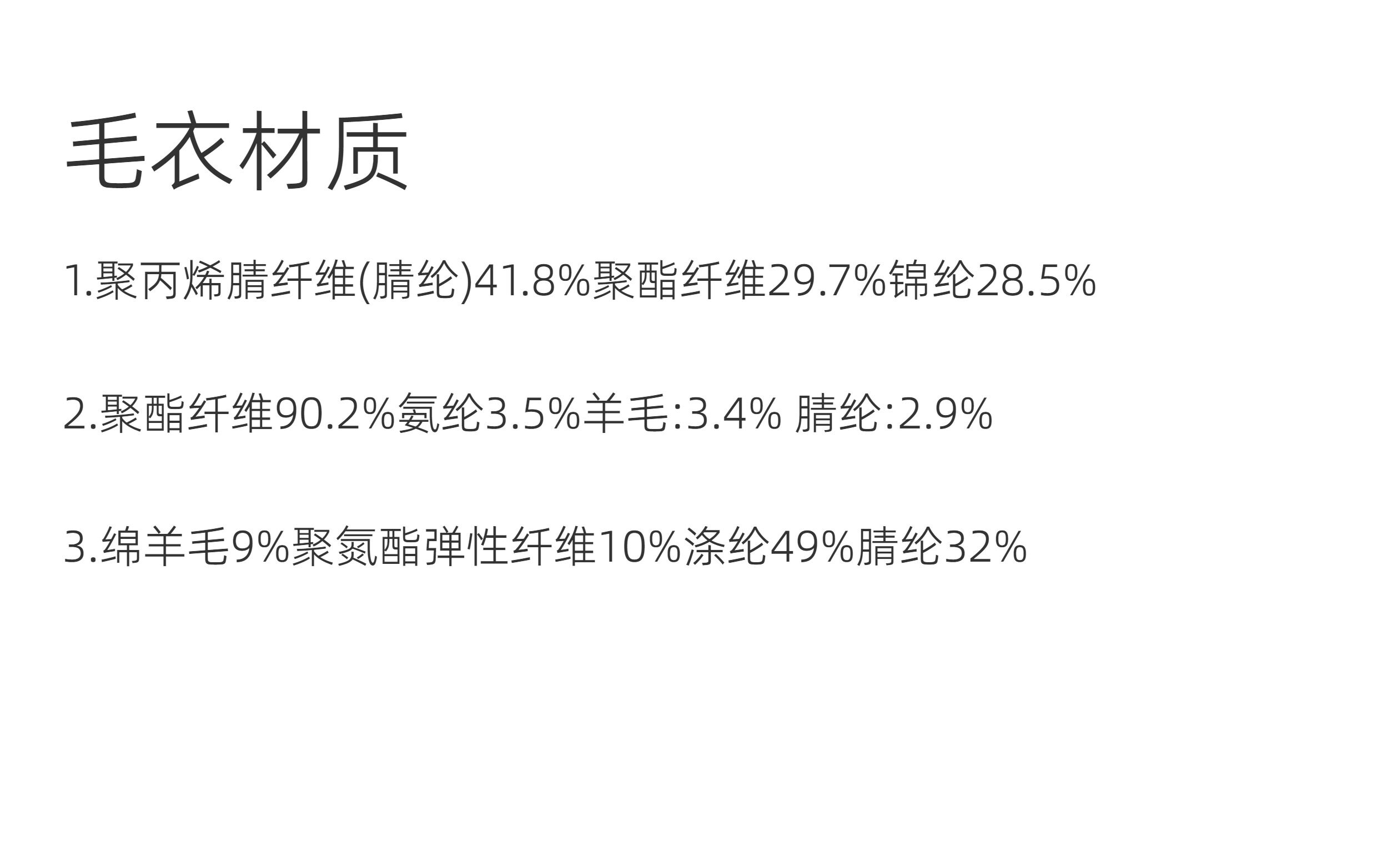 材質成分 聚丙烯腈纖維(腈綸)41.8% 聚酯纖維29.7% 聚醯胺纖維(錦綸)28.5%