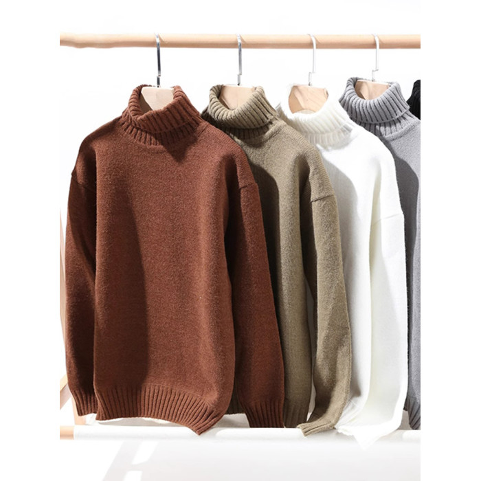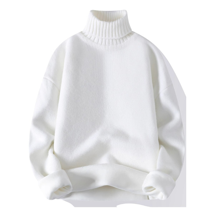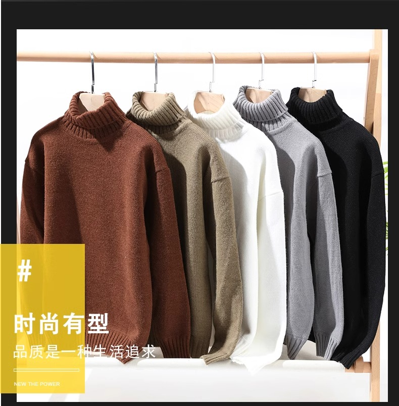 高領毛衣男女2025秋冬新款日系慵懶風情侶白色打底針織衫潮半高領