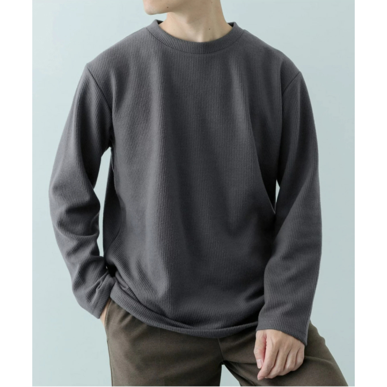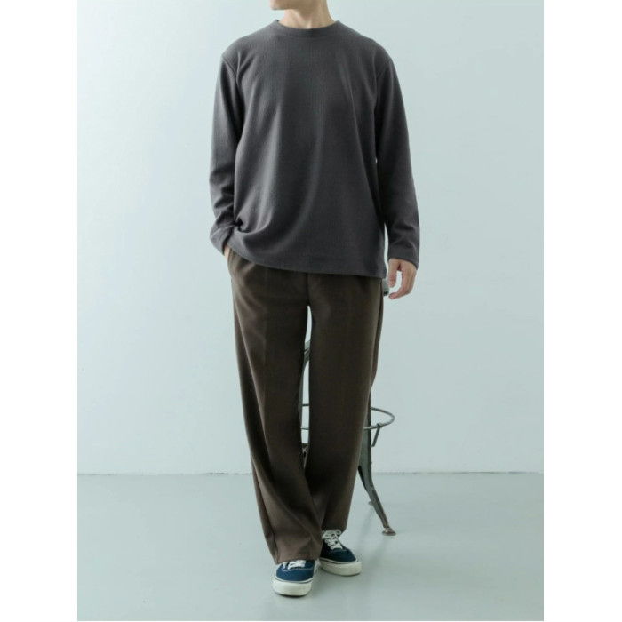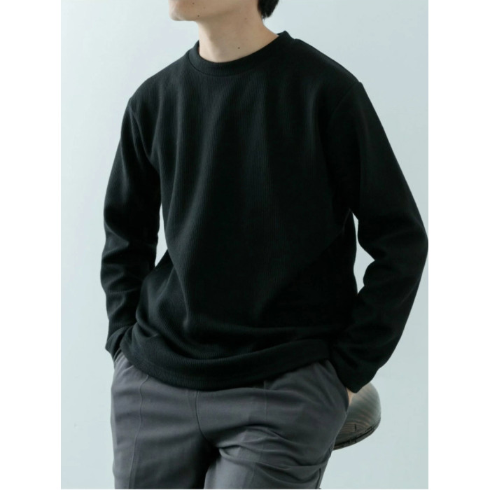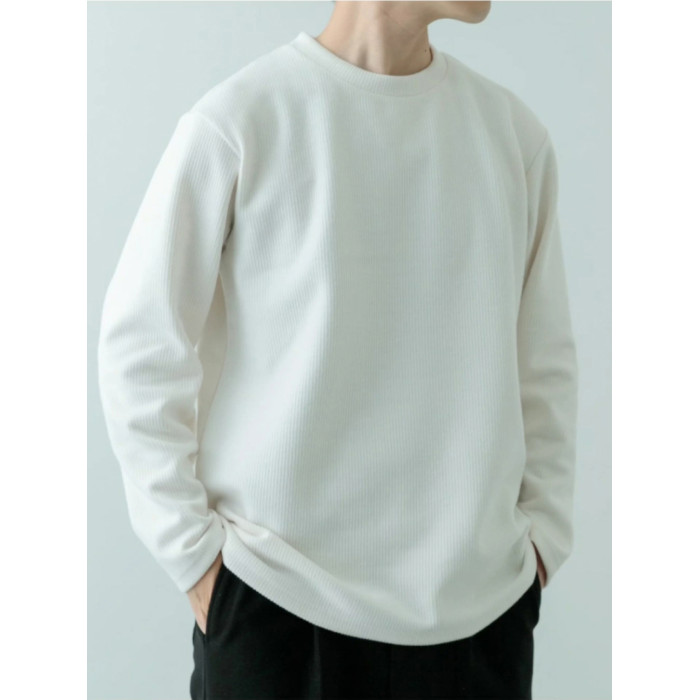 日單品牌男裝秋冬新款簡單休閒百搭圓領坑條磨毛針織衫衛衣31406