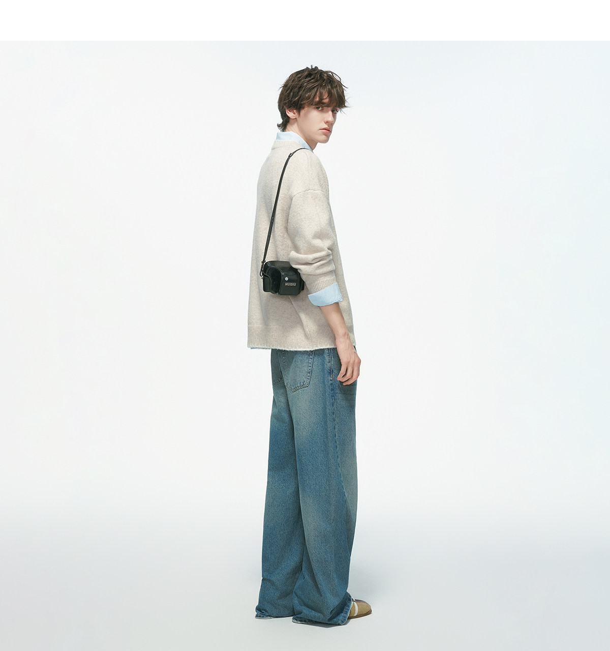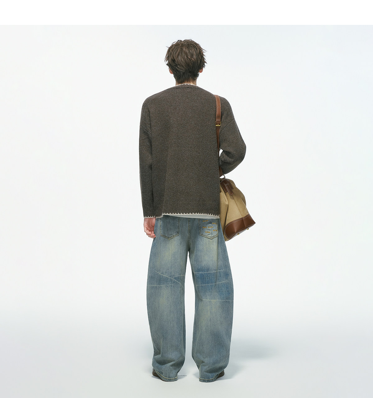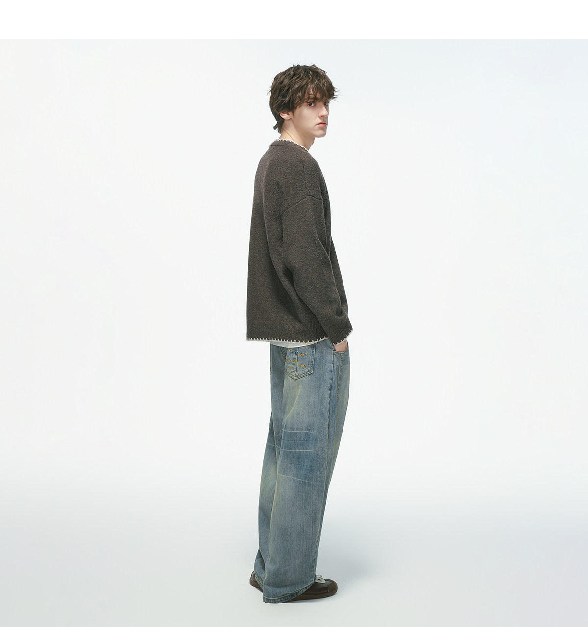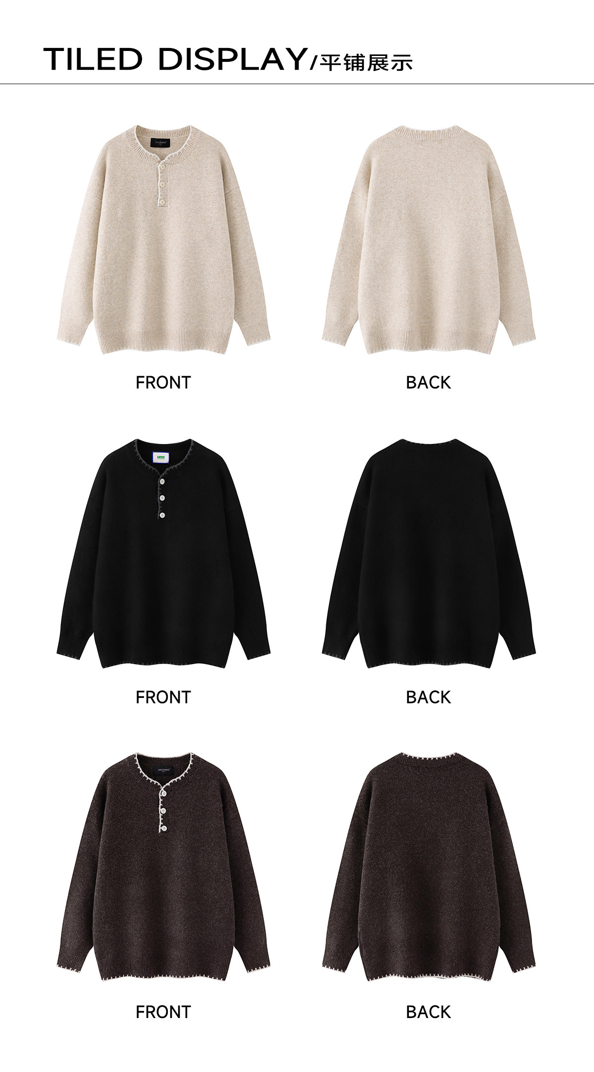Dream made 手縫線亨利領羊毛混紡毛衣男秋冬季內搭老錢風針織衫