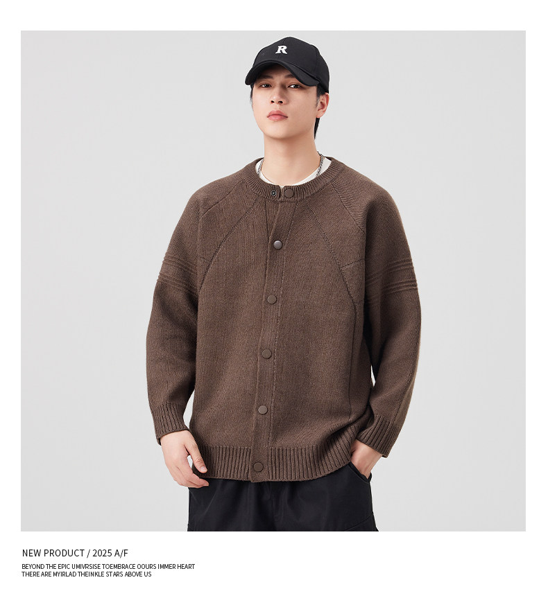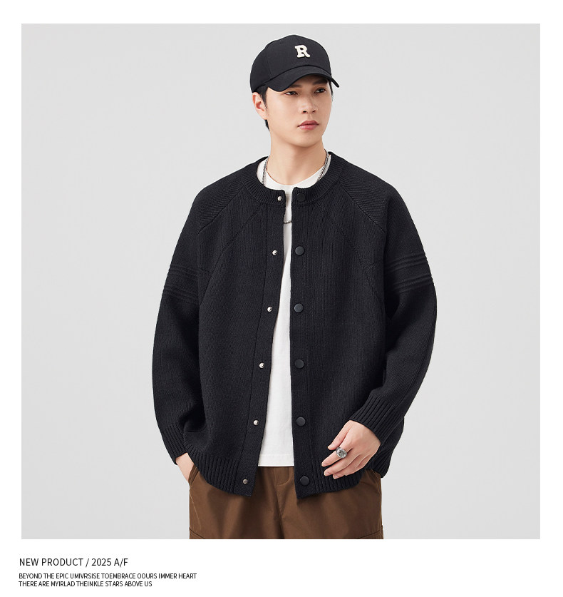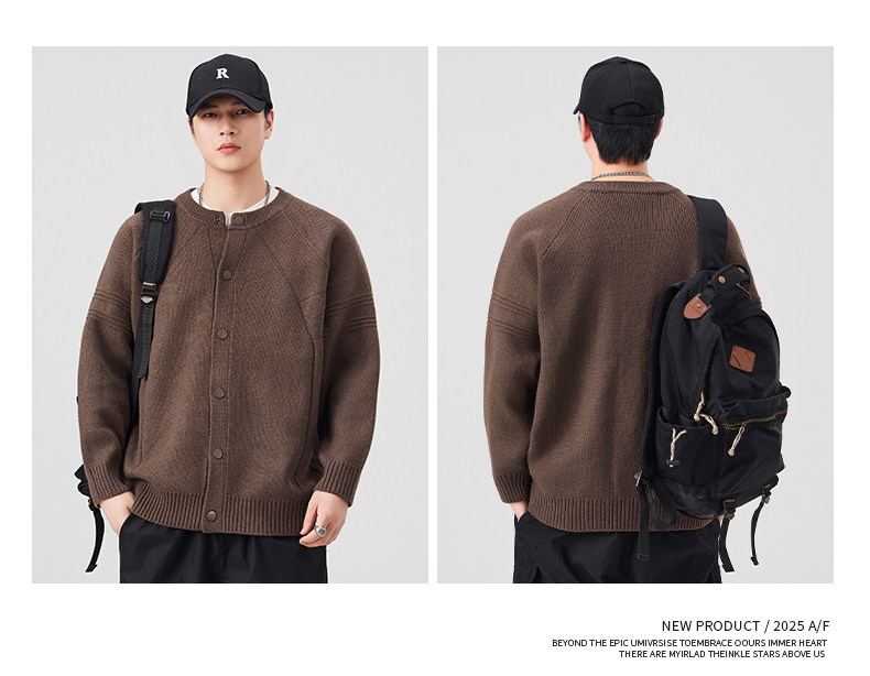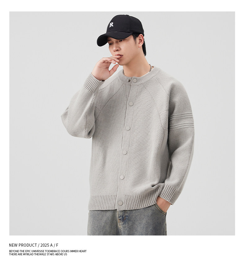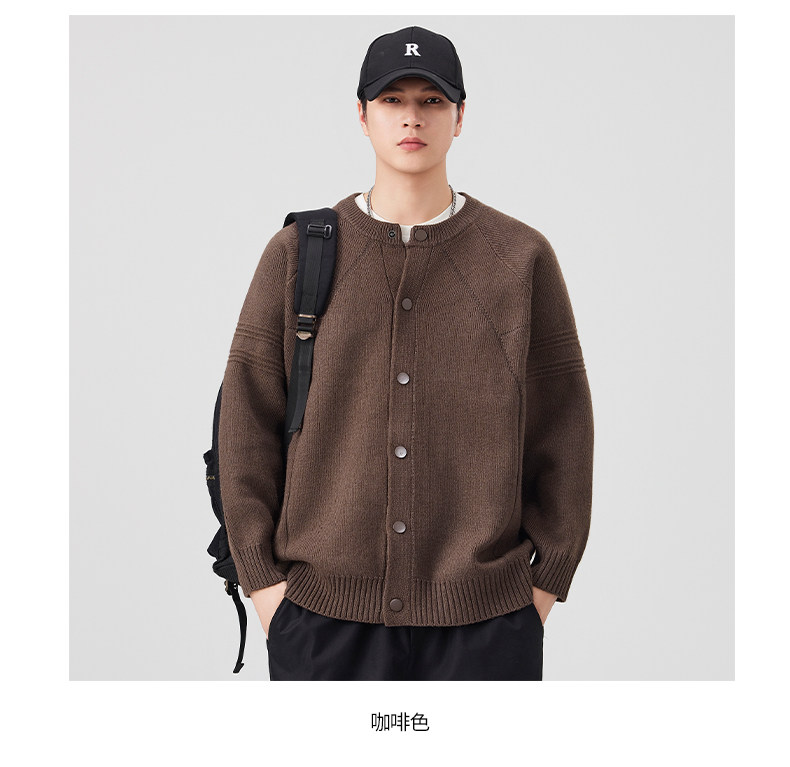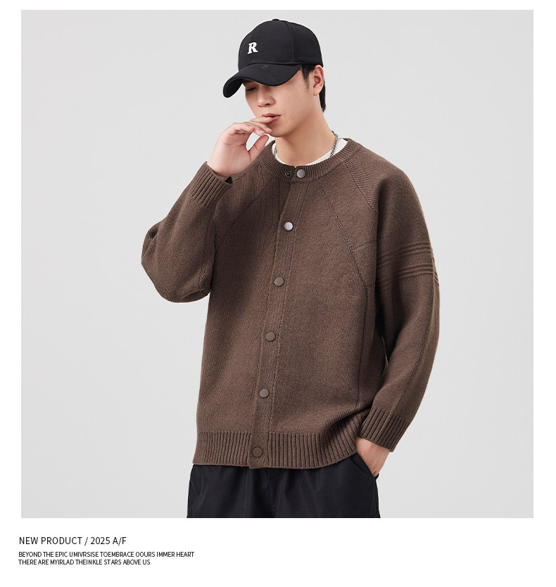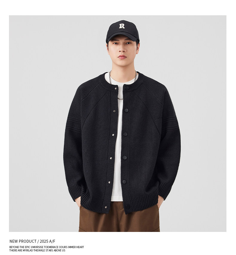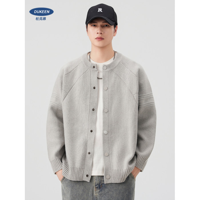 杜克恩930G重磅開衫針織外套男2025加厚保暖寬松慵懶感圓領毛衣男