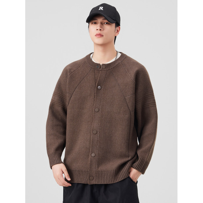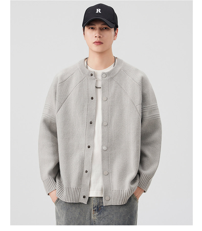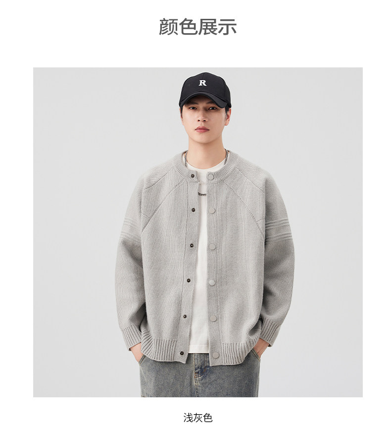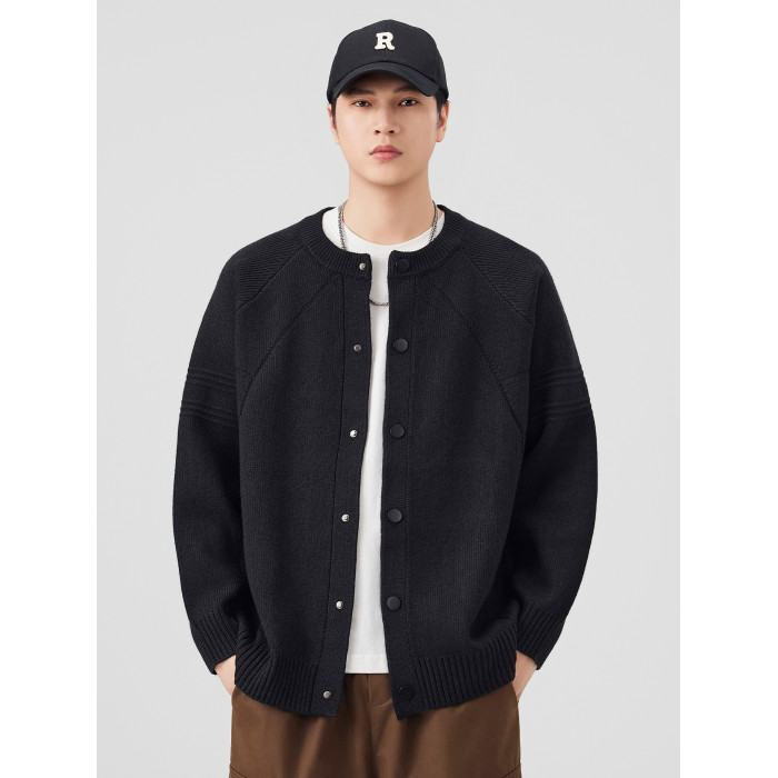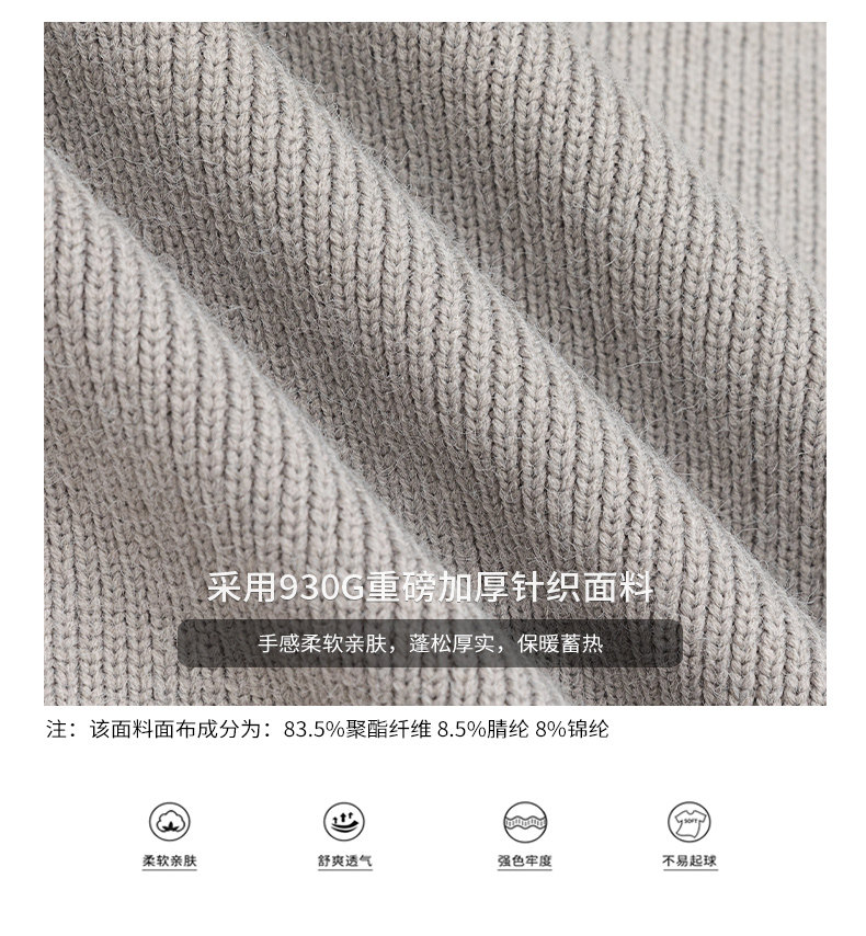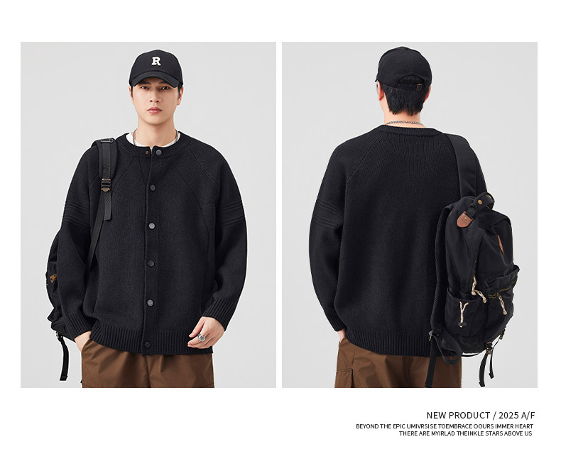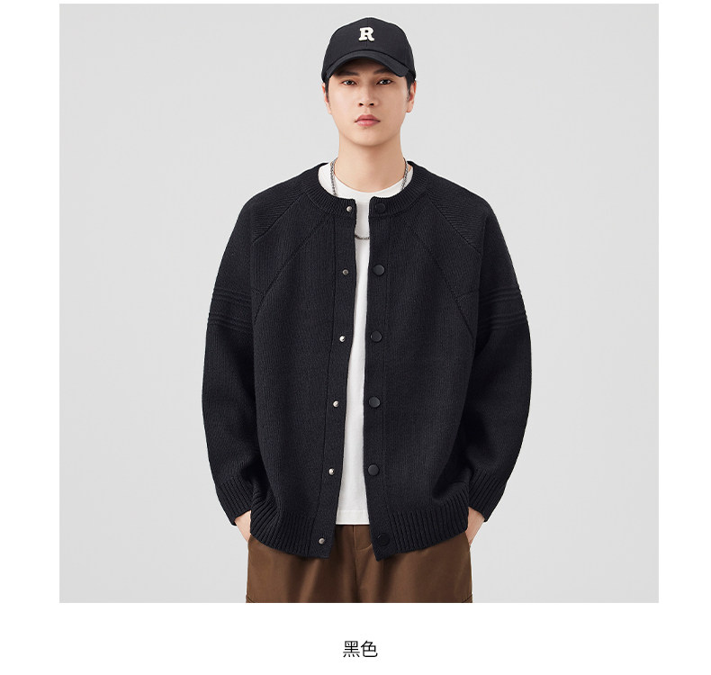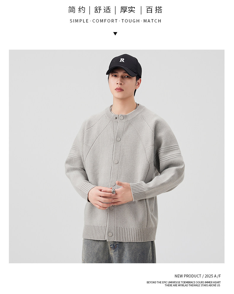 杜克恩930G重磅開衫針織外套男2025加厚保暖寬松慵懶感圓領毛衣男