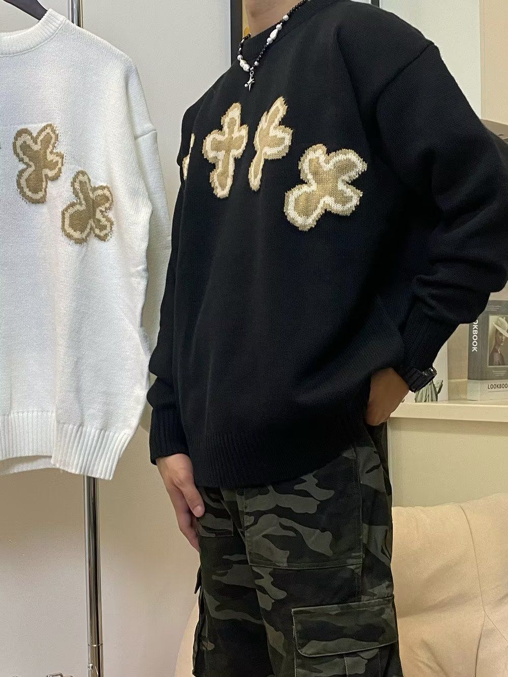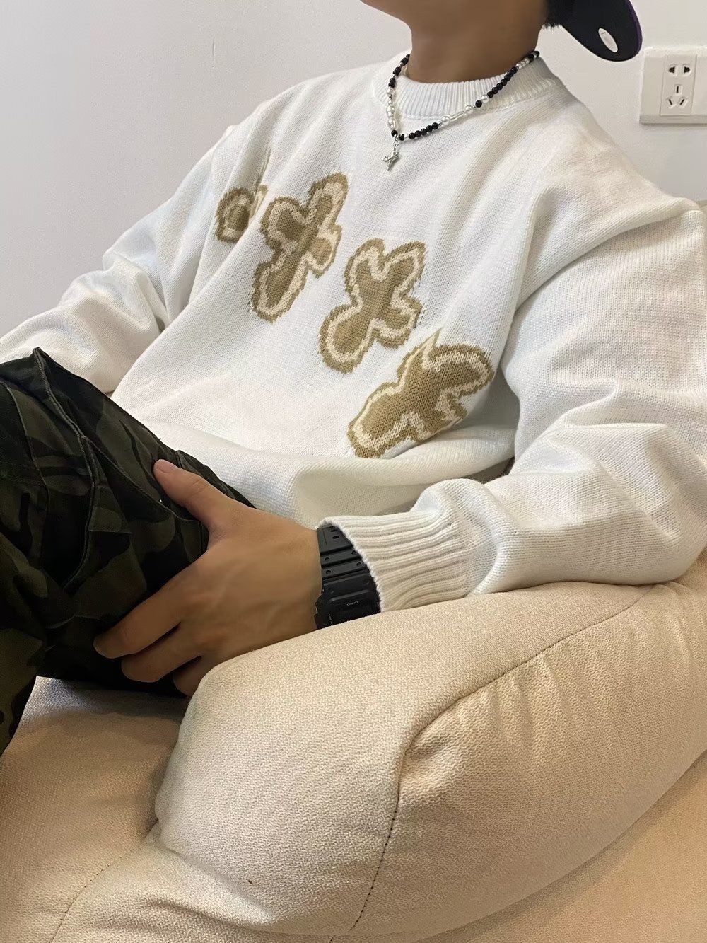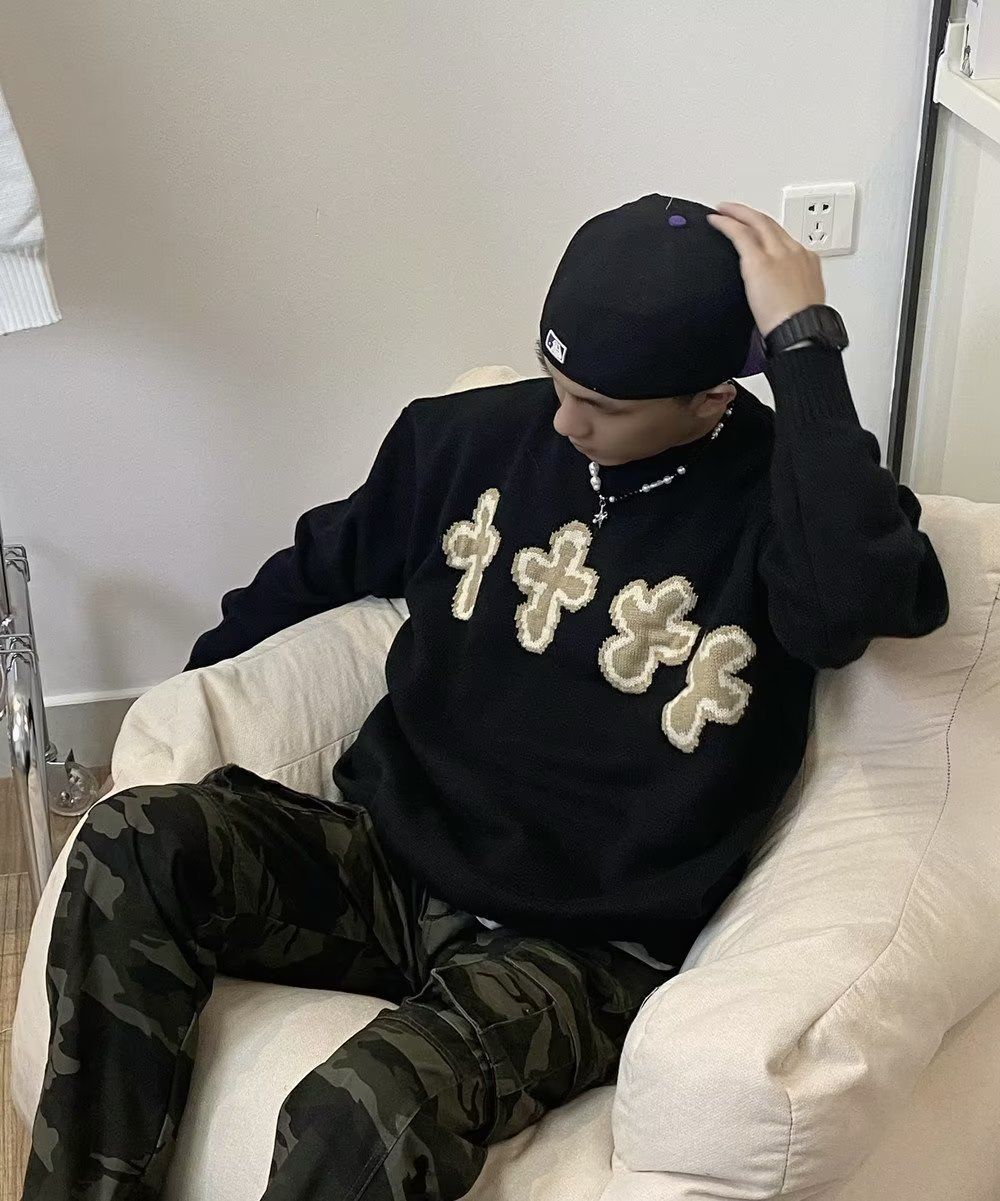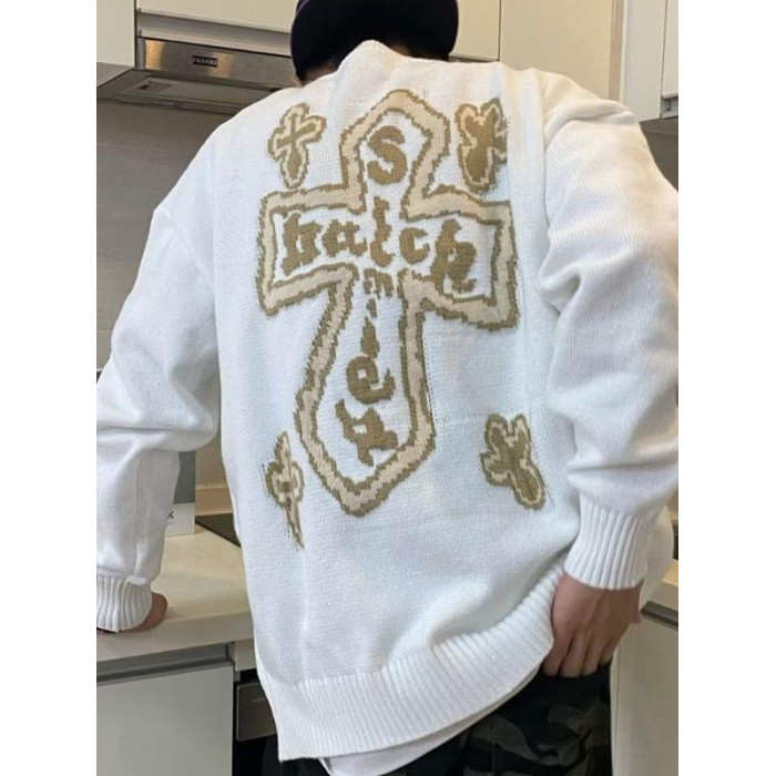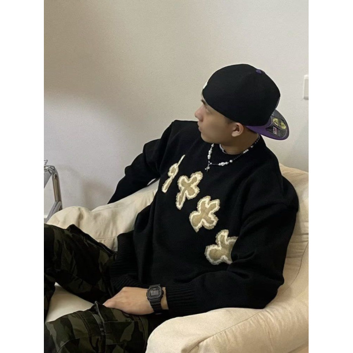 韓國買手貨高級高街十字架塗鴉毛衣男女款復古小衆嘻哈情侶針織衫