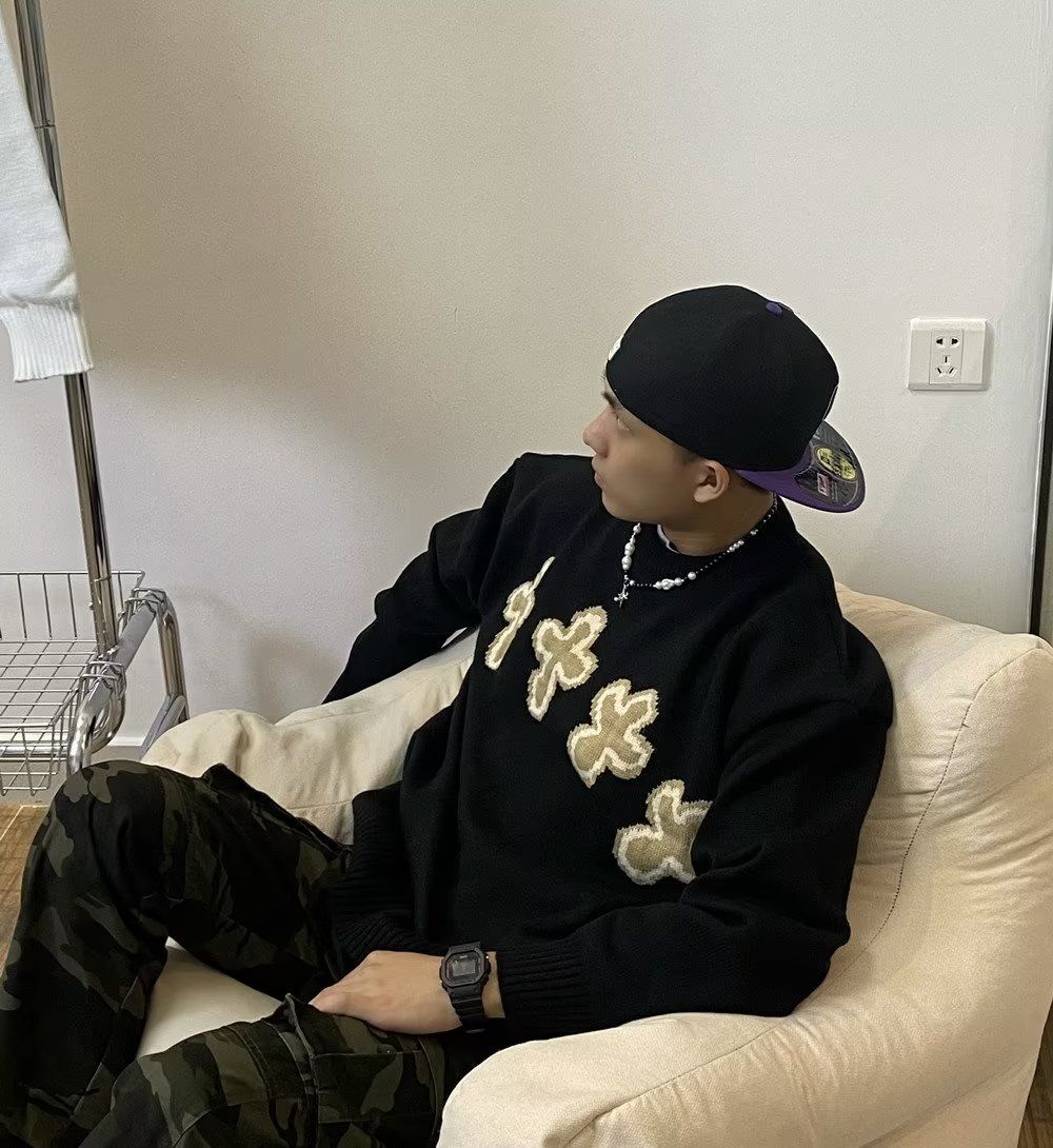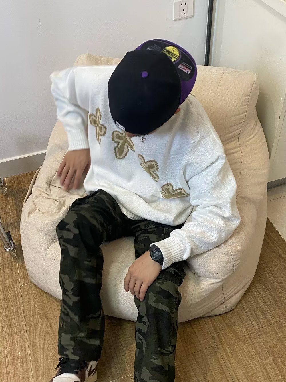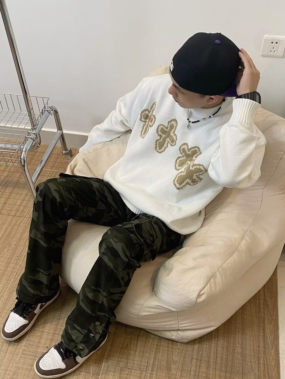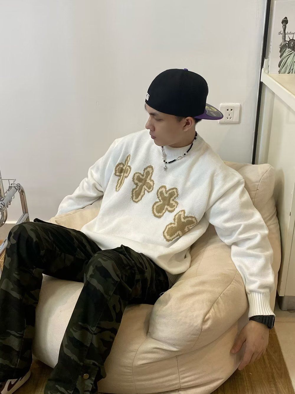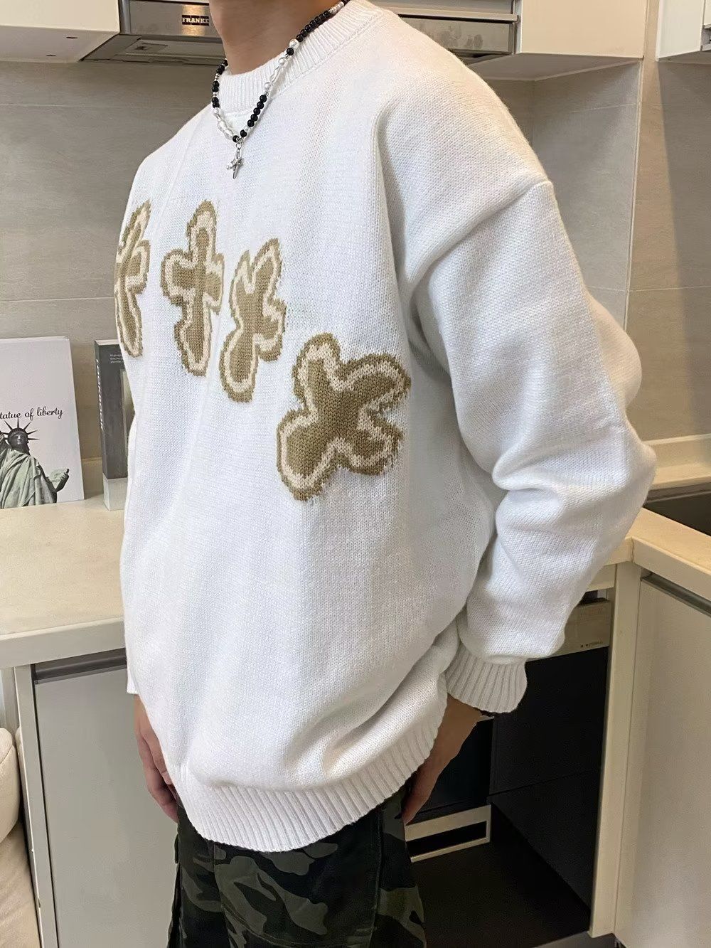 韓國買手貨高級高街十字架塗鴉毛衣男女款復古小衆嘻哈情侶針織衫