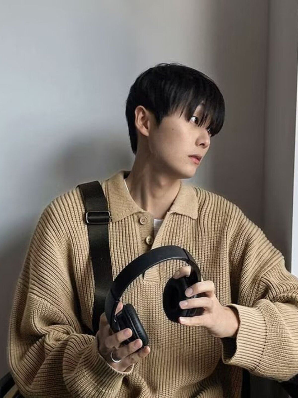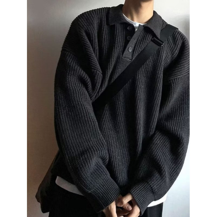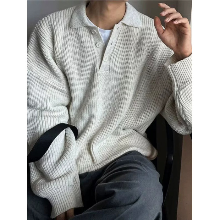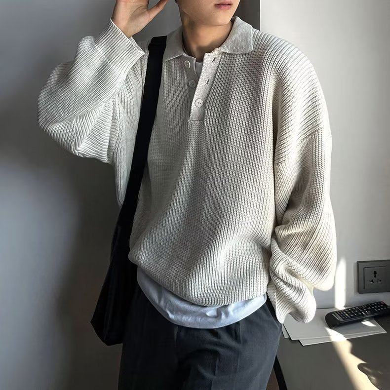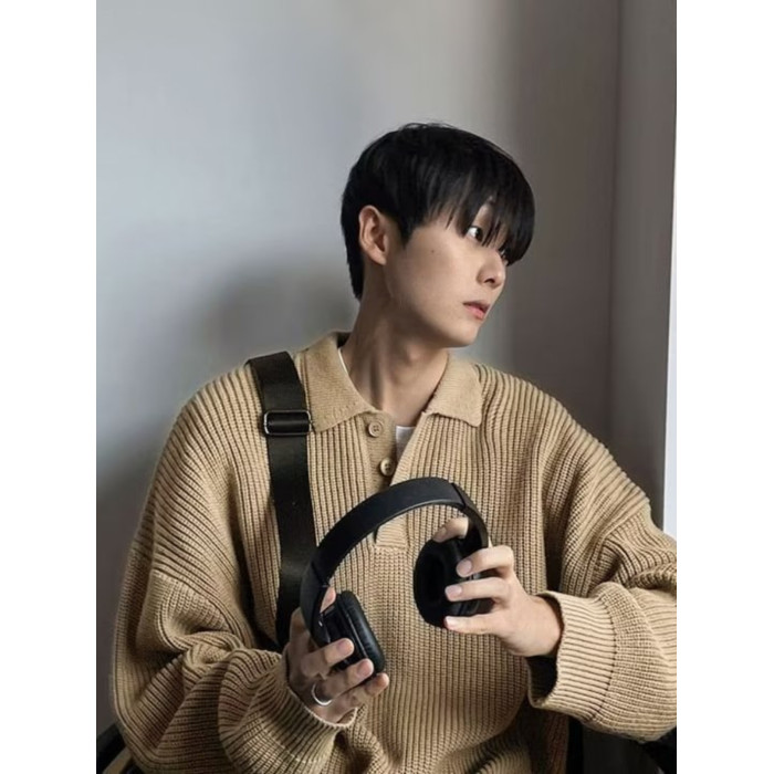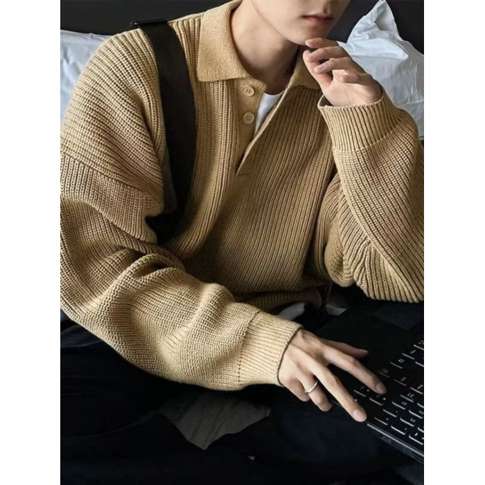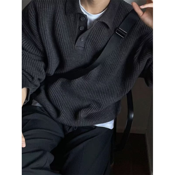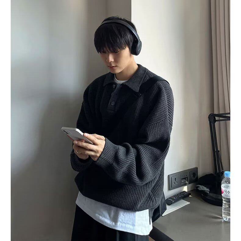 日系慵懶風polo領毛衣衛衣男美式復古打底加厚高級感套頭針織衫秋