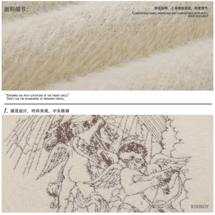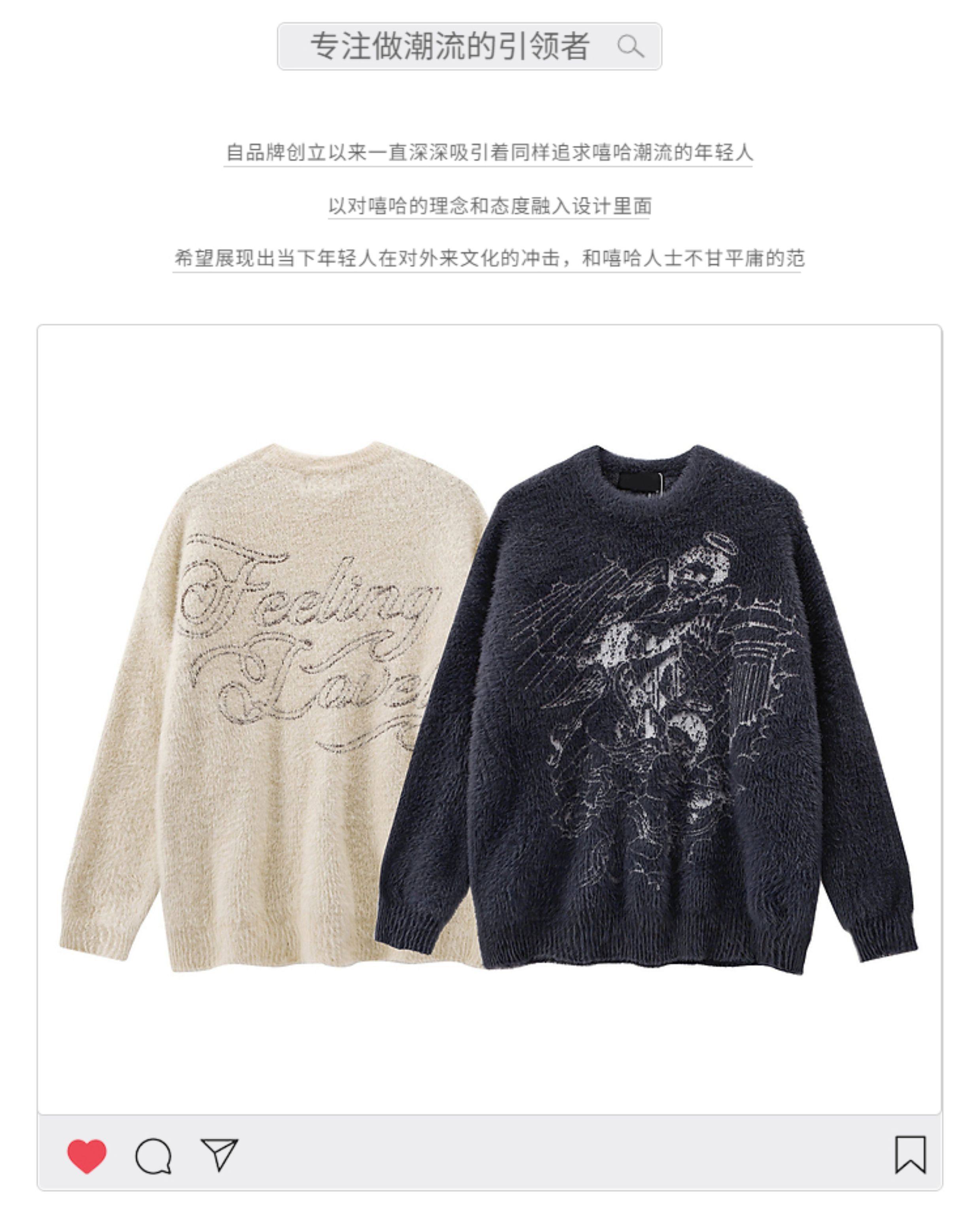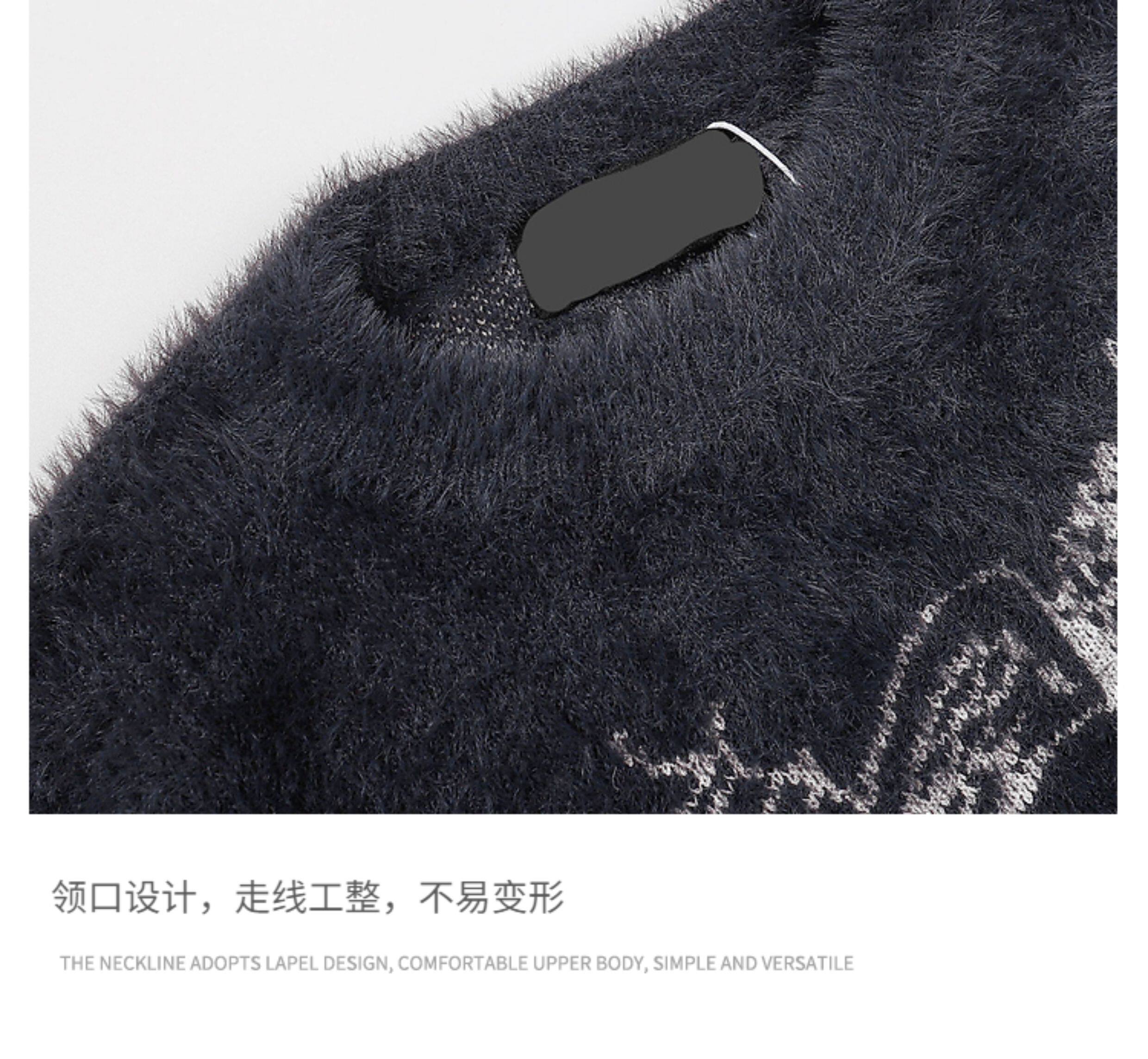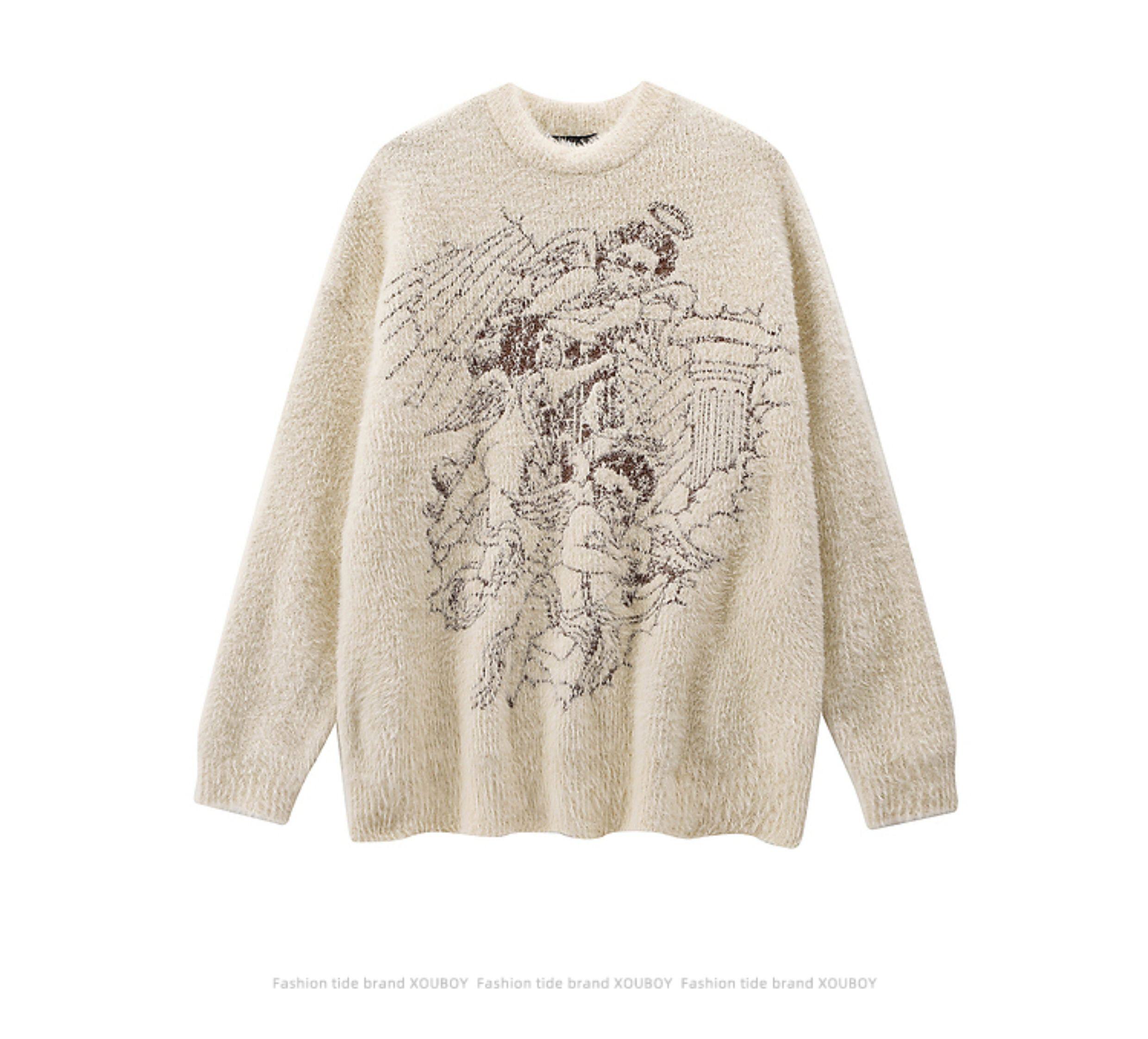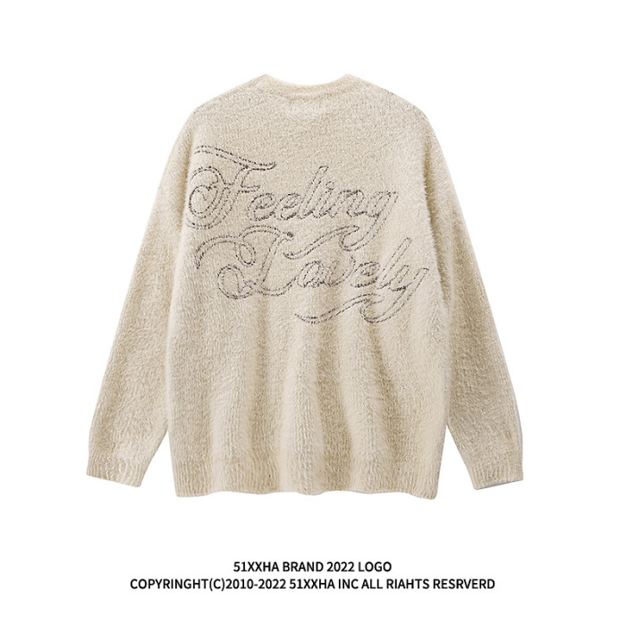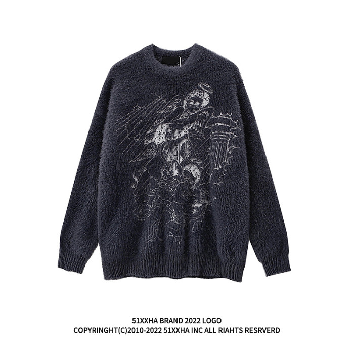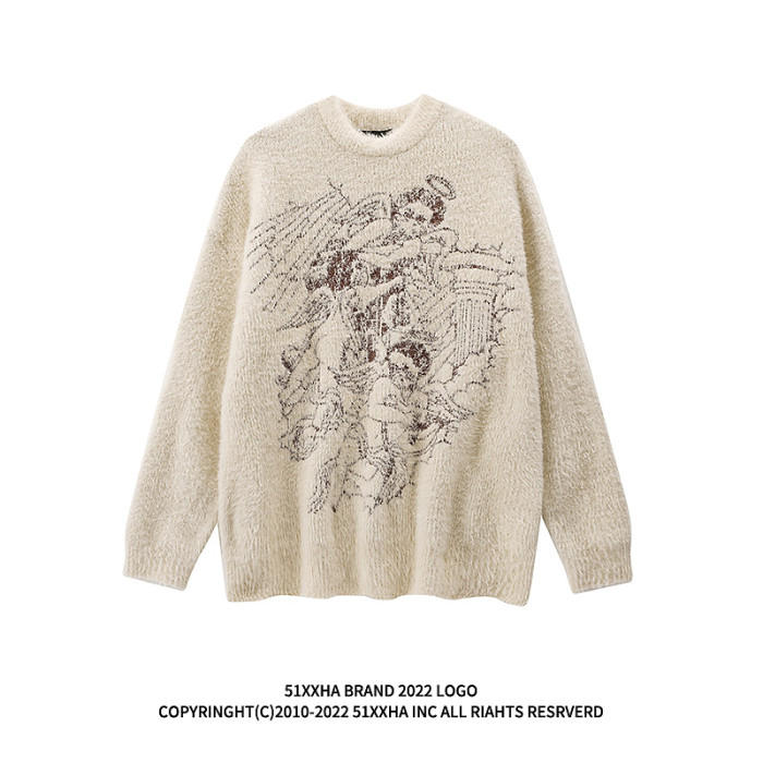 vintage美式復古創意提花圓領毛衣男女秋冬hiphop情侶長袖針織衫