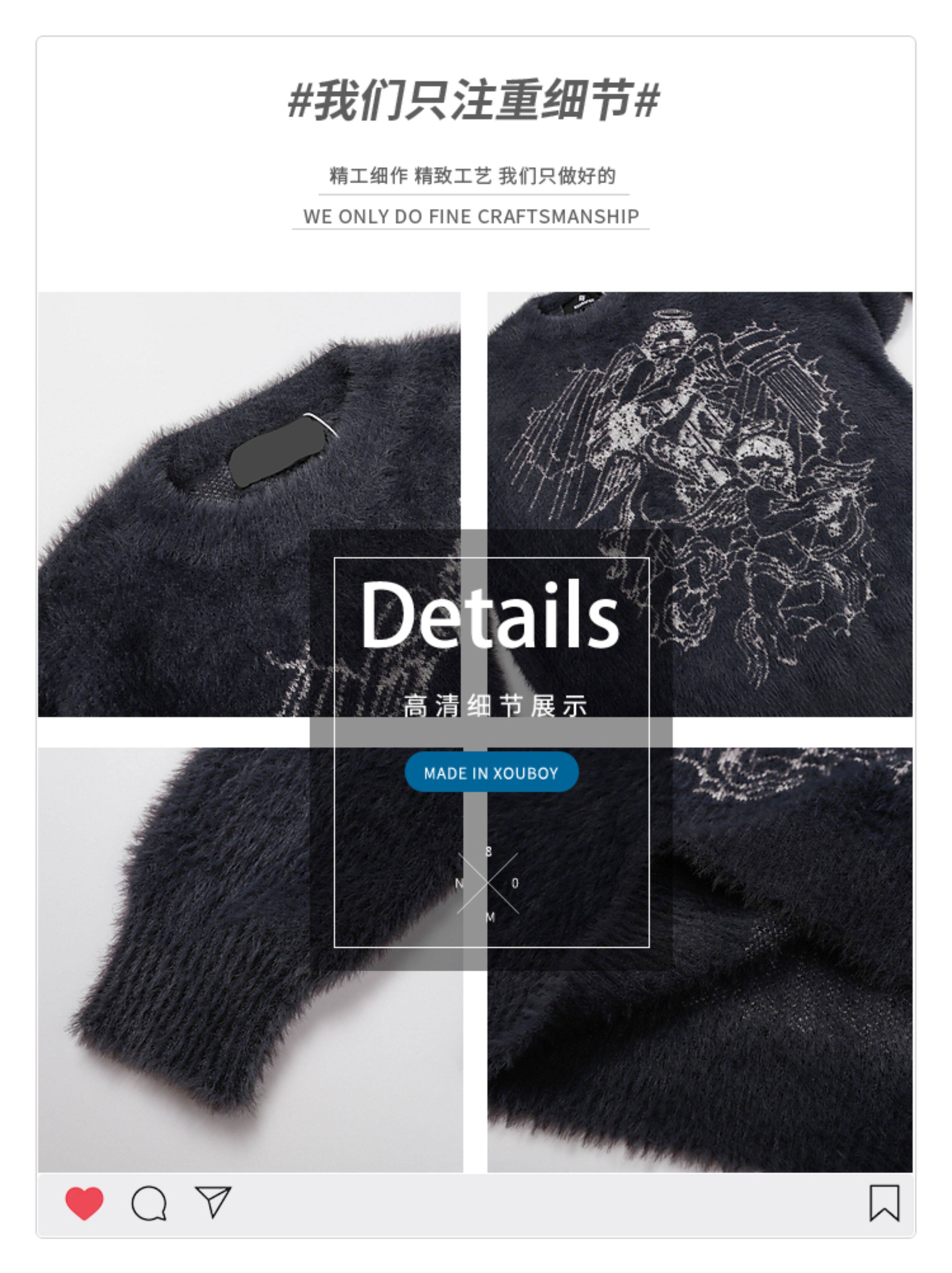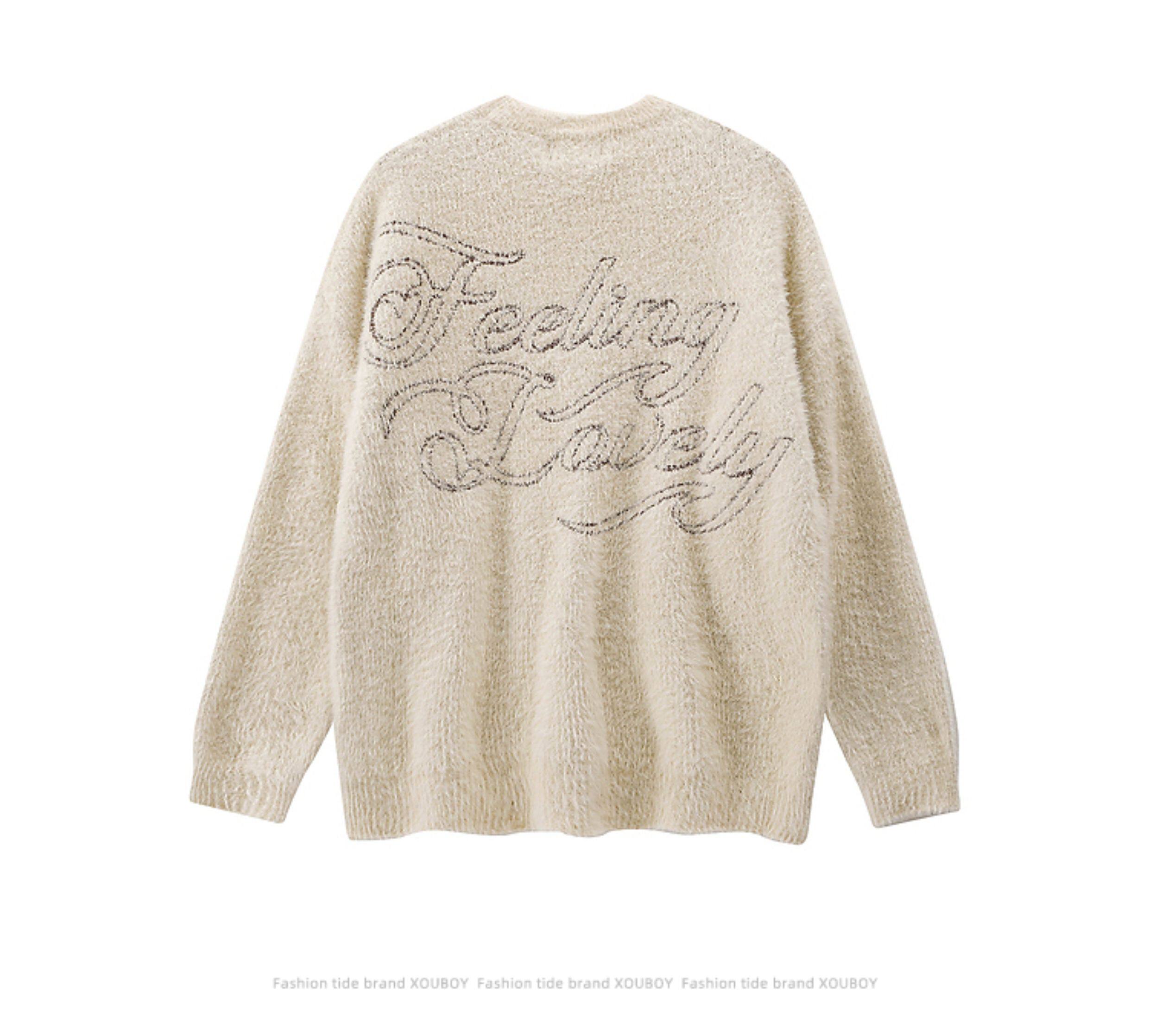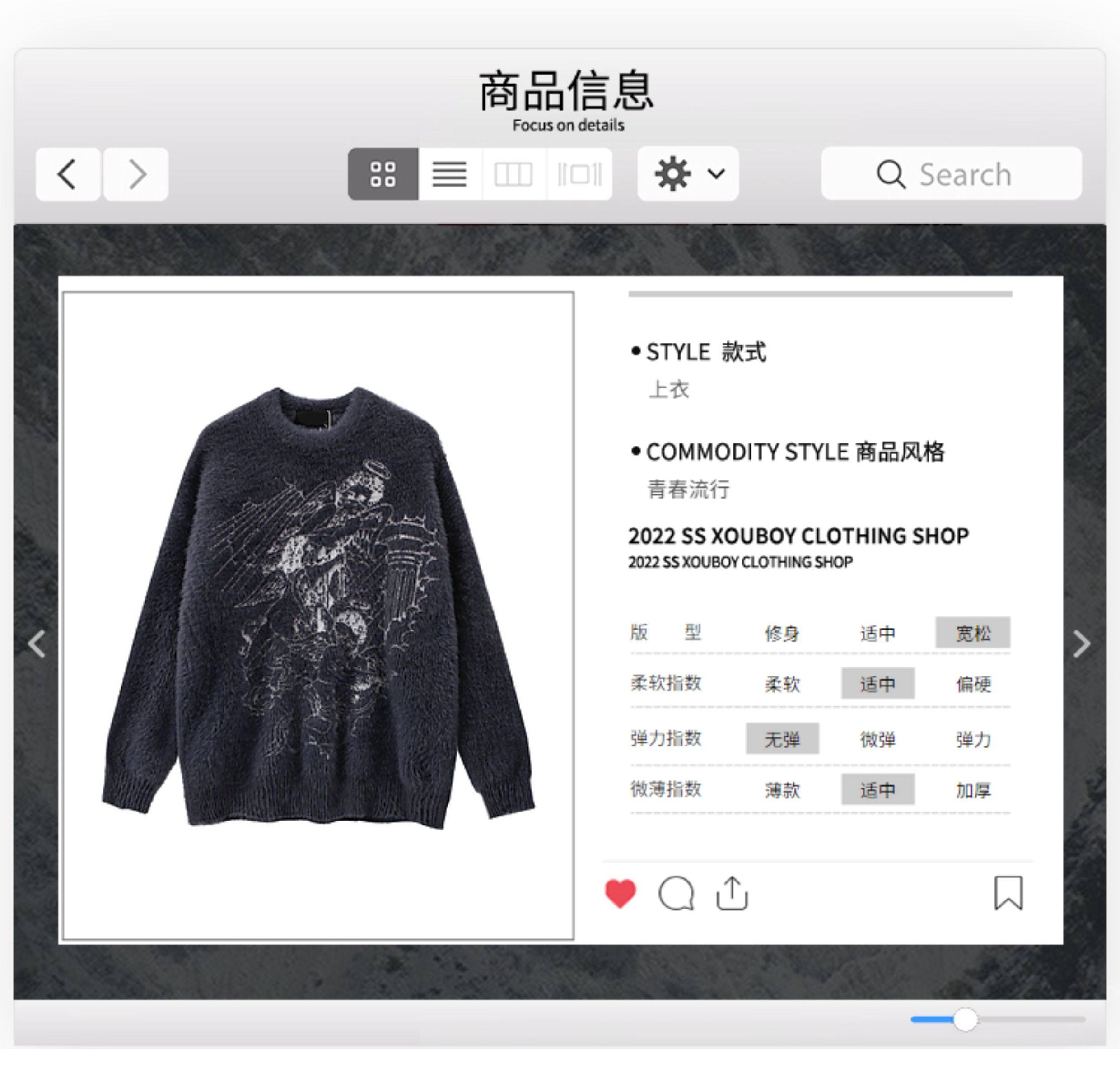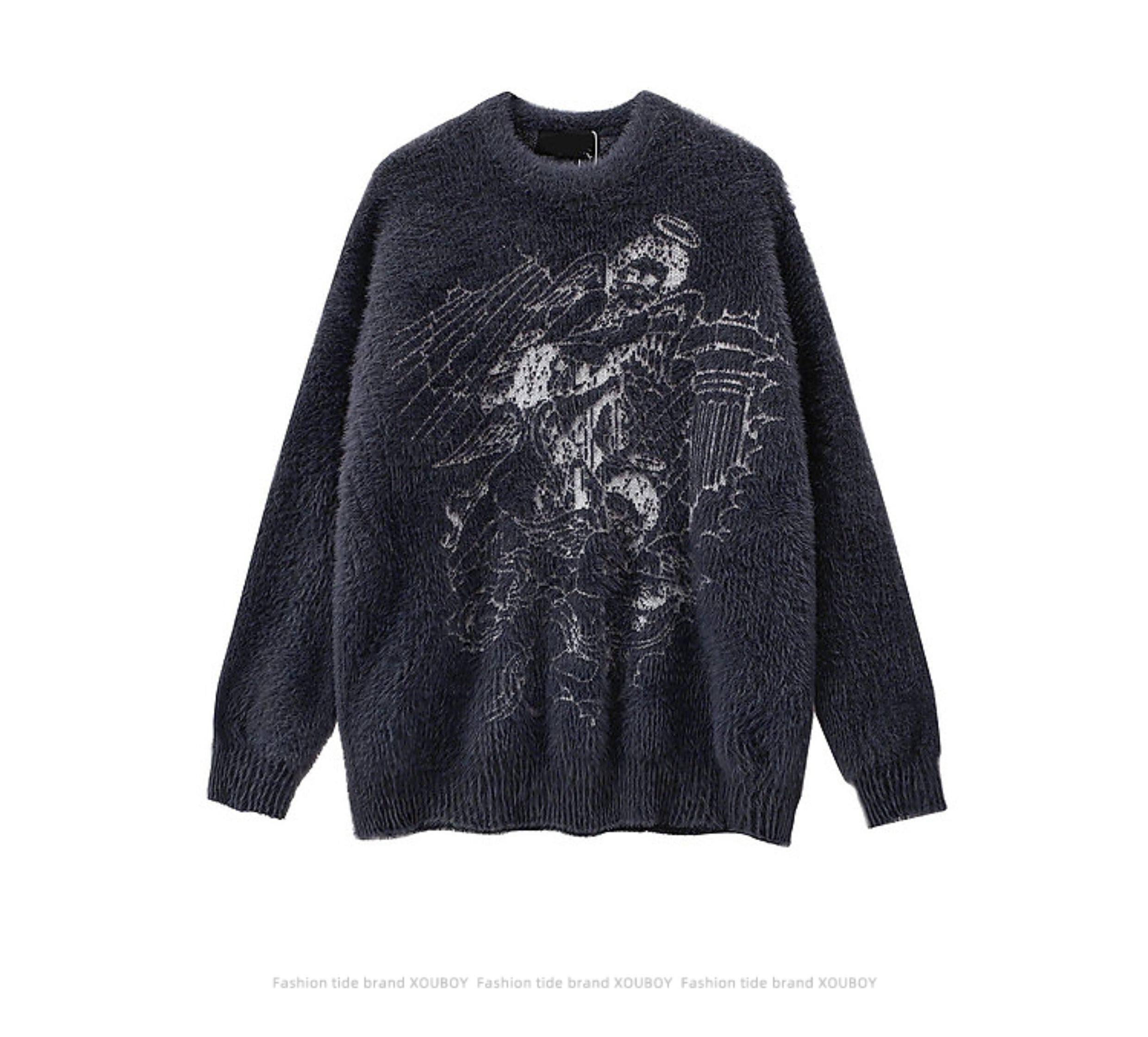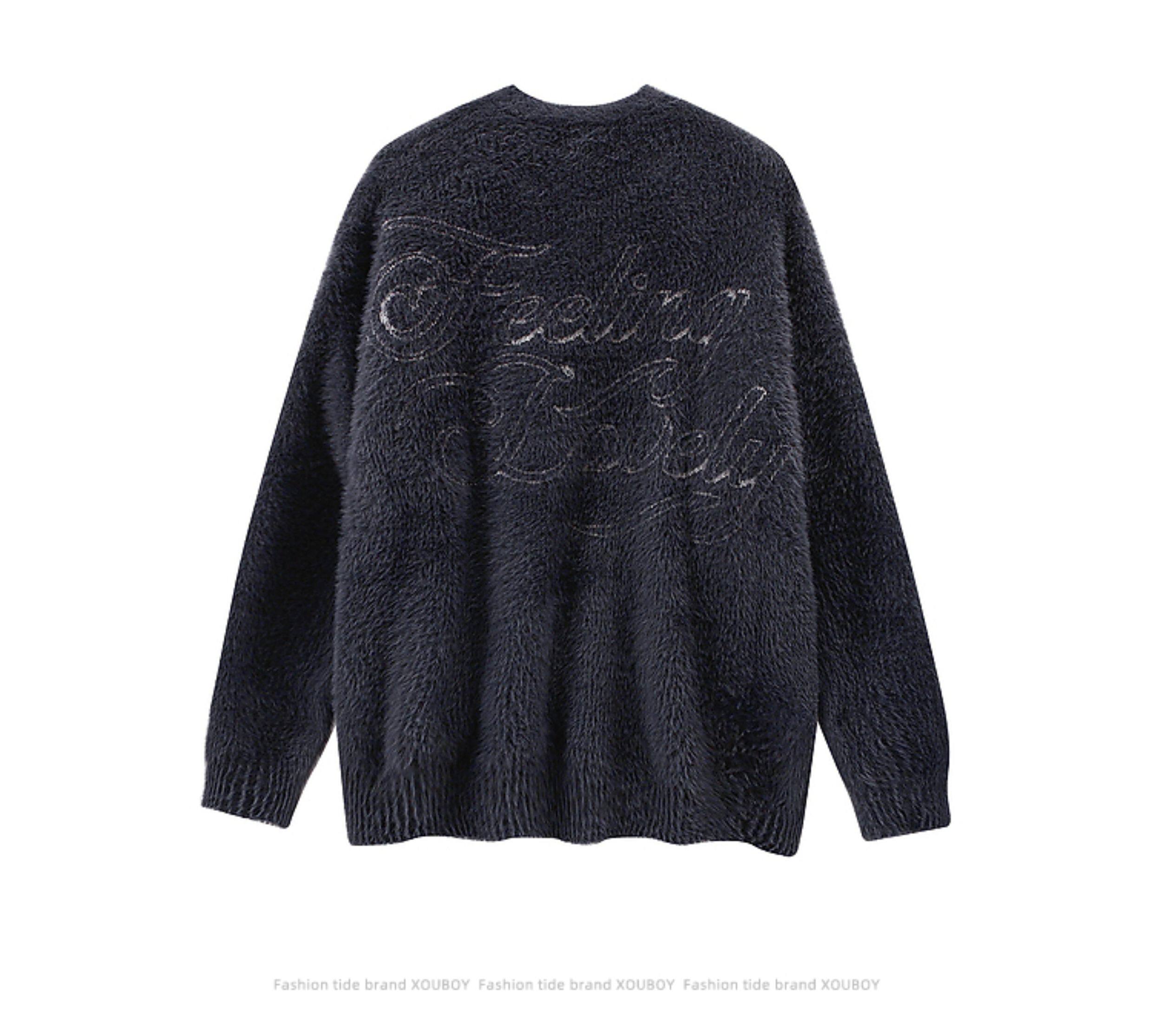 vintage美式復古創意提花圓領毛衣男女秋冬hiphop情侶長袖針織衫