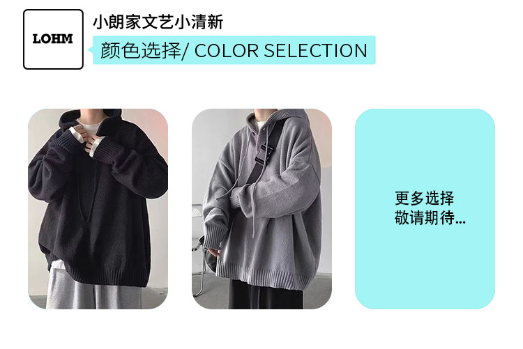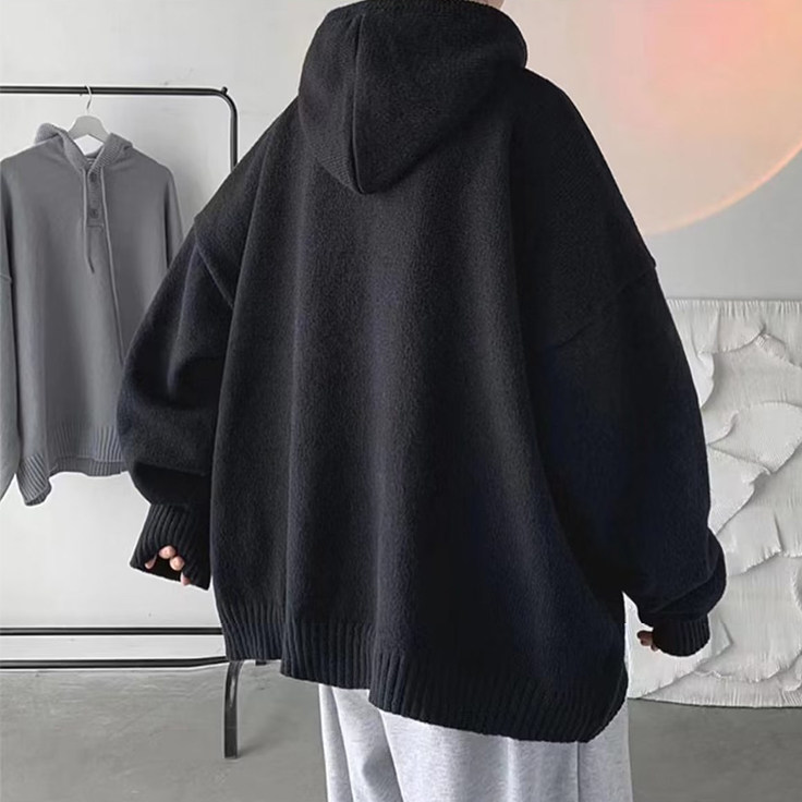 連帽毛衣男冬季寬松chic慵懶風復古針織衫青少年潮流保暖純色外套