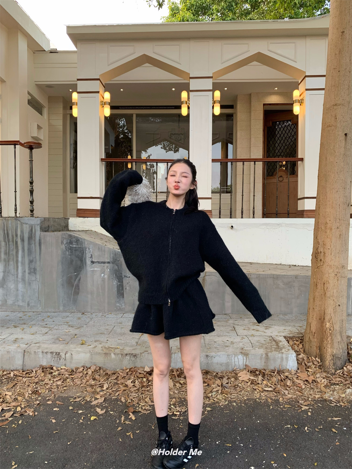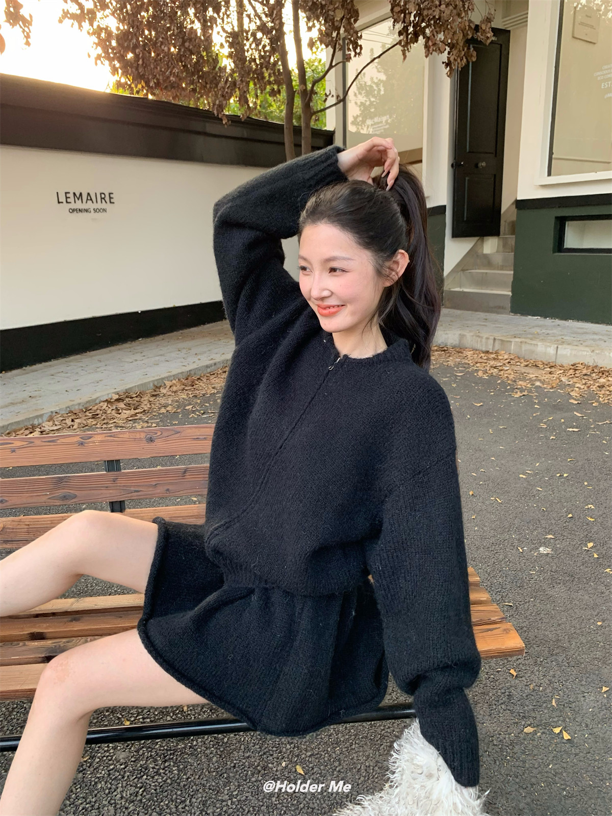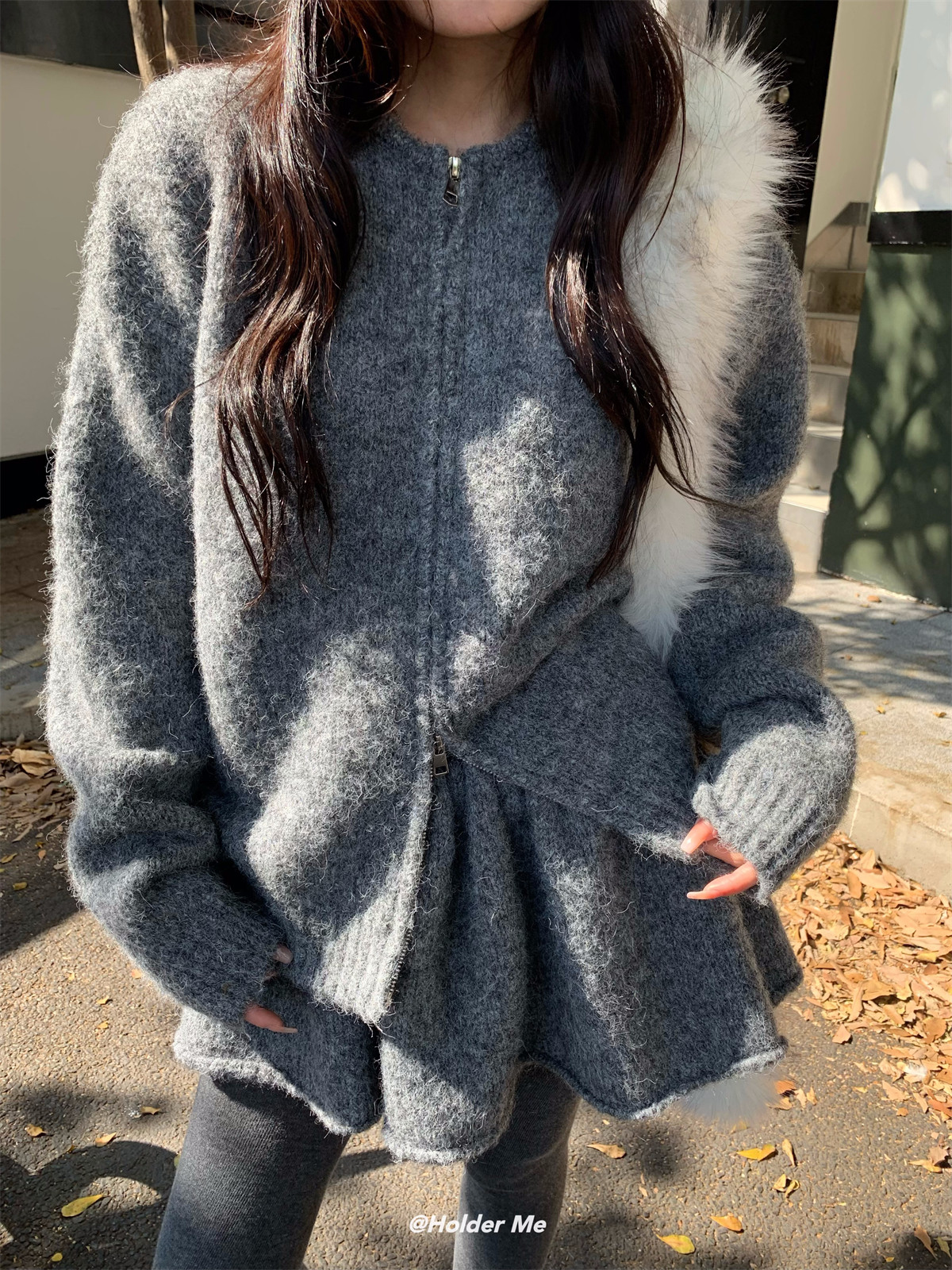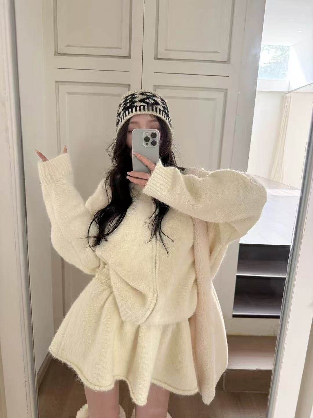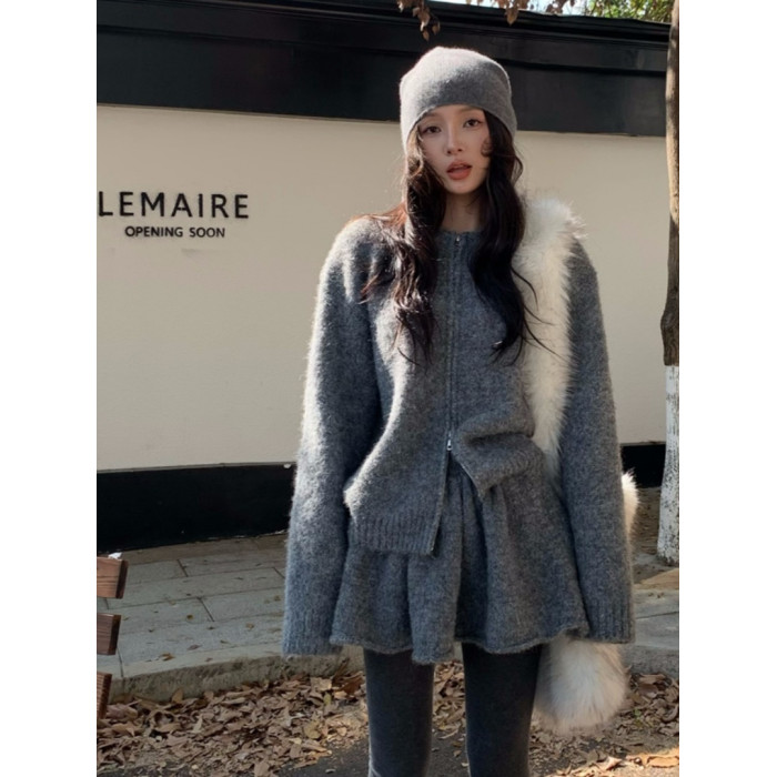 韓系高級感氣質軟糯拉鍊毛衣外套女秋冬季半身裙小個子時尚套裝