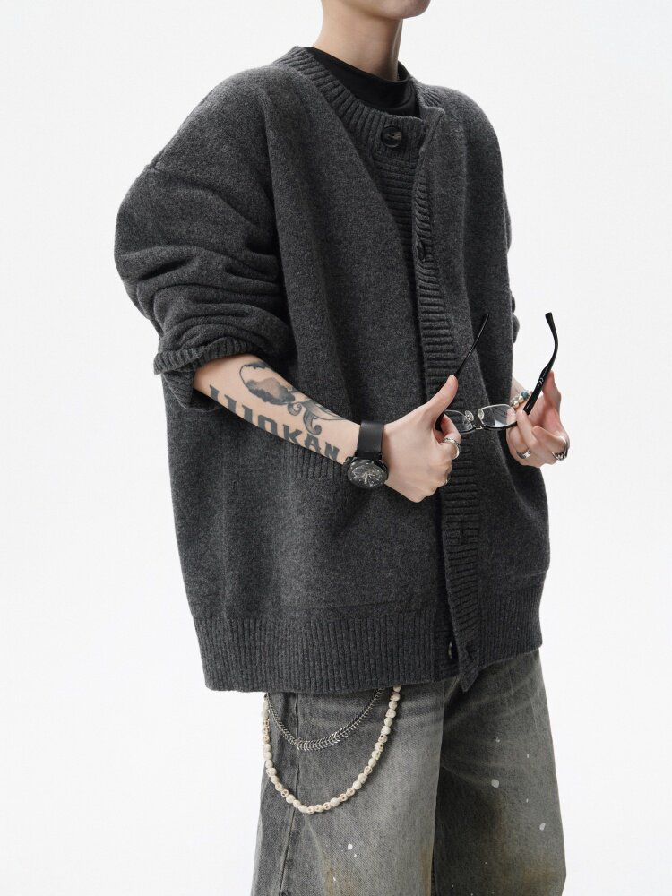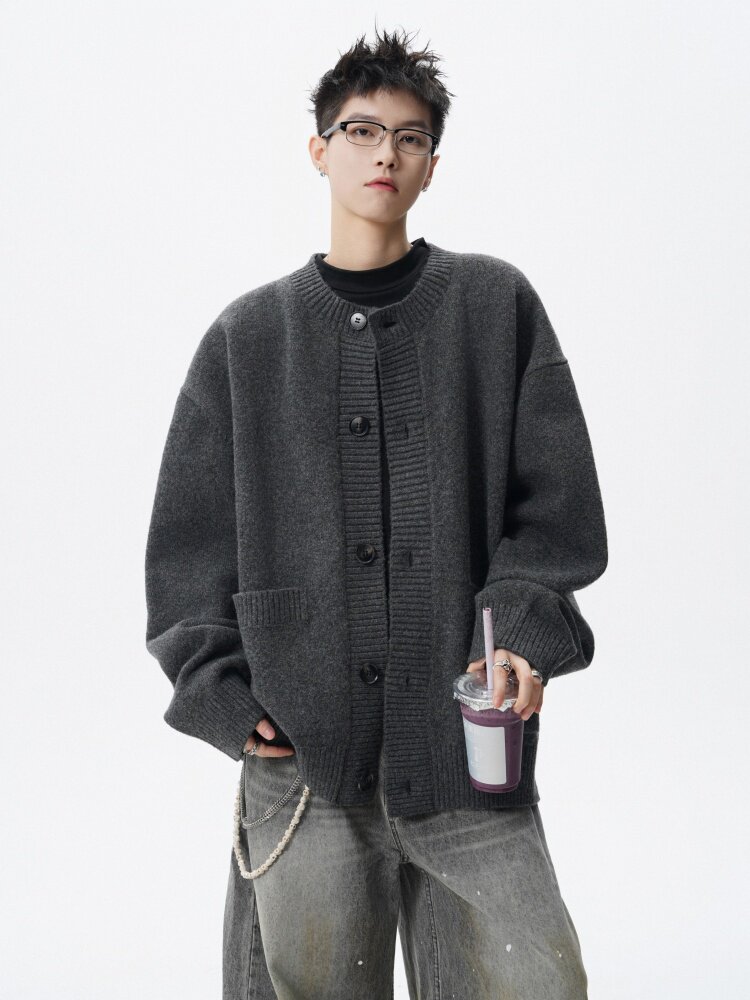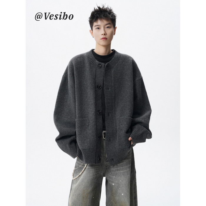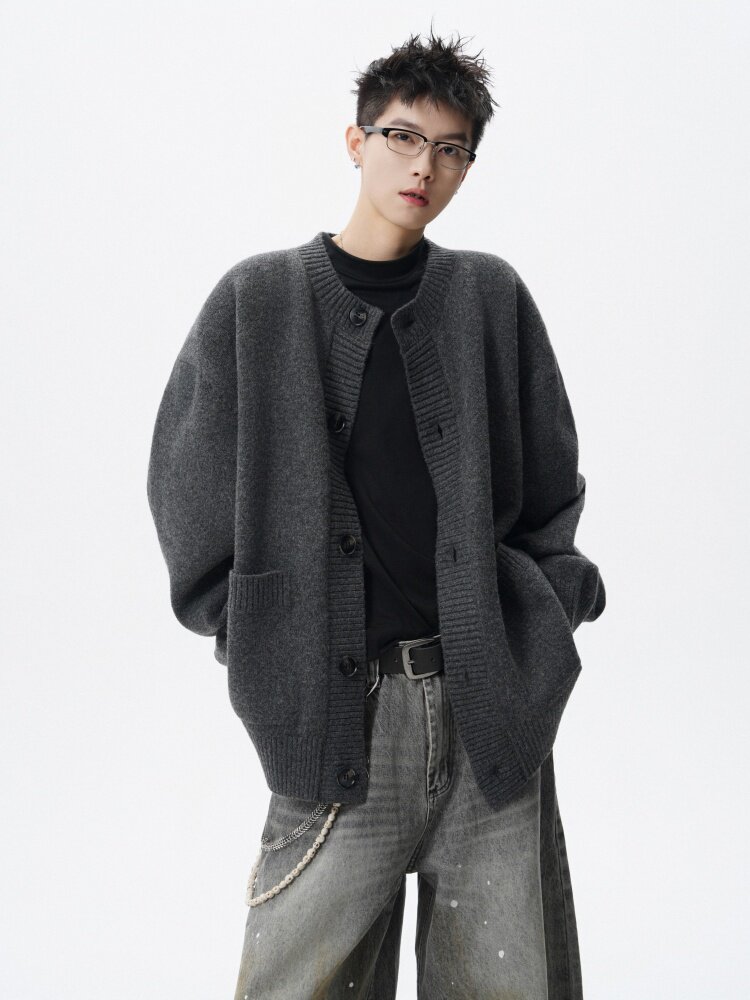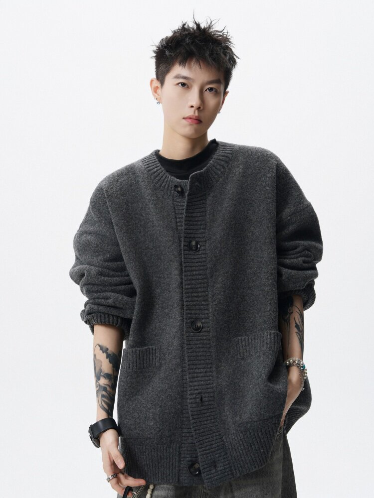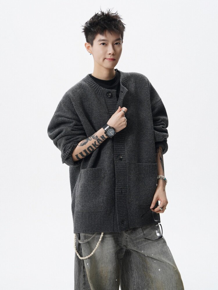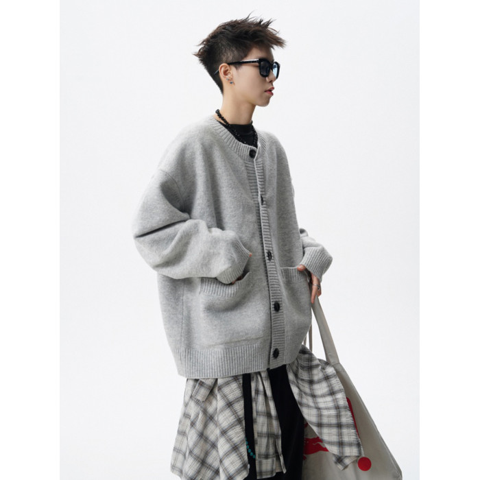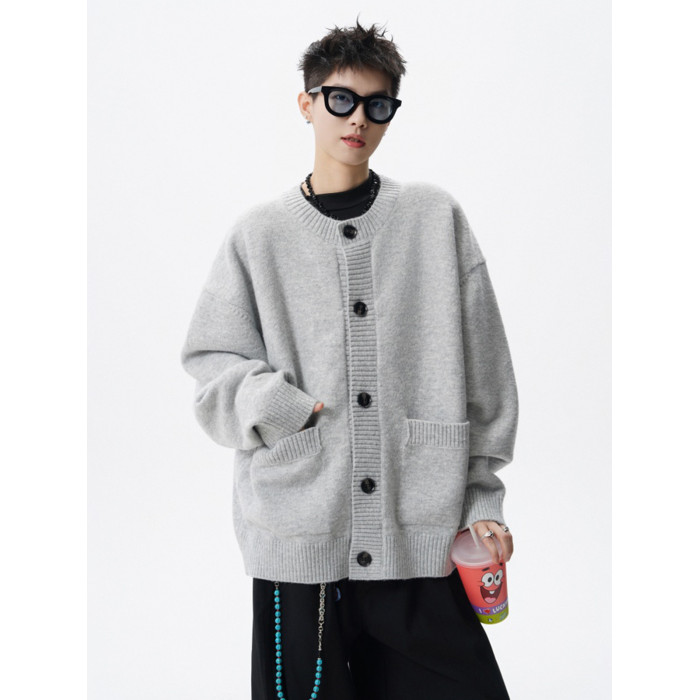 美式復古開衫毛衣男冬季潮牌慵懶風情侶針織衫高街大口袋休閒外套