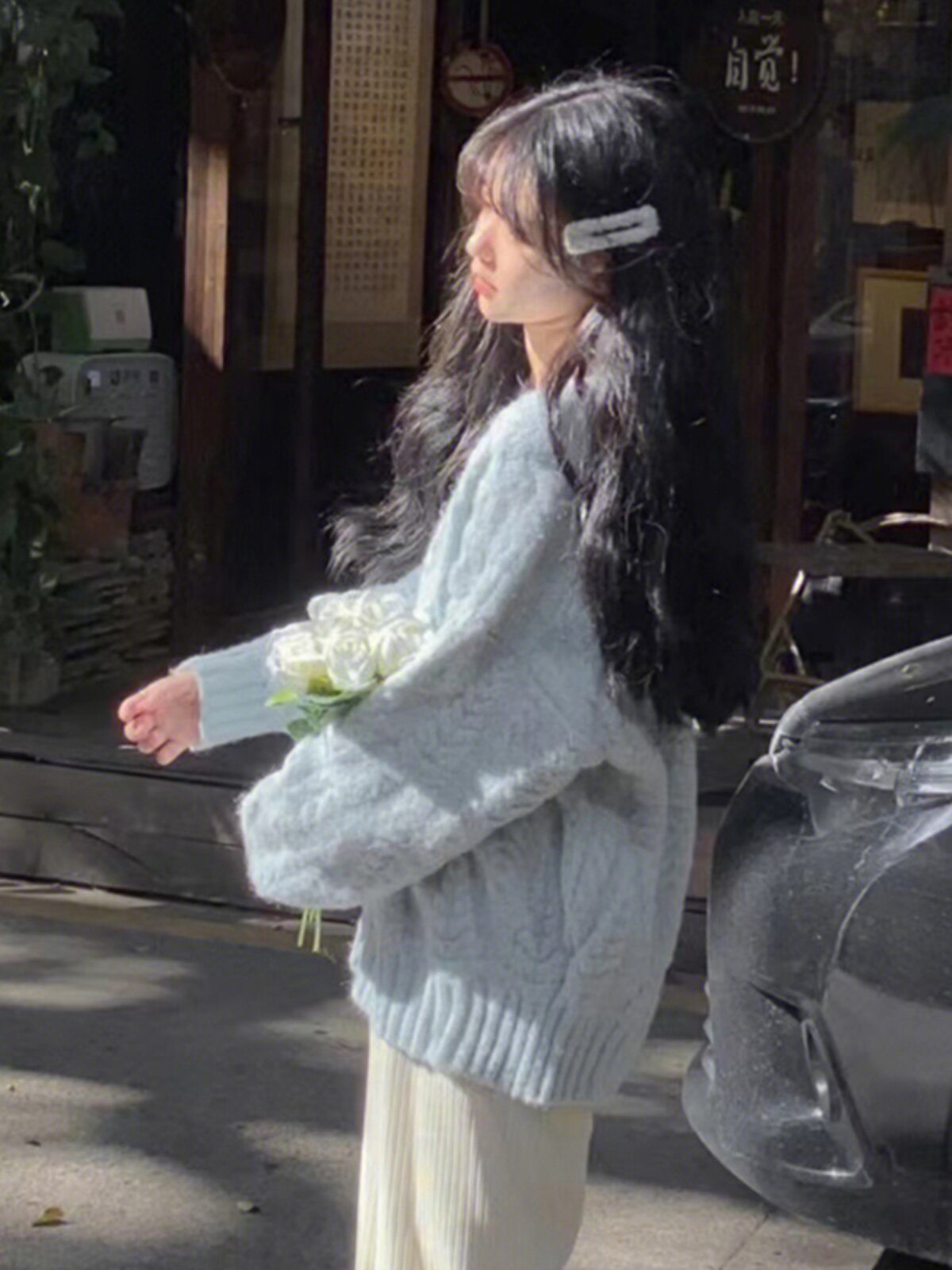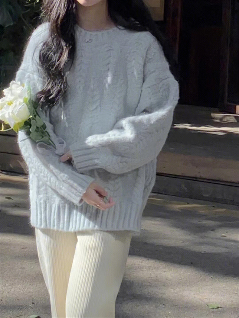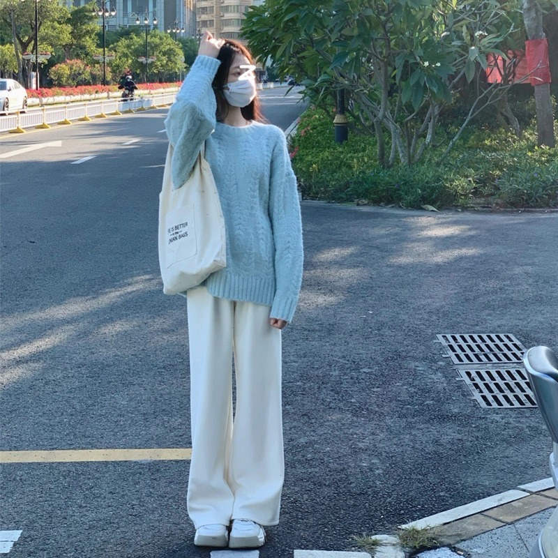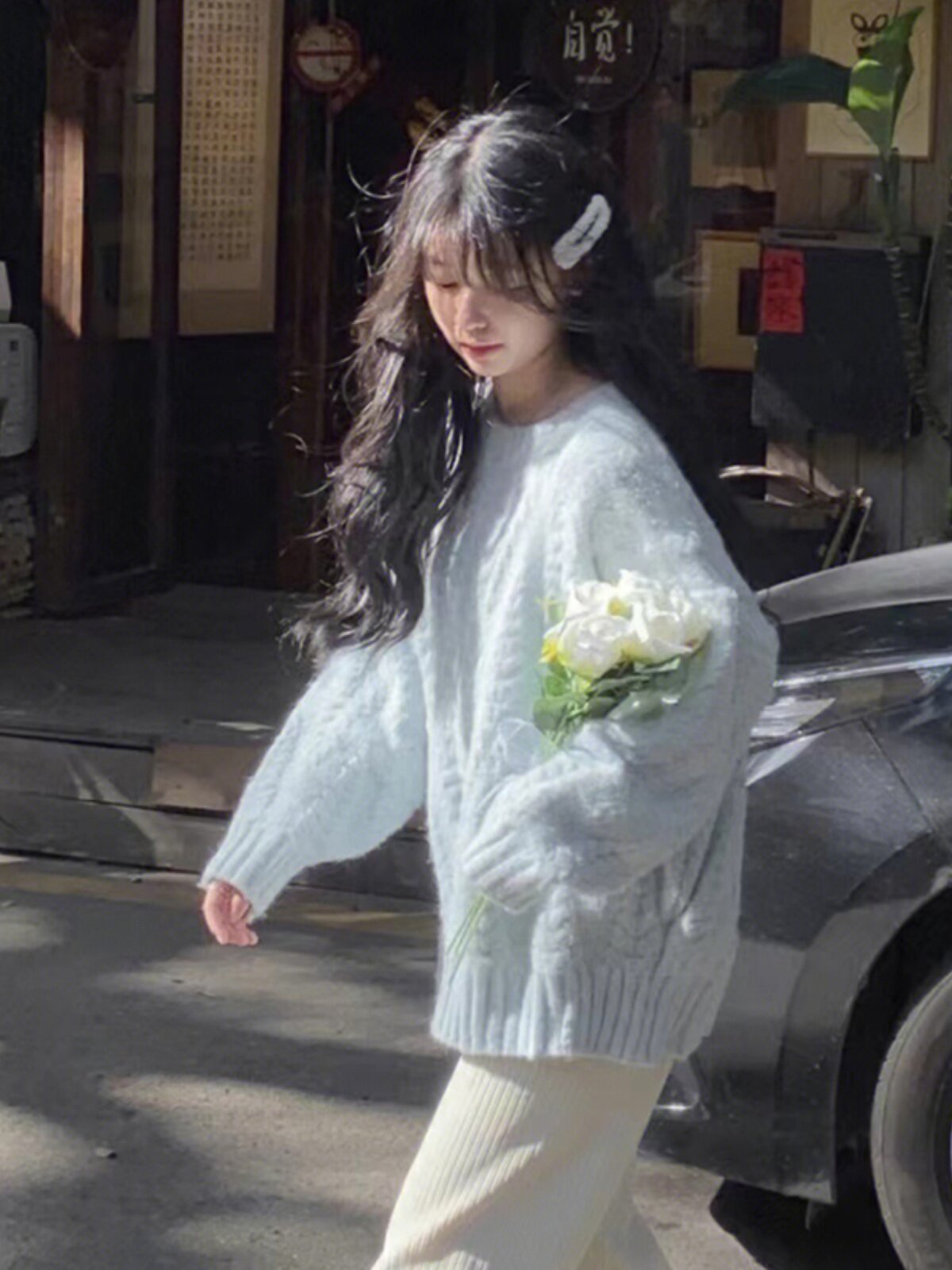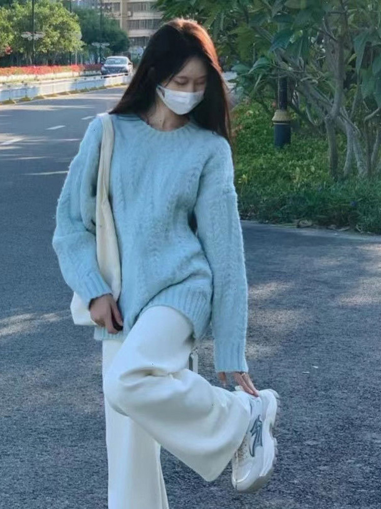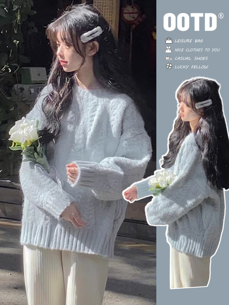 軟糯溫柔風毛衣女秋冬慵懶風軟奶藍高級感女士打底衫學生針織上衣