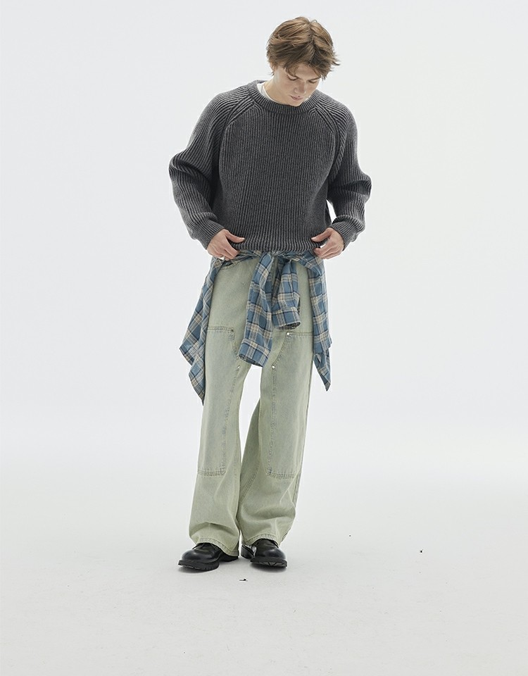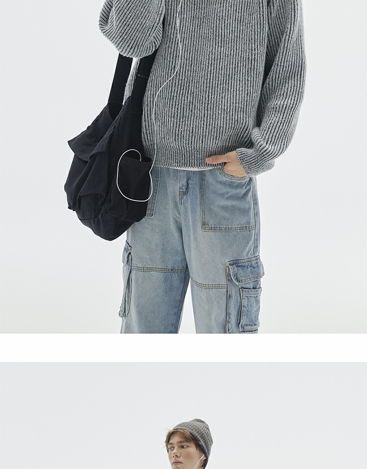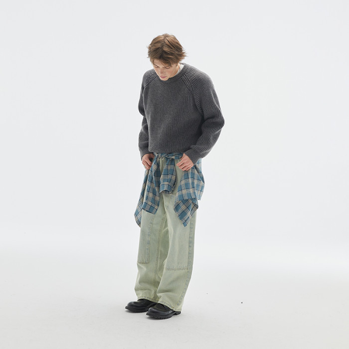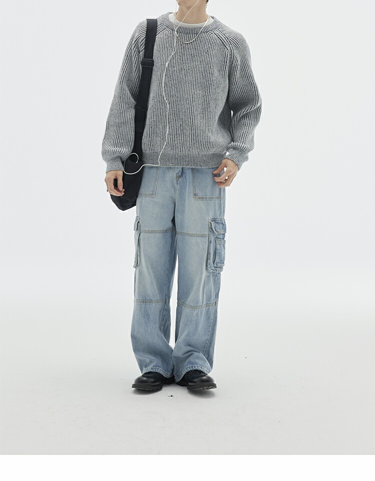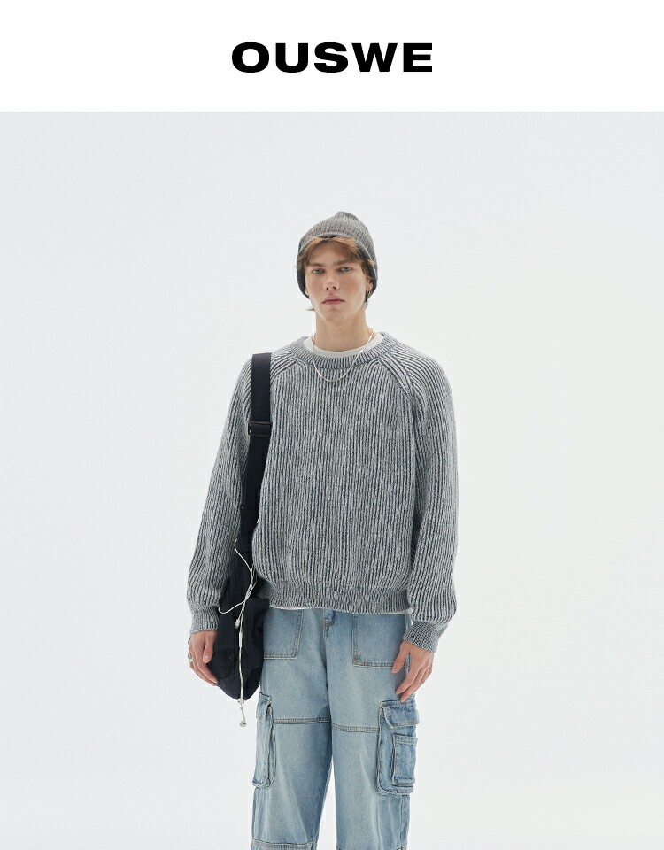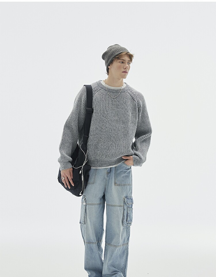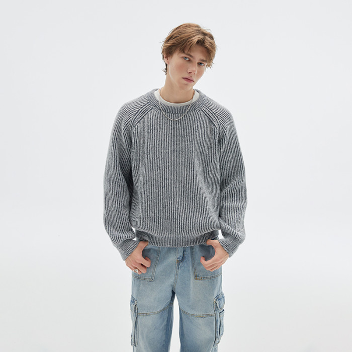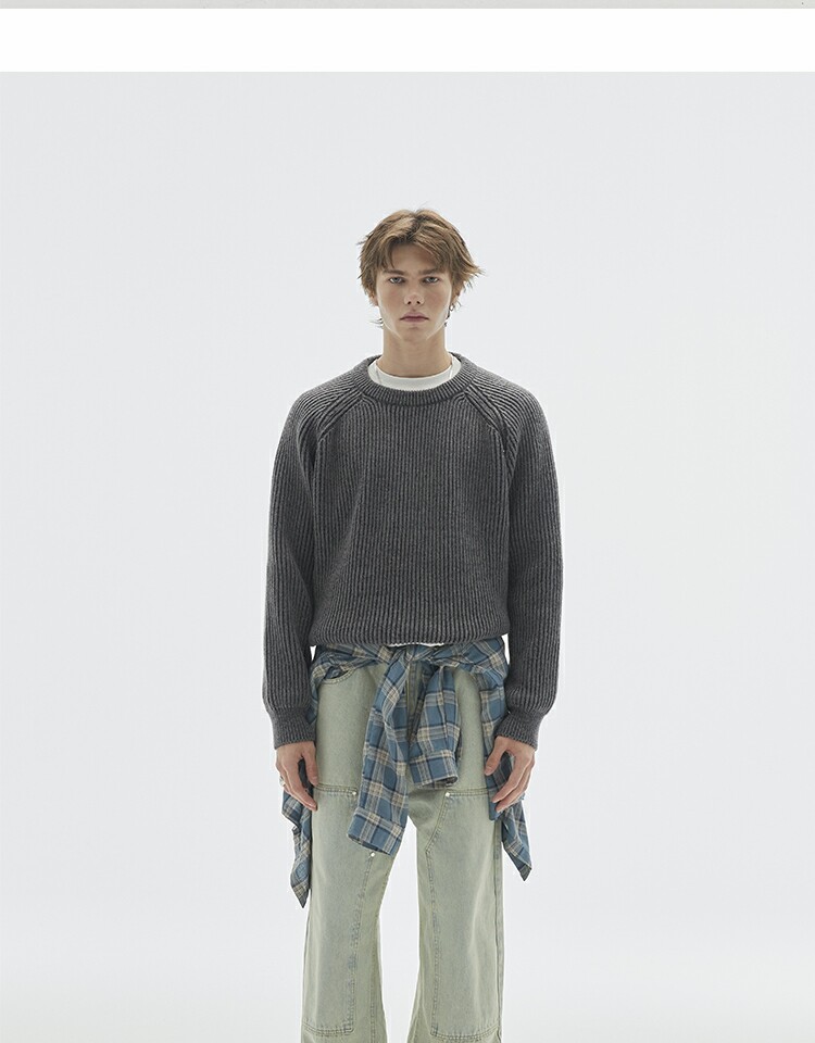 美式街頭做舊條紋短款毛衣慵懶高級感男寬松潮流針織衫圓領線衫潮