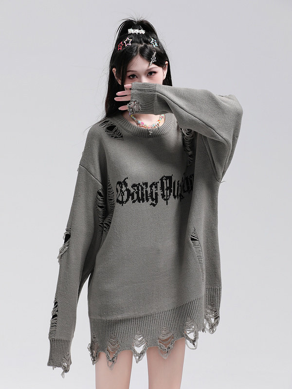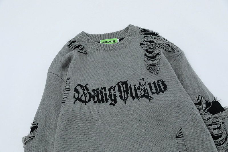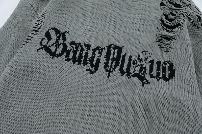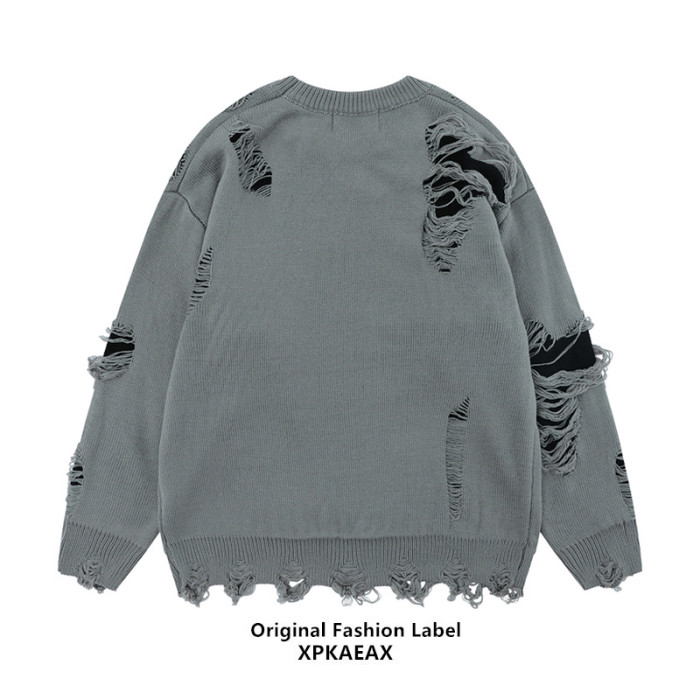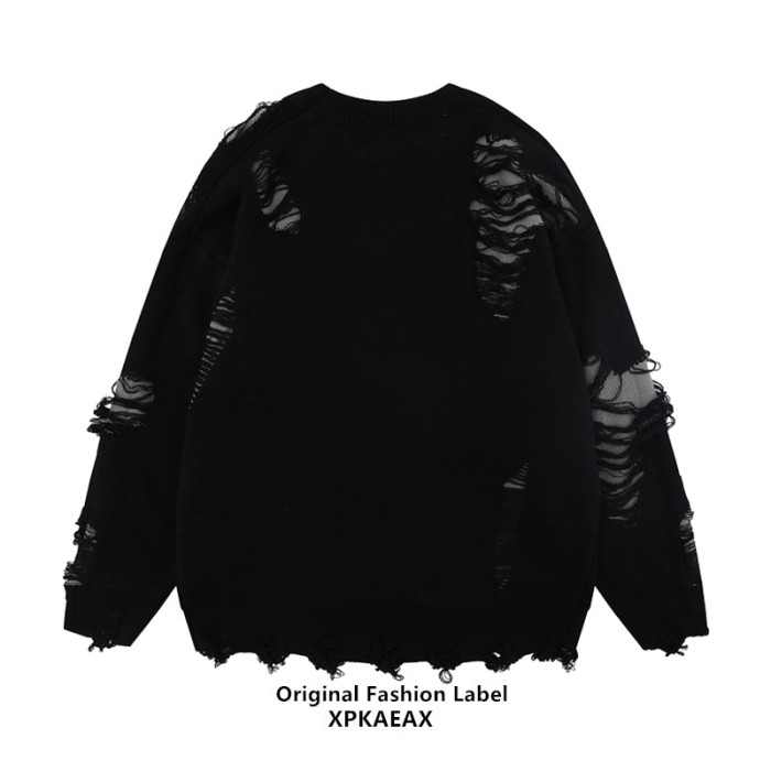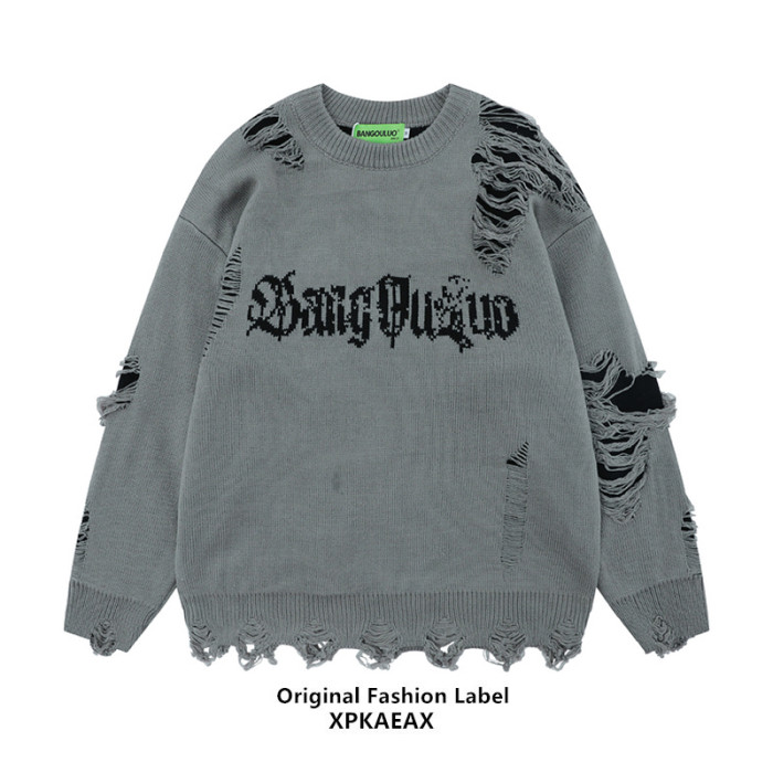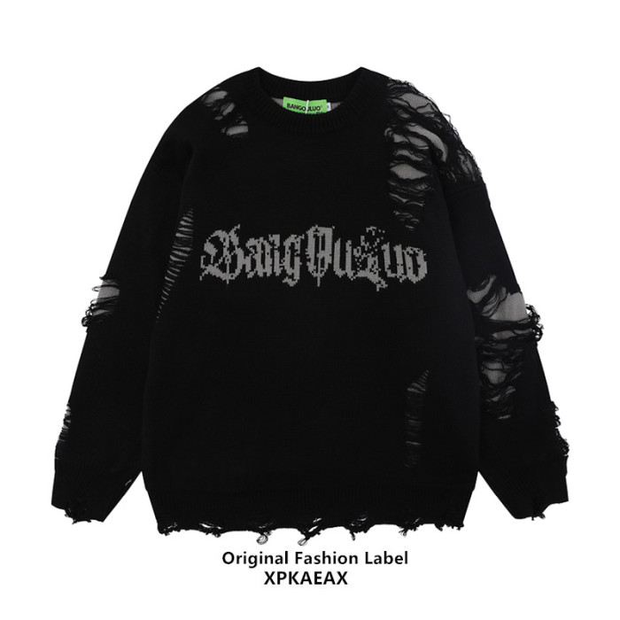 XPKAEAX原創潮牌小衆設計感破洞毛邊針織衫字母提花毛衣衛衣秋裝