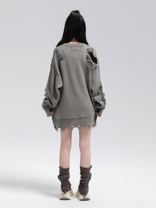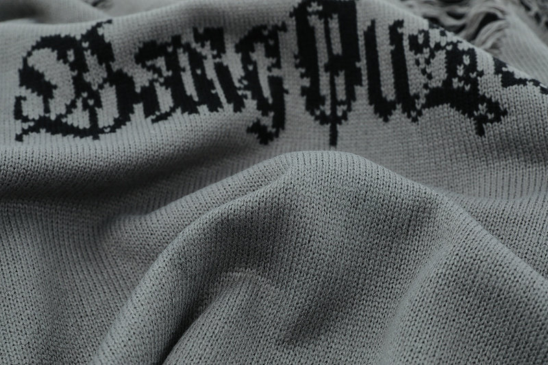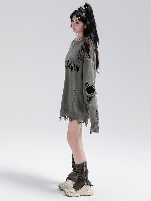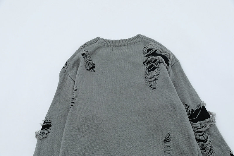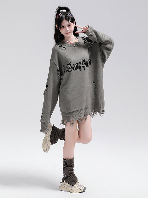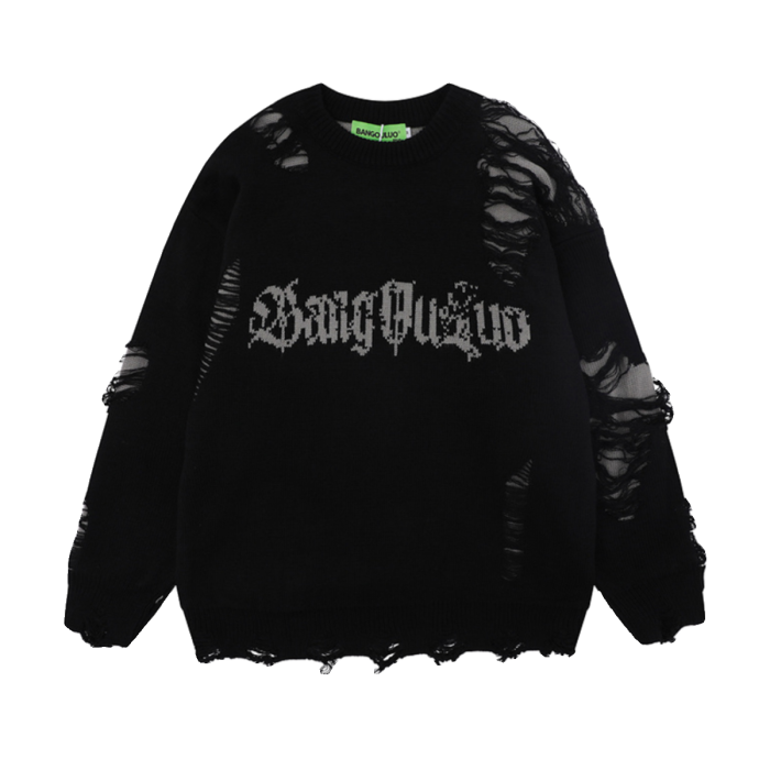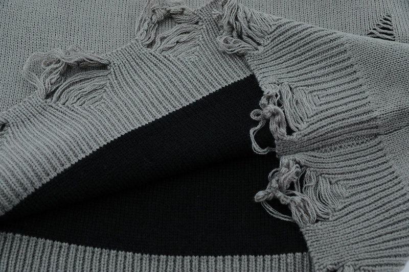 XPKAEAX原創潮牌小衆設計感破洞毛邊針織衫字母提花毛衣衛衣秋裝