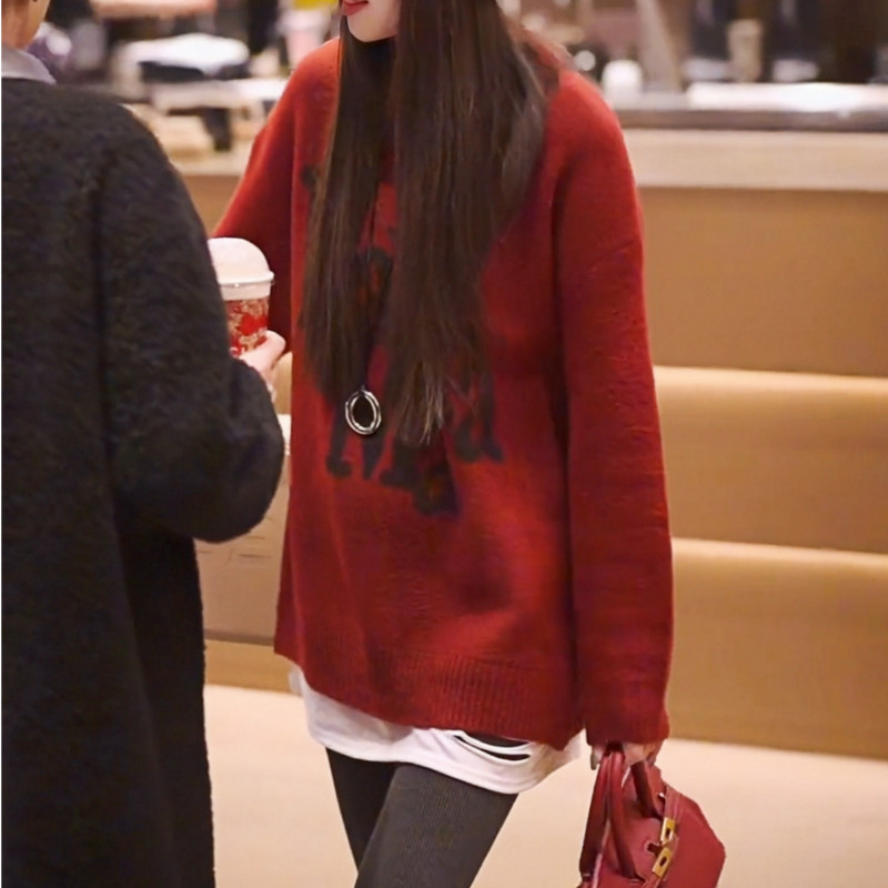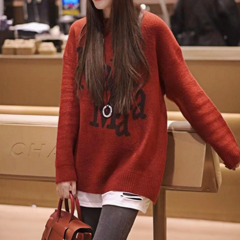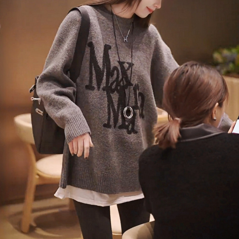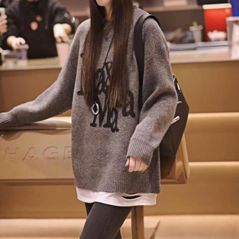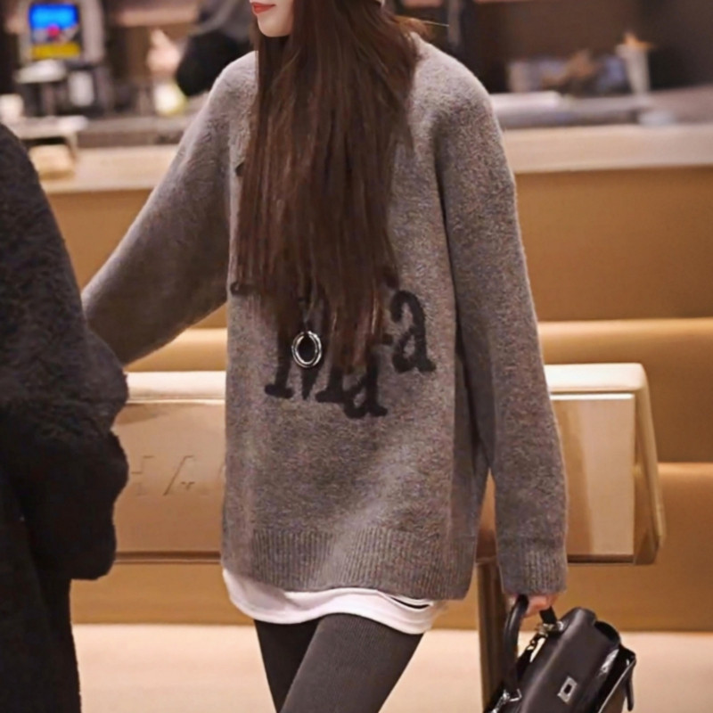 中長款灰色毛衣女款秋冬2025新款大碼胖MM寬松洋氣獨特針織上衣
