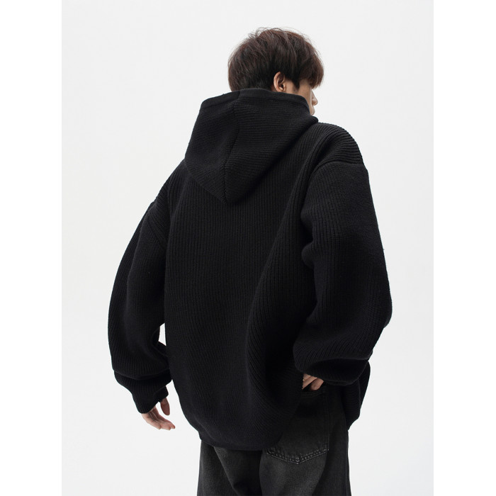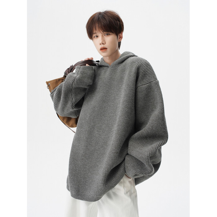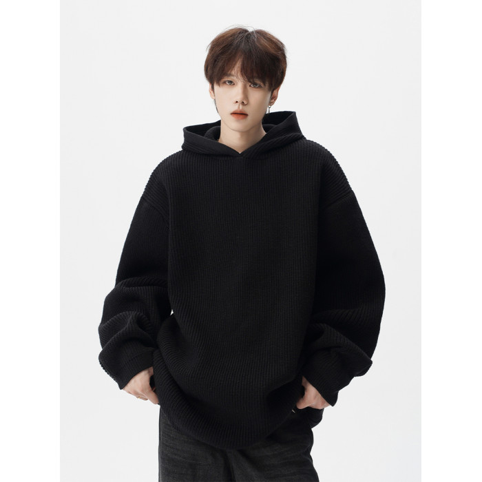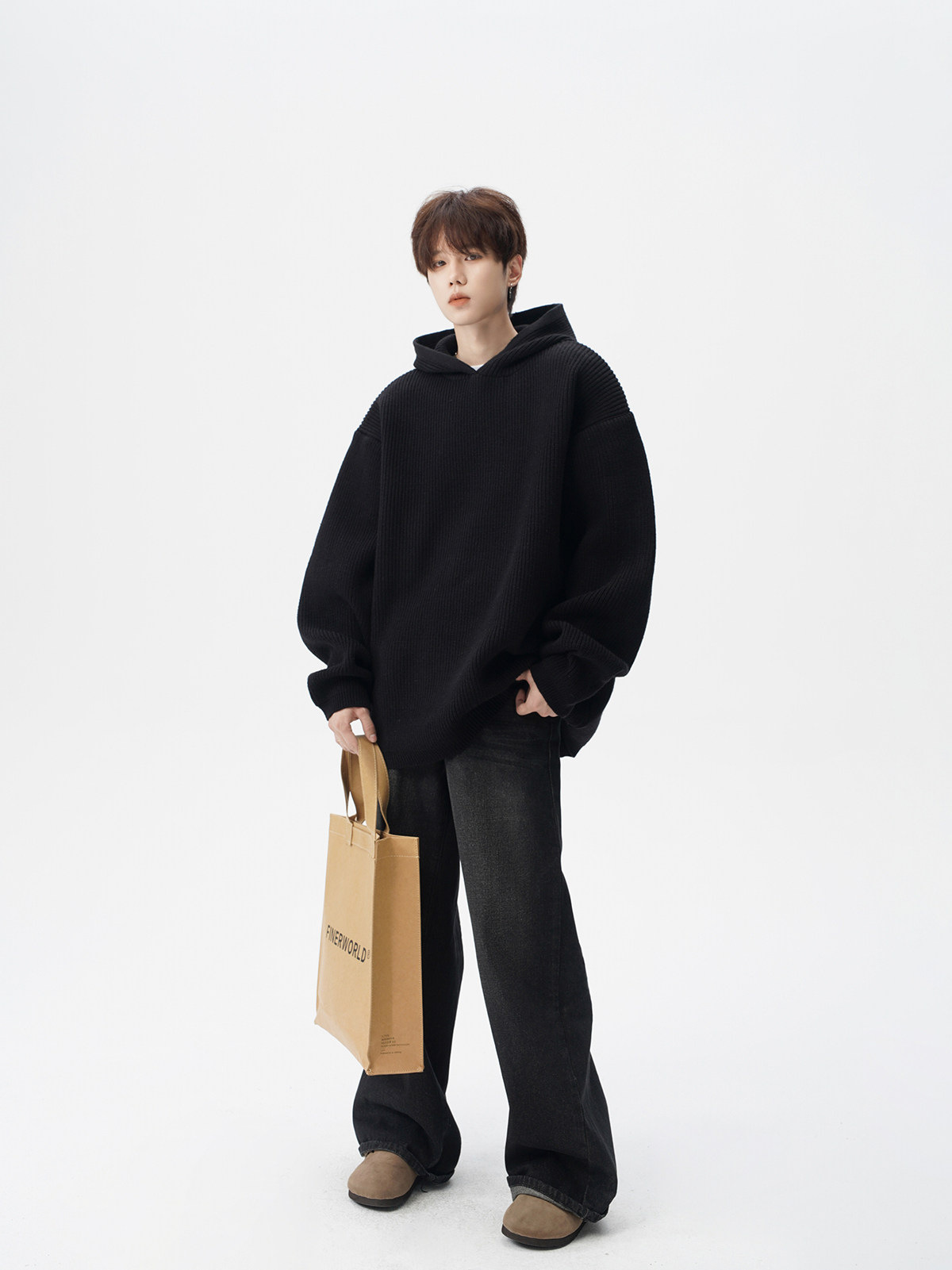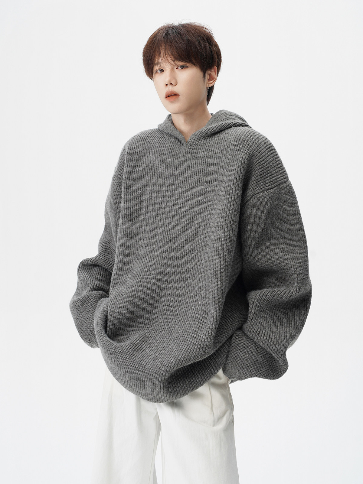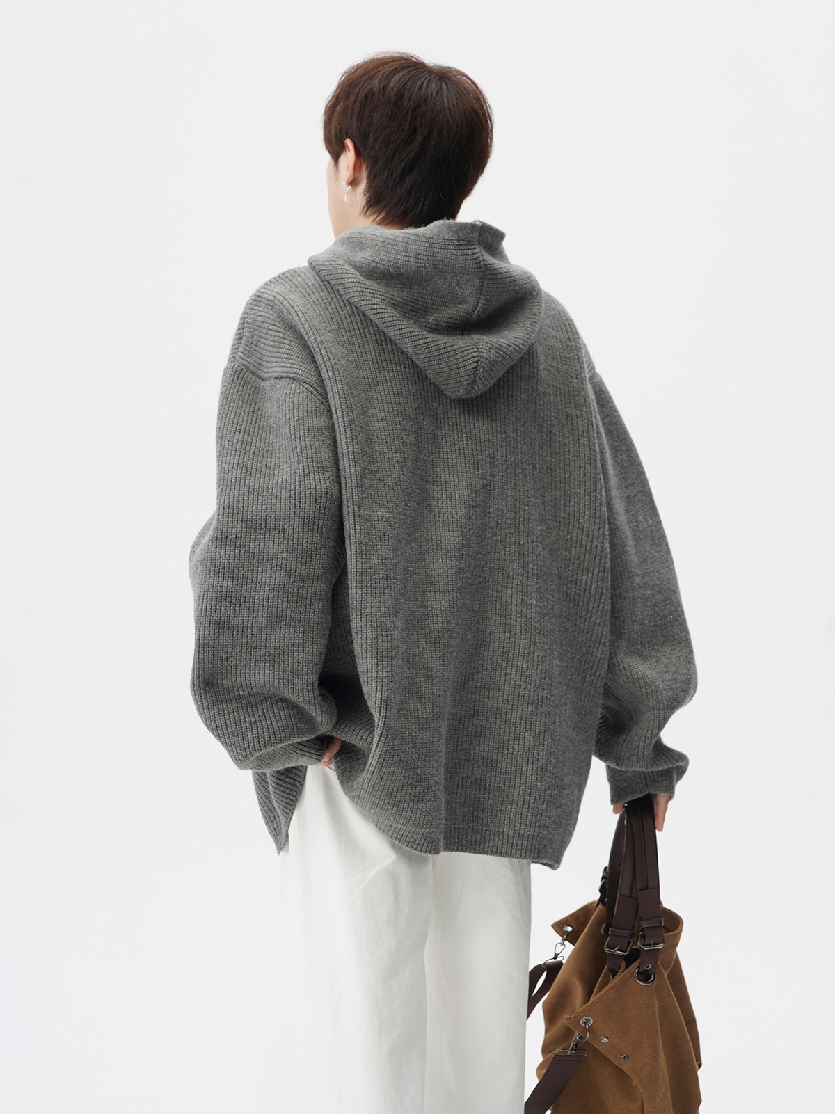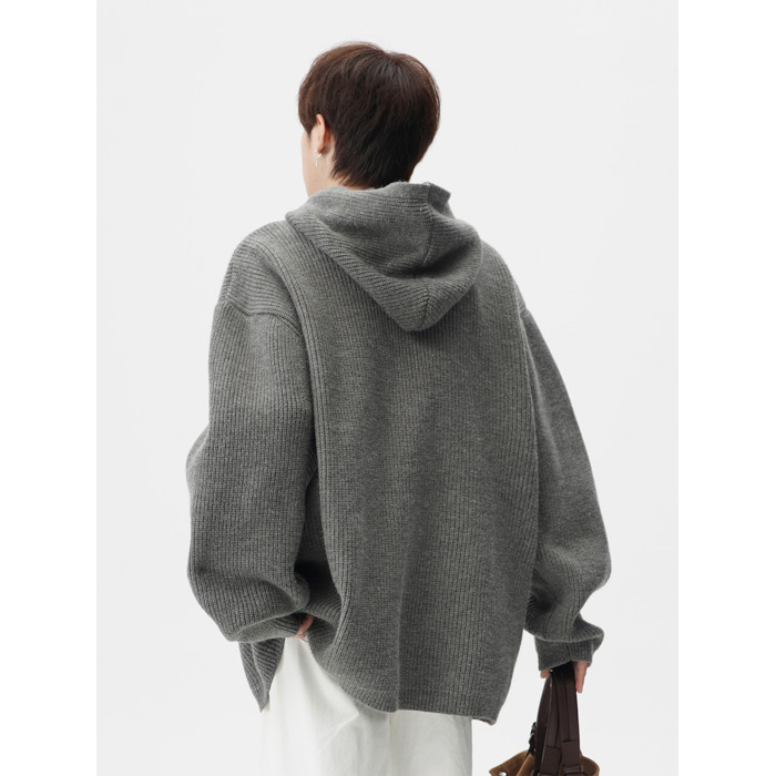 美式復古連帽毛衣男女冬季潮牌慵懶風連帽針織衫寬松加厚休閒外套