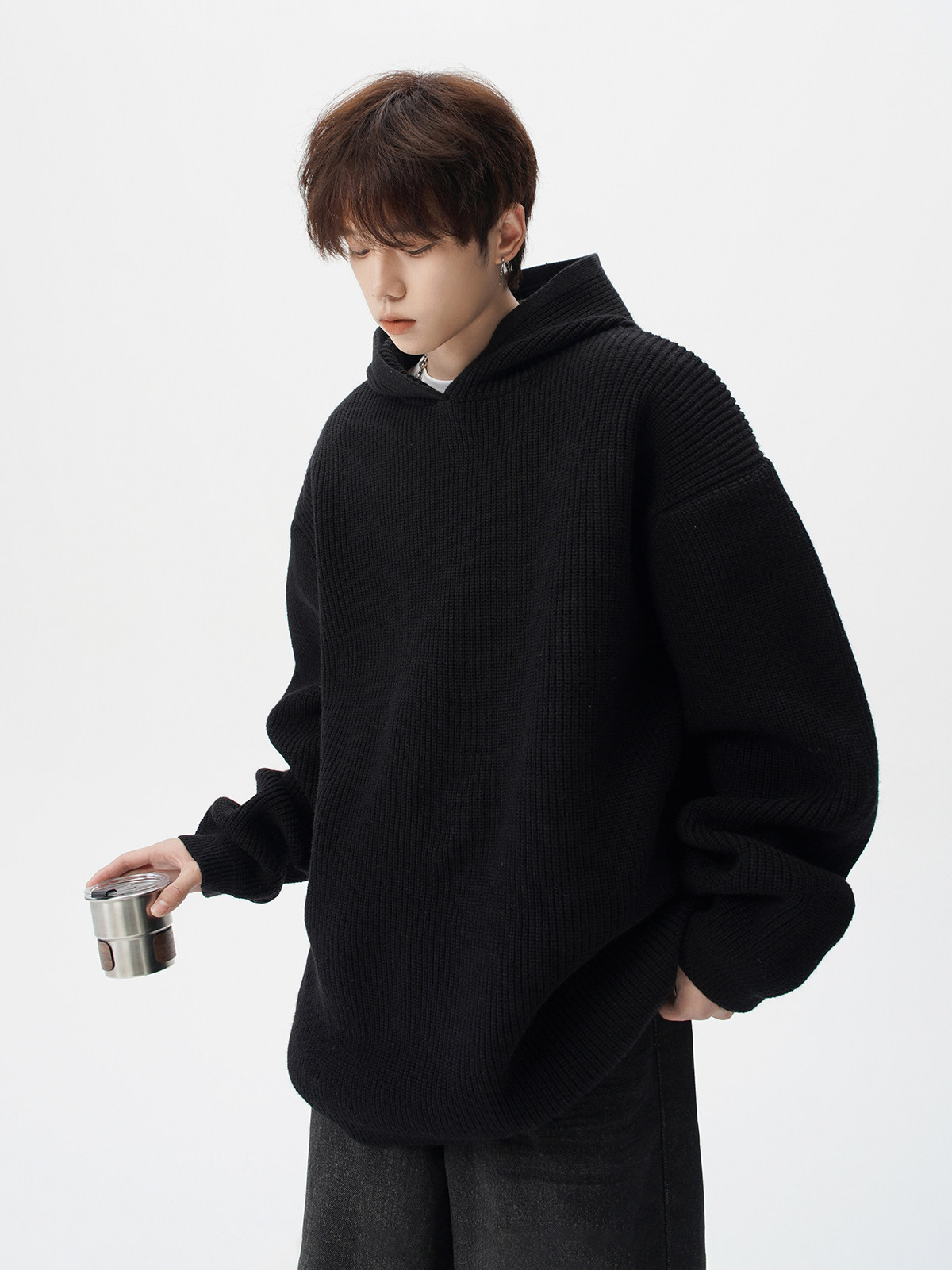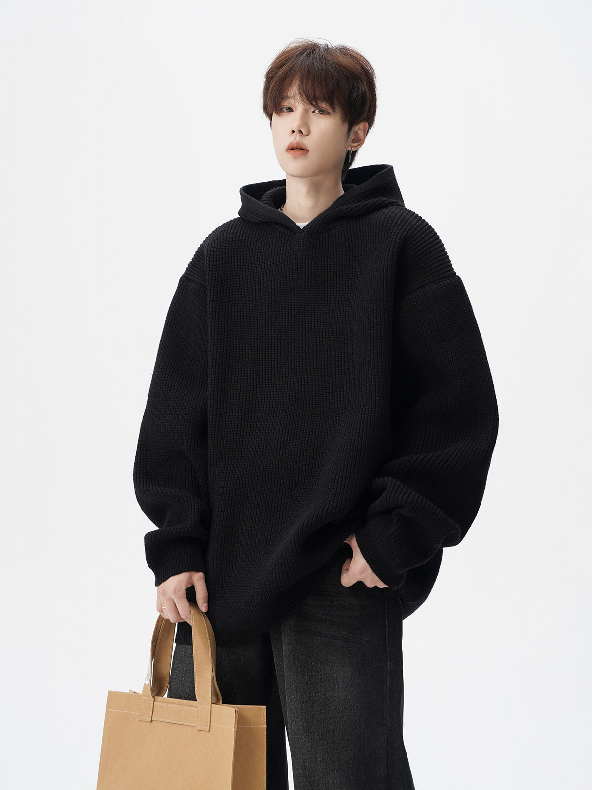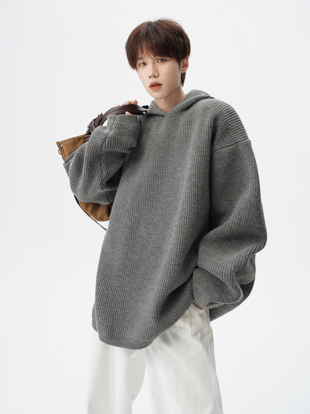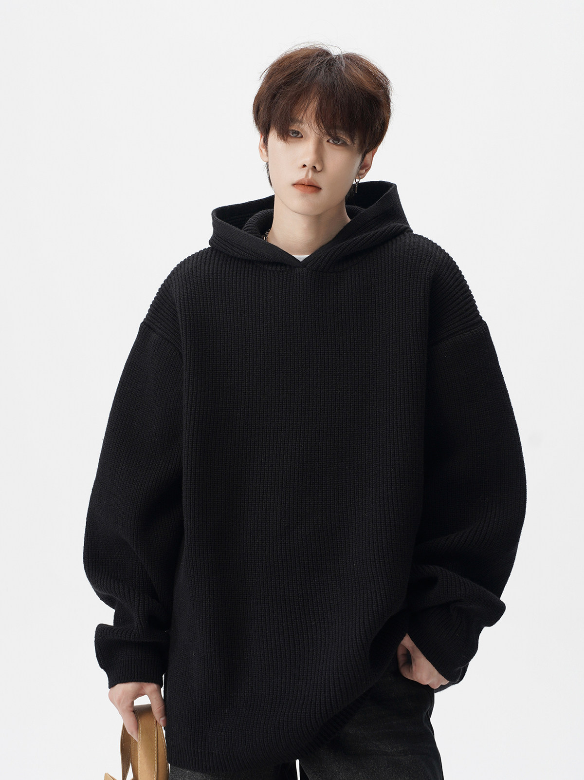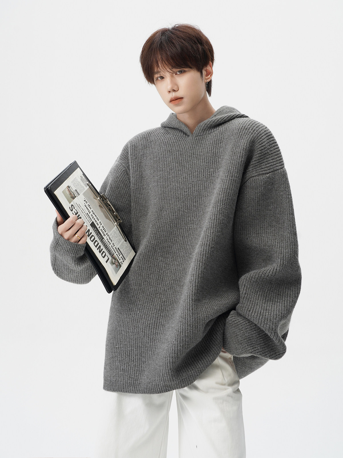 美式復古連帽毛衣男女冬季潮牌慵懶風連帽針織衫寬松加厚休閒外套