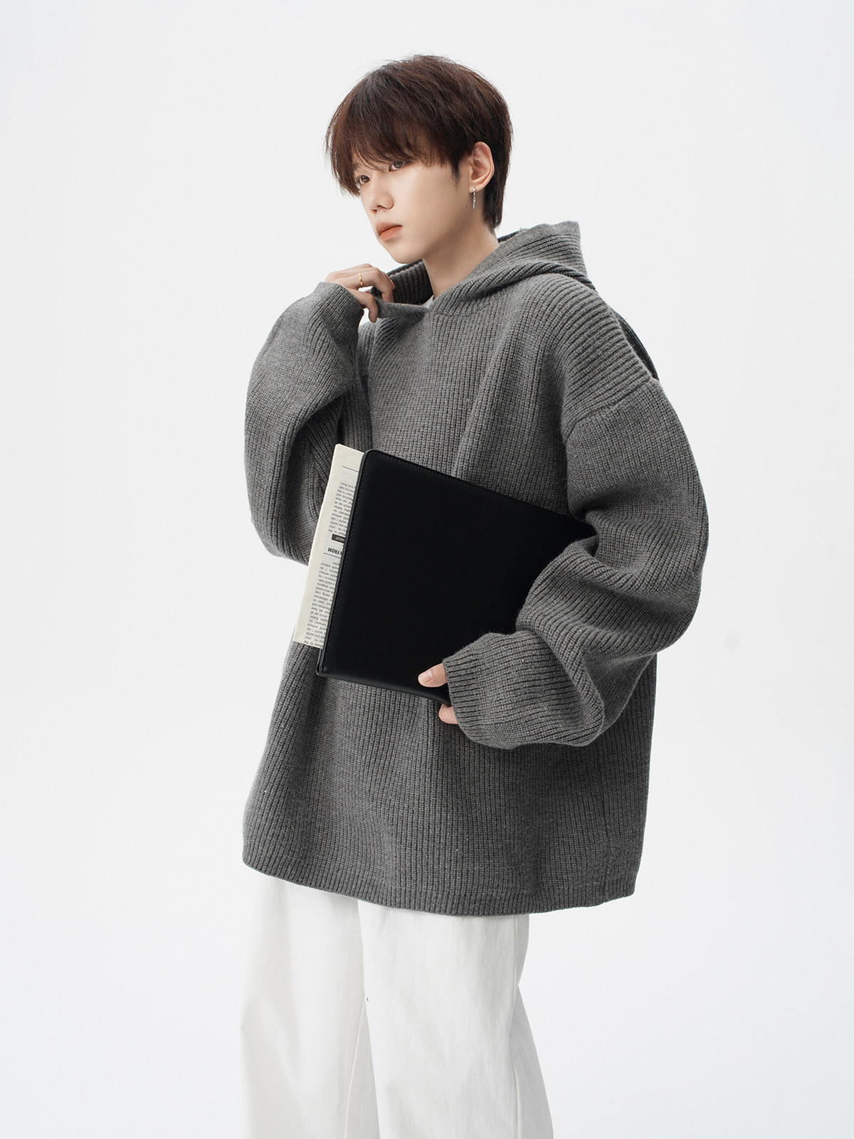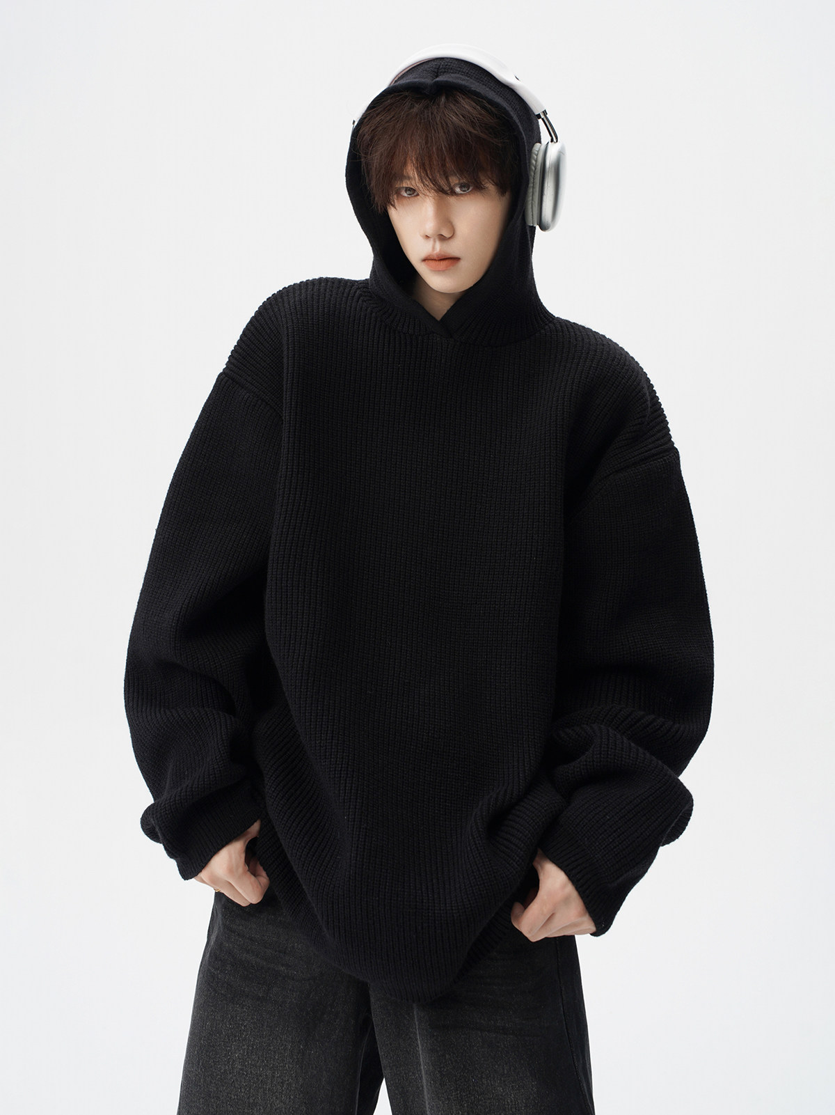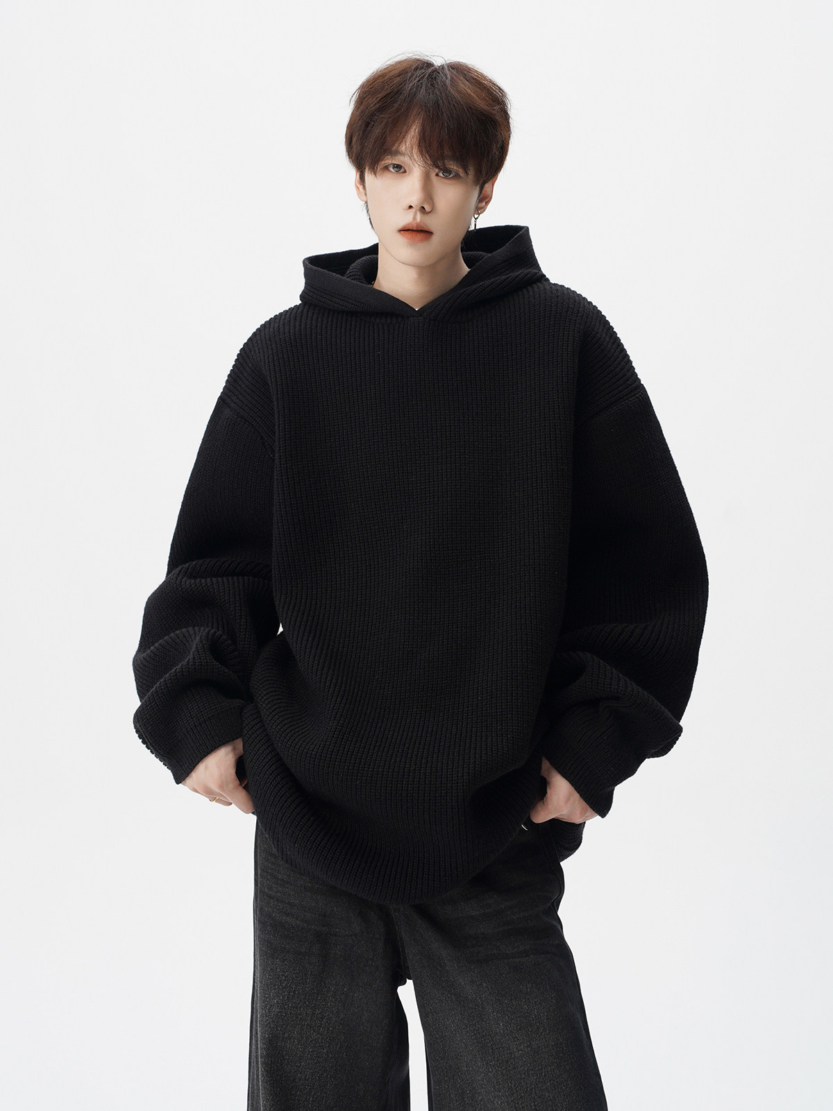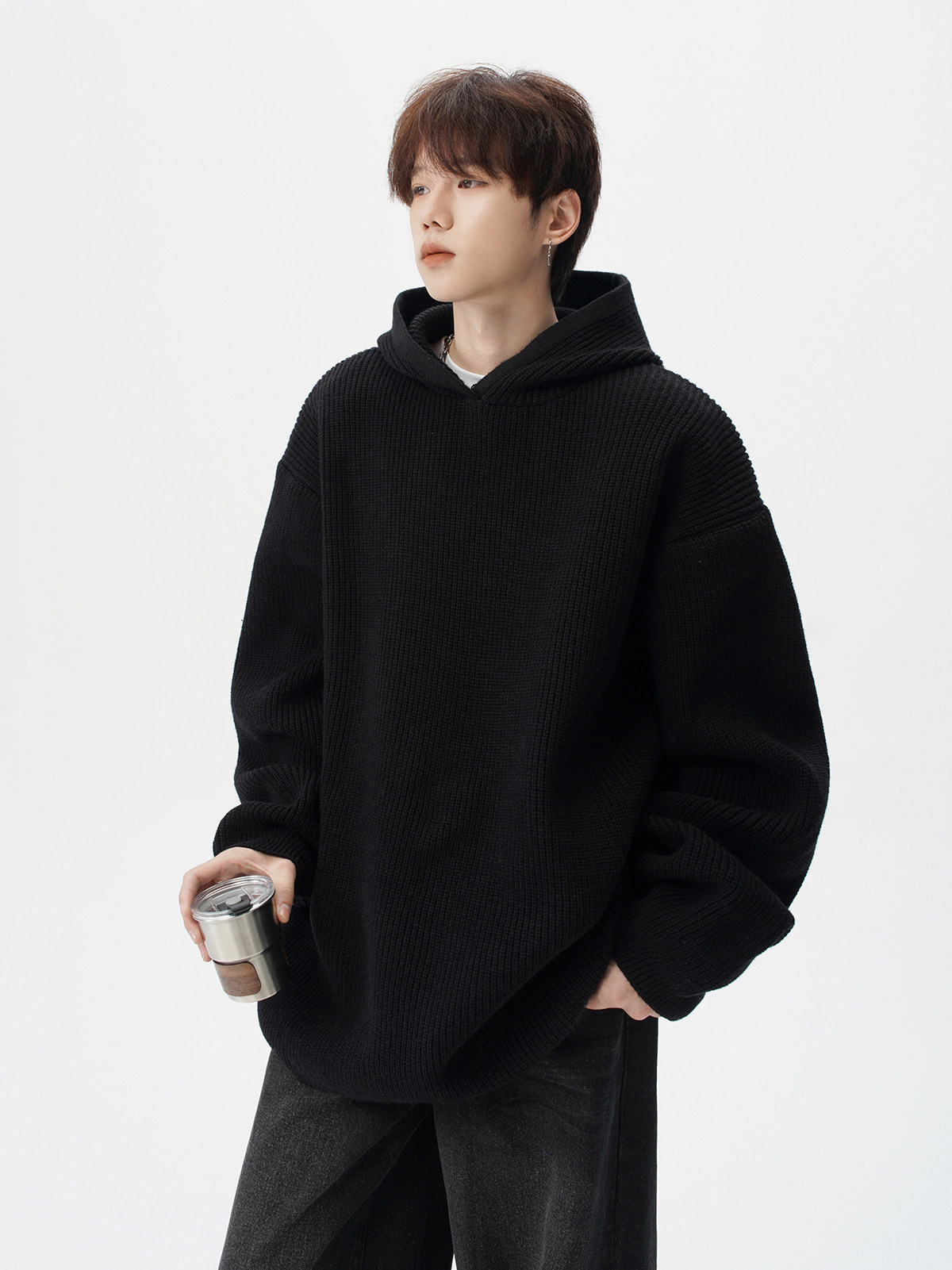 美式復古連帽毛衣男女冬季潮牌慵懶風連帽針織衫寬松加厚休閒外套