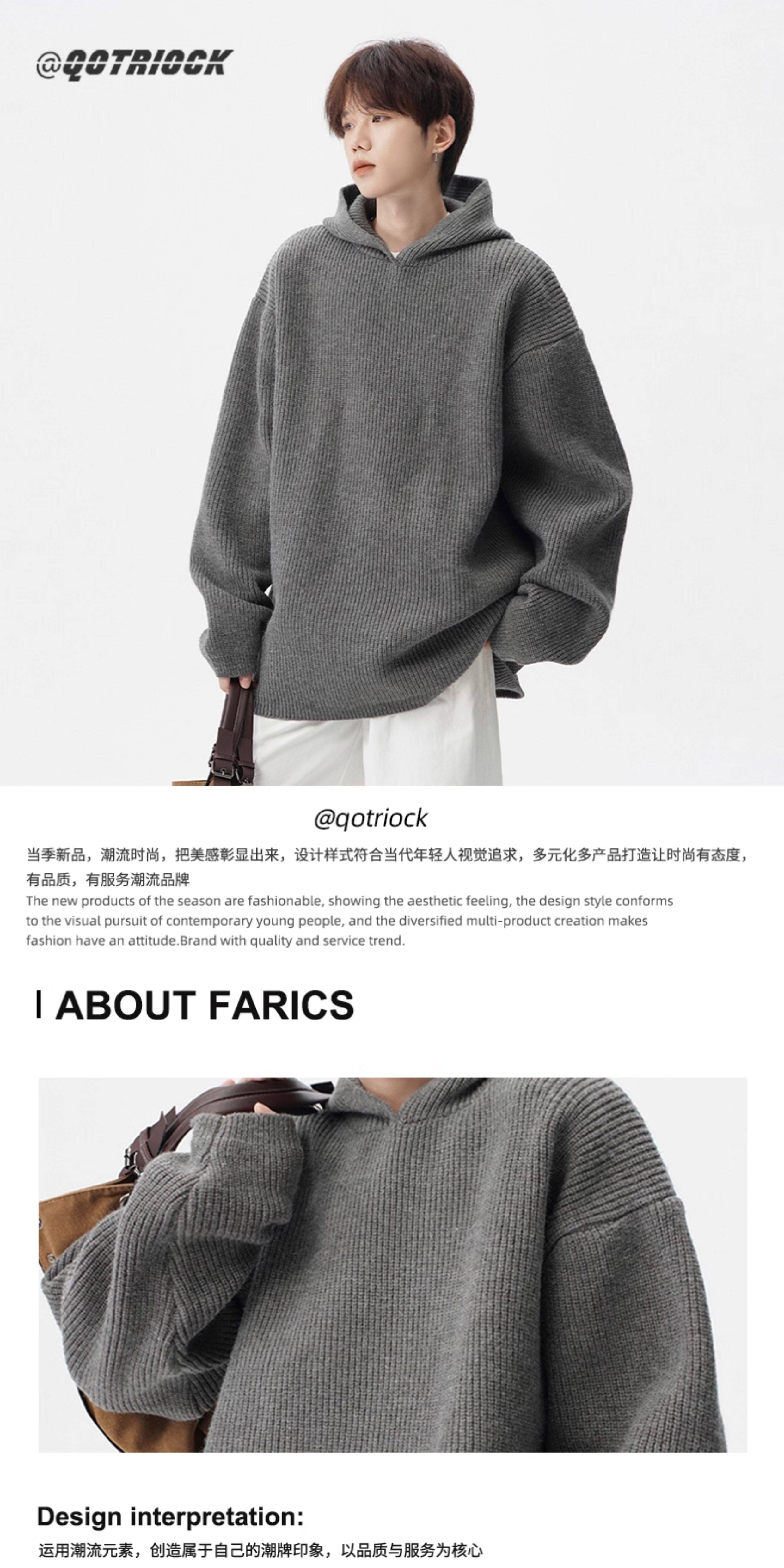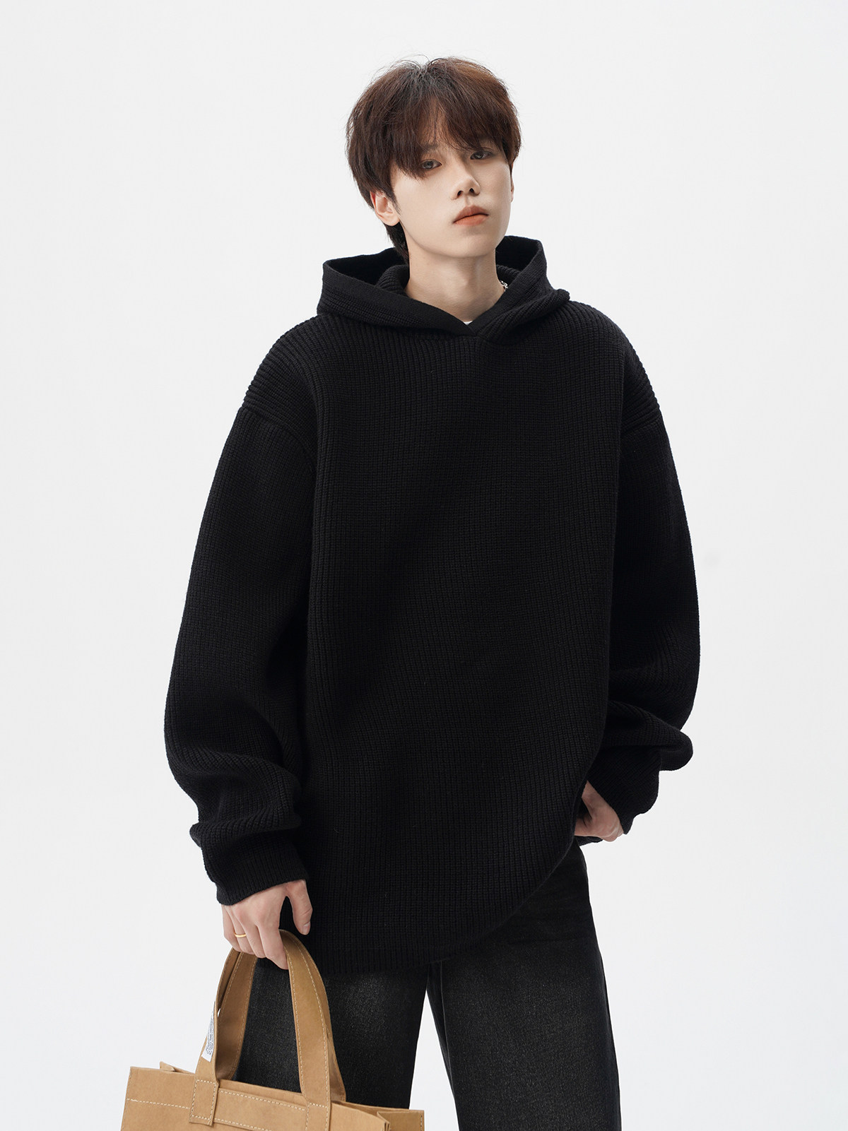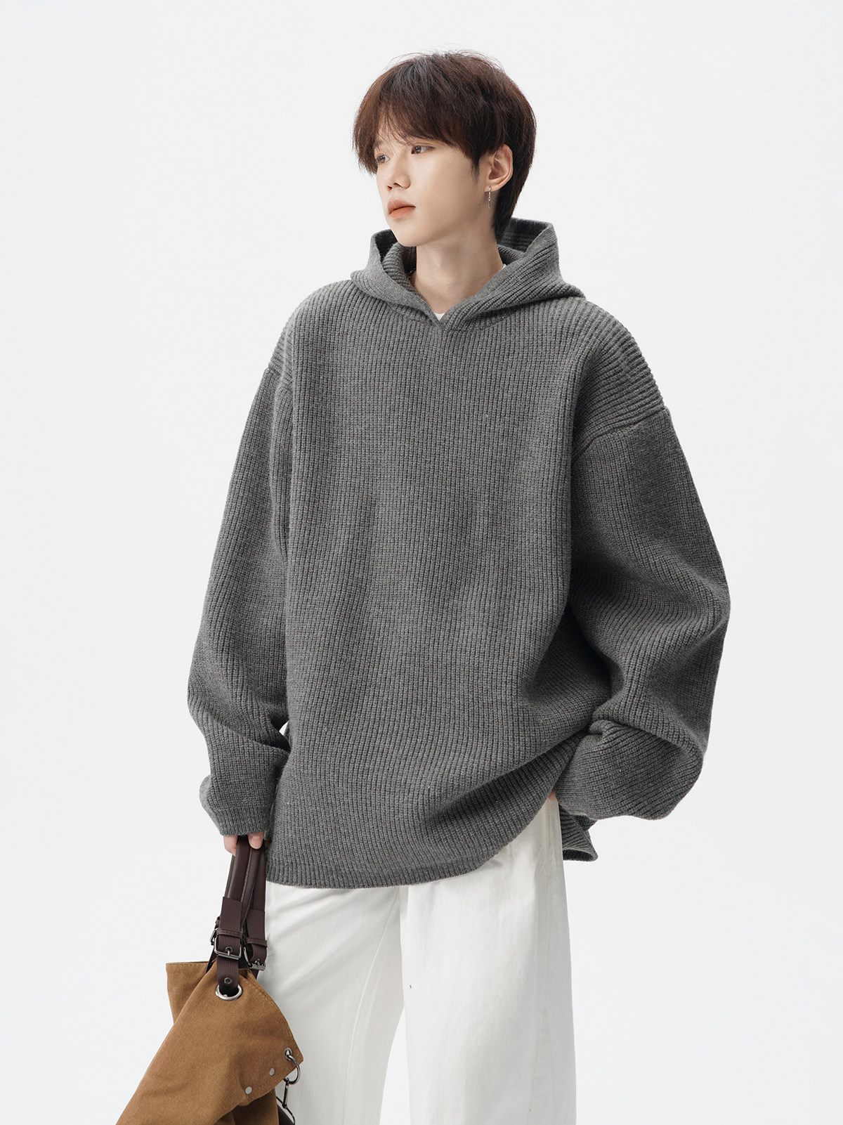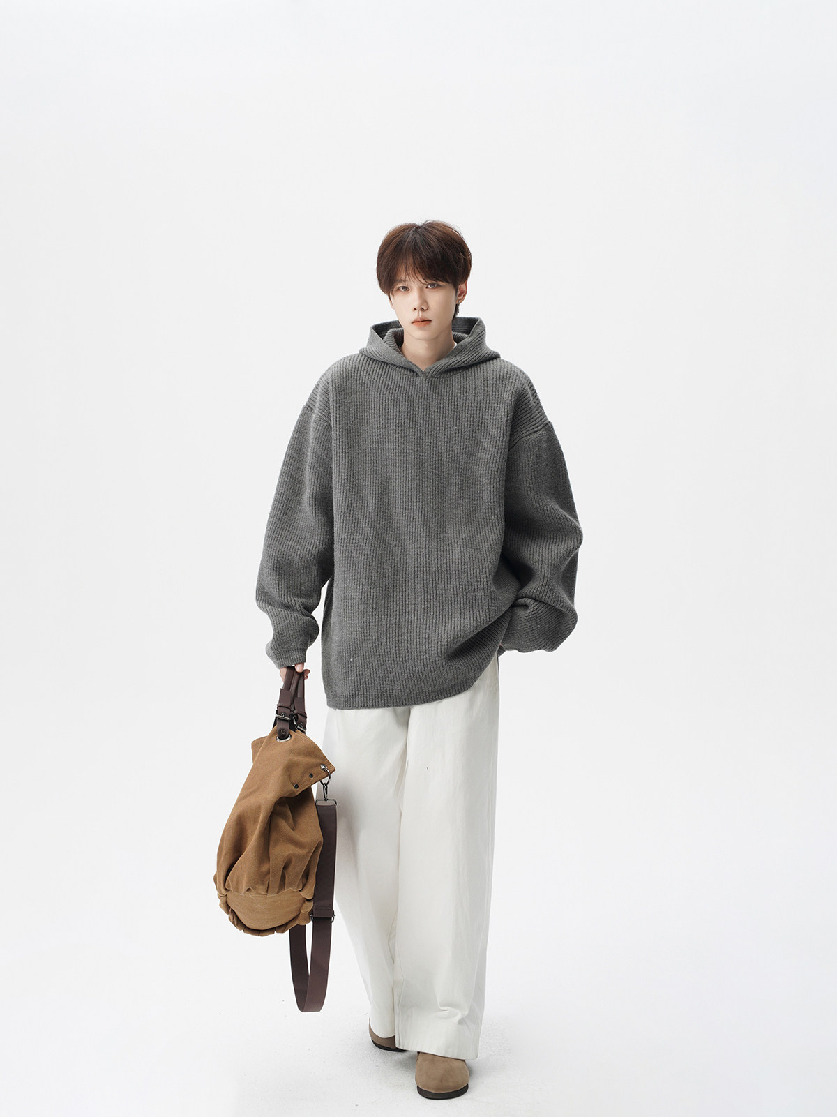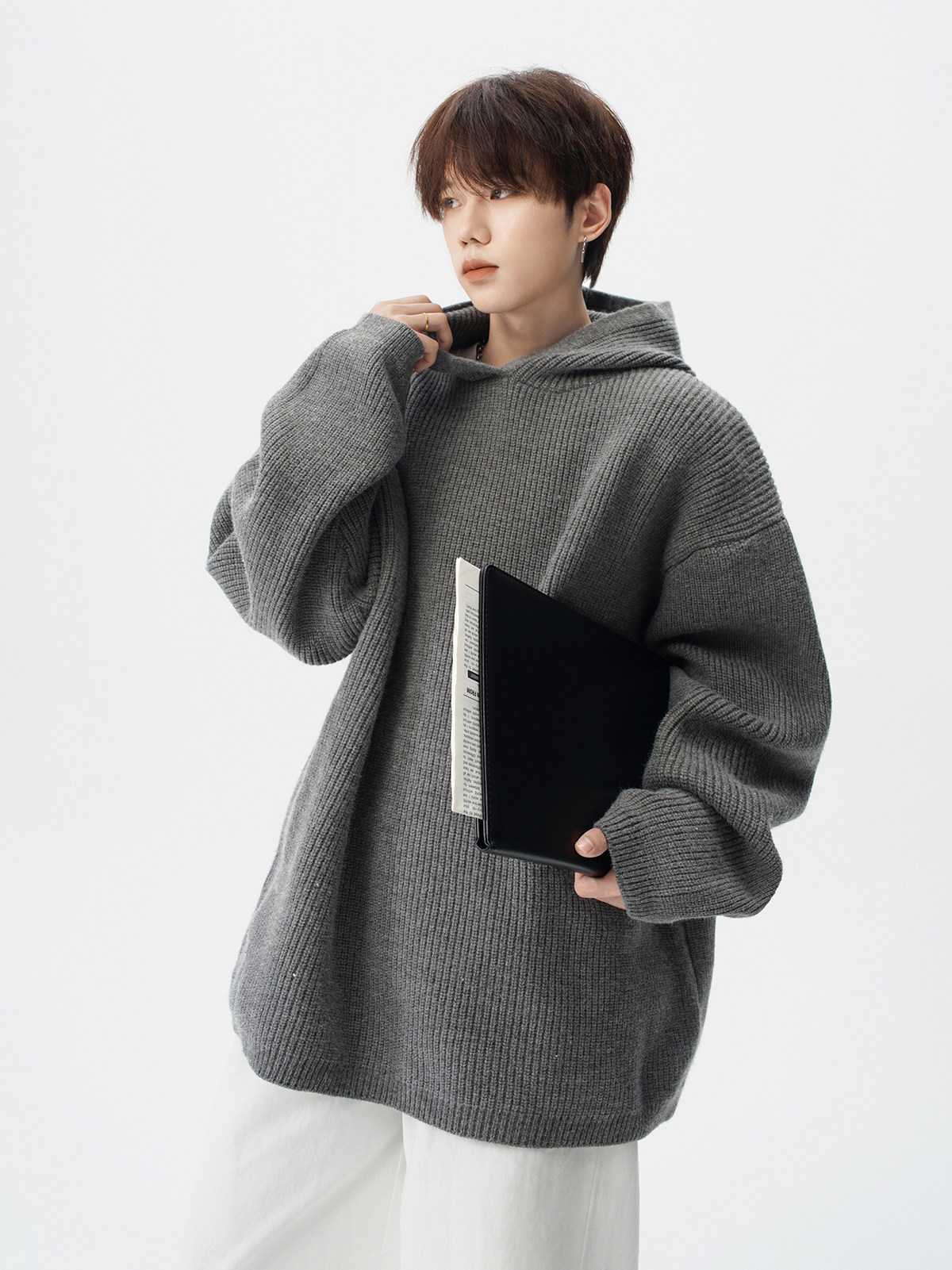 美式復古連帽毛衣男女冬季潮牌慵懶風連帽針織衫寬松加厚休閒外套