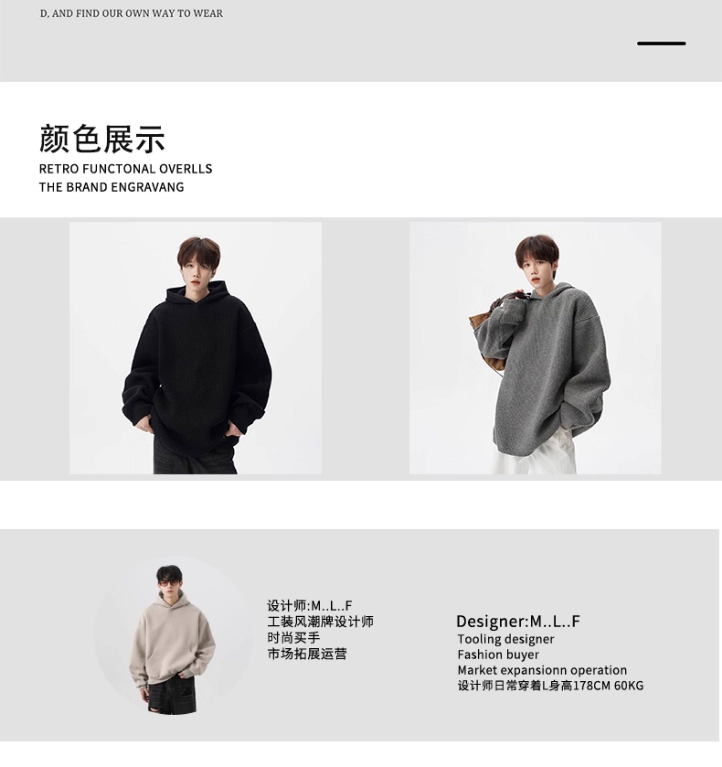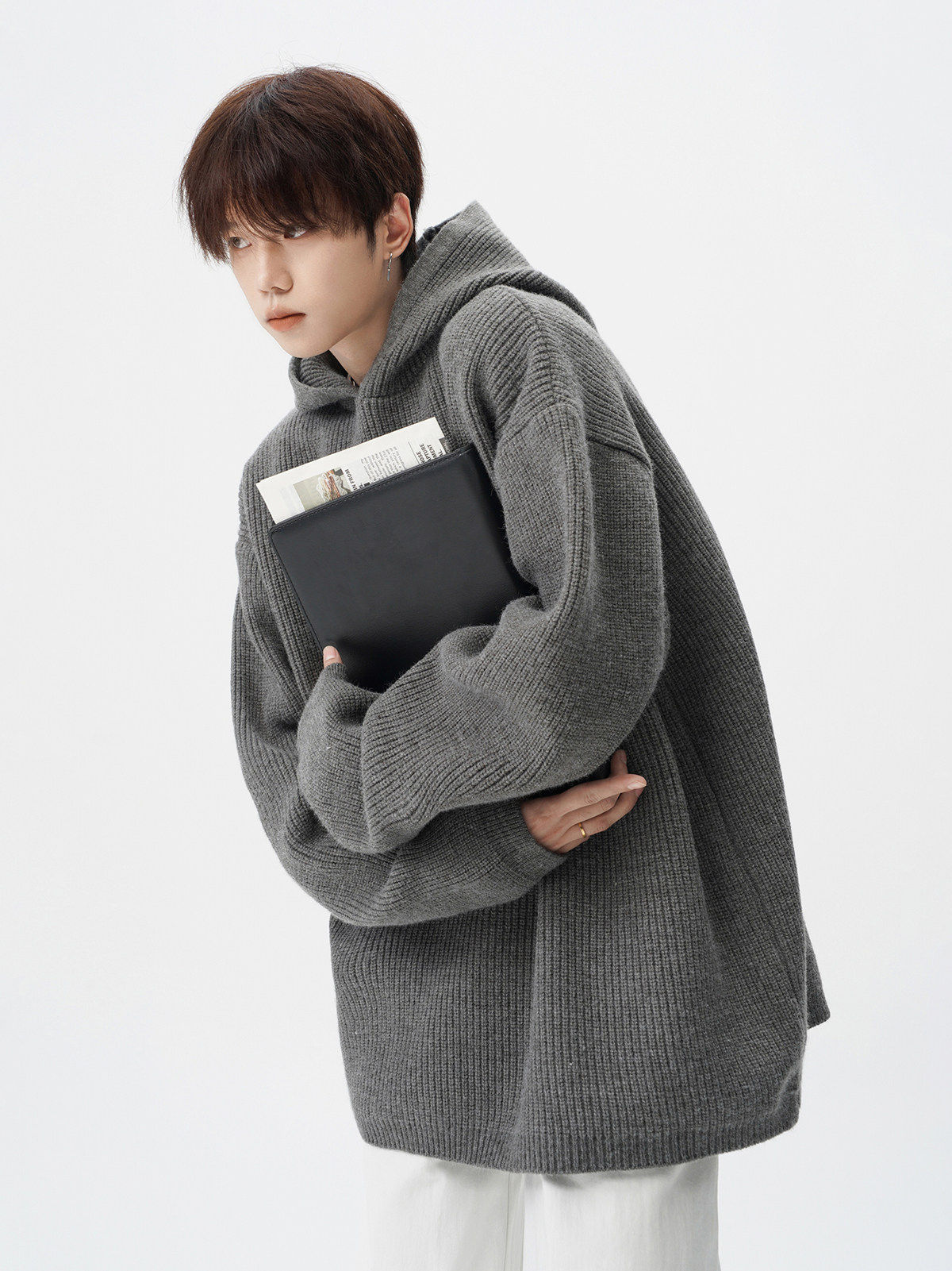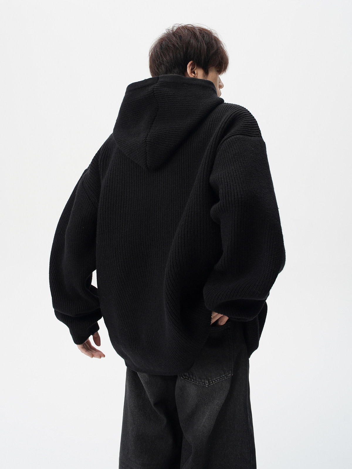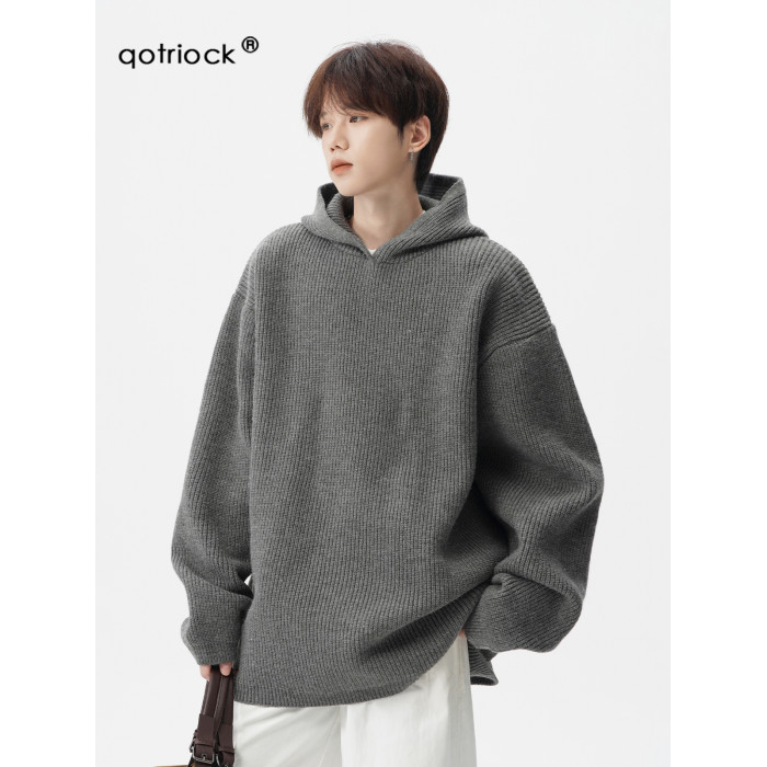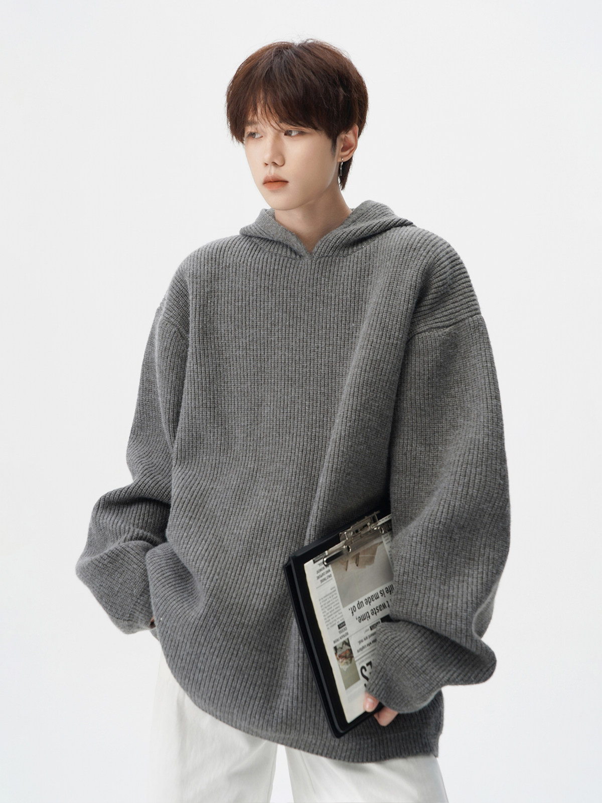 美式復古連帽毛衣男女冬季潮牌慵懶風連帽針織衫寬松加厚休閒外套