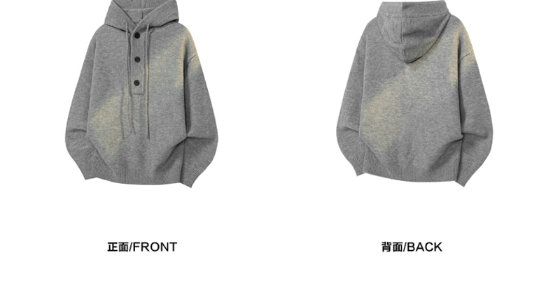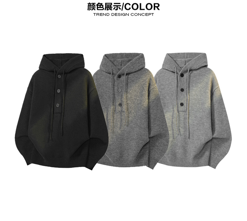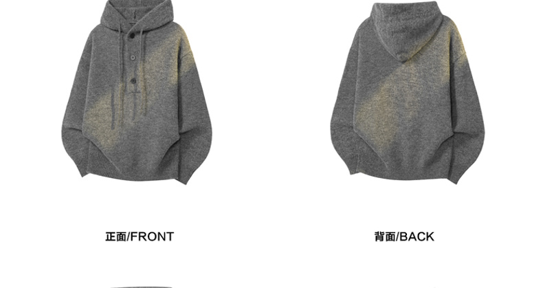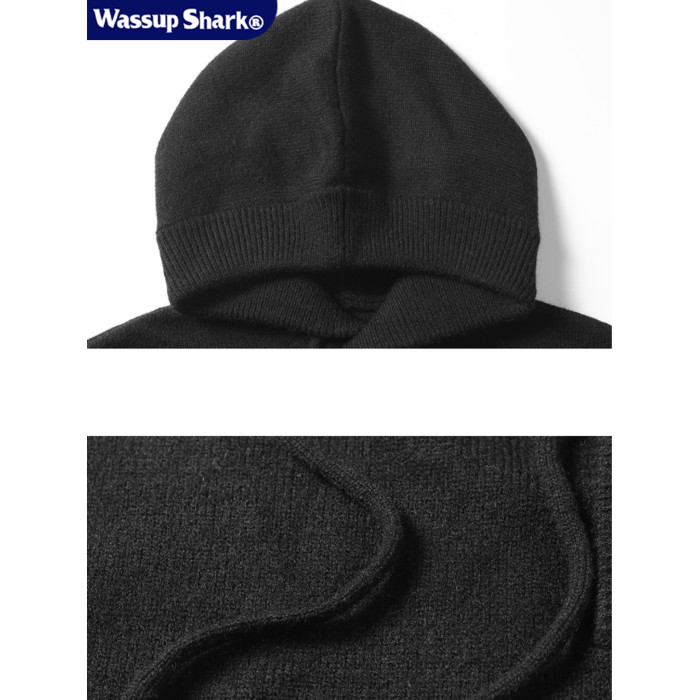 WASSUP SHARK復古灰色重磅連帽毛衣男女潮牌秋冬慵懶風針織衫外套
