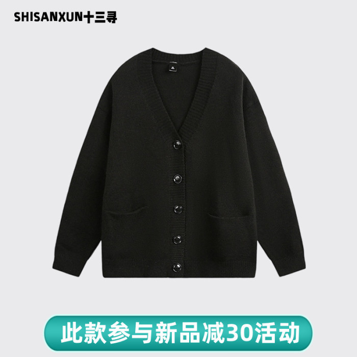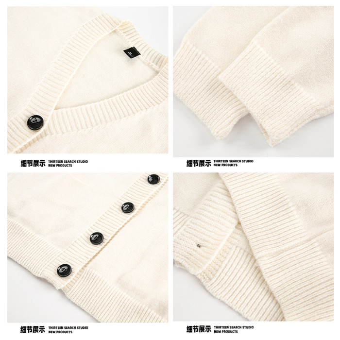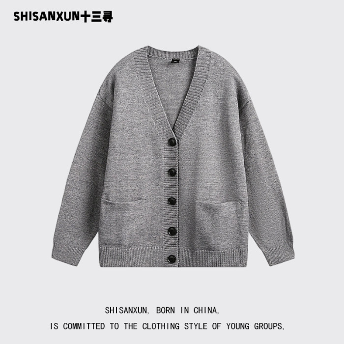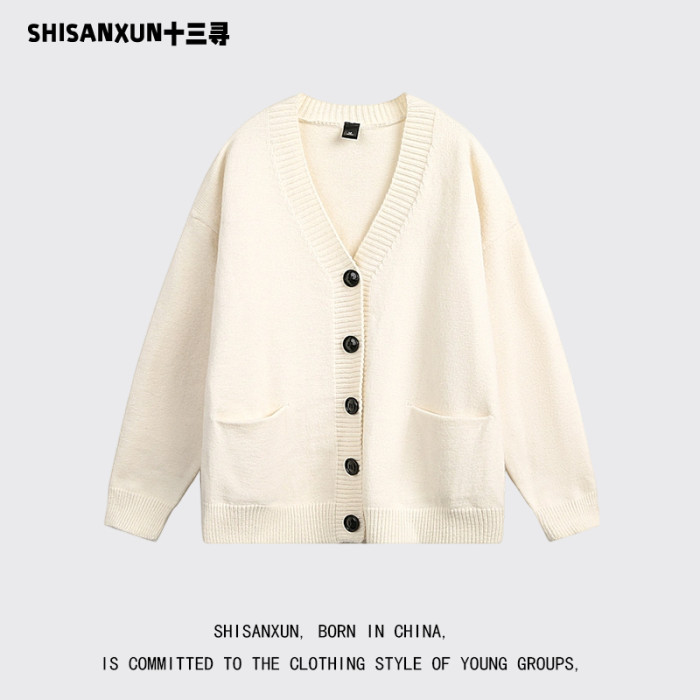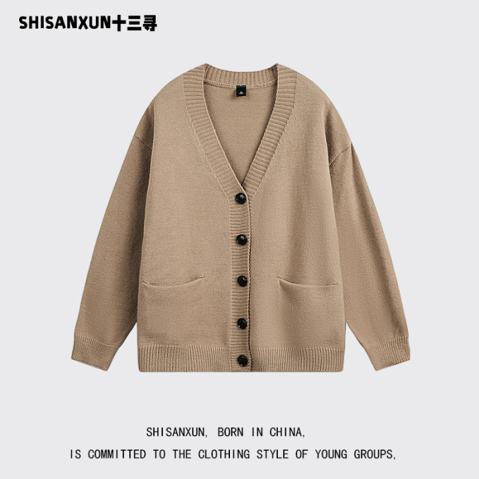 SHISANXUN針織開衫外套男春秋美式情侶v領毛衣慵懶風上衣韓系風格