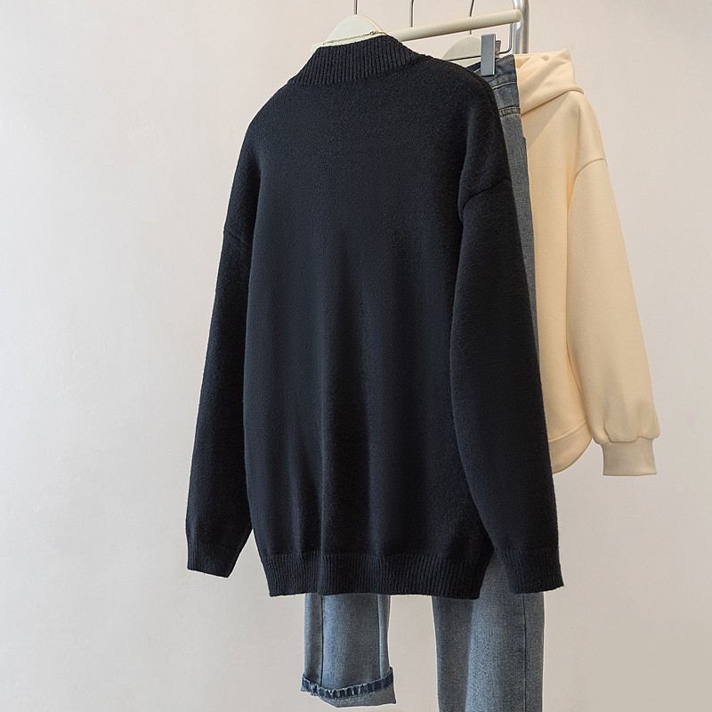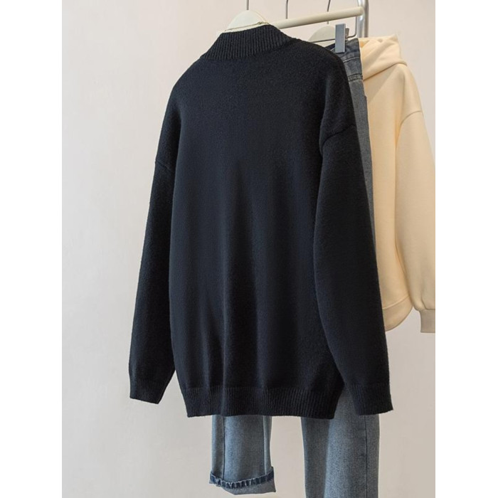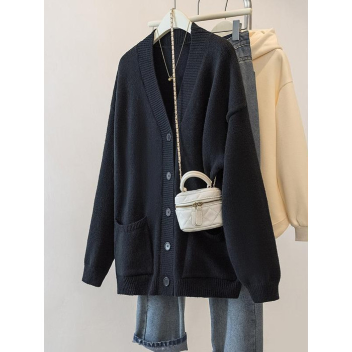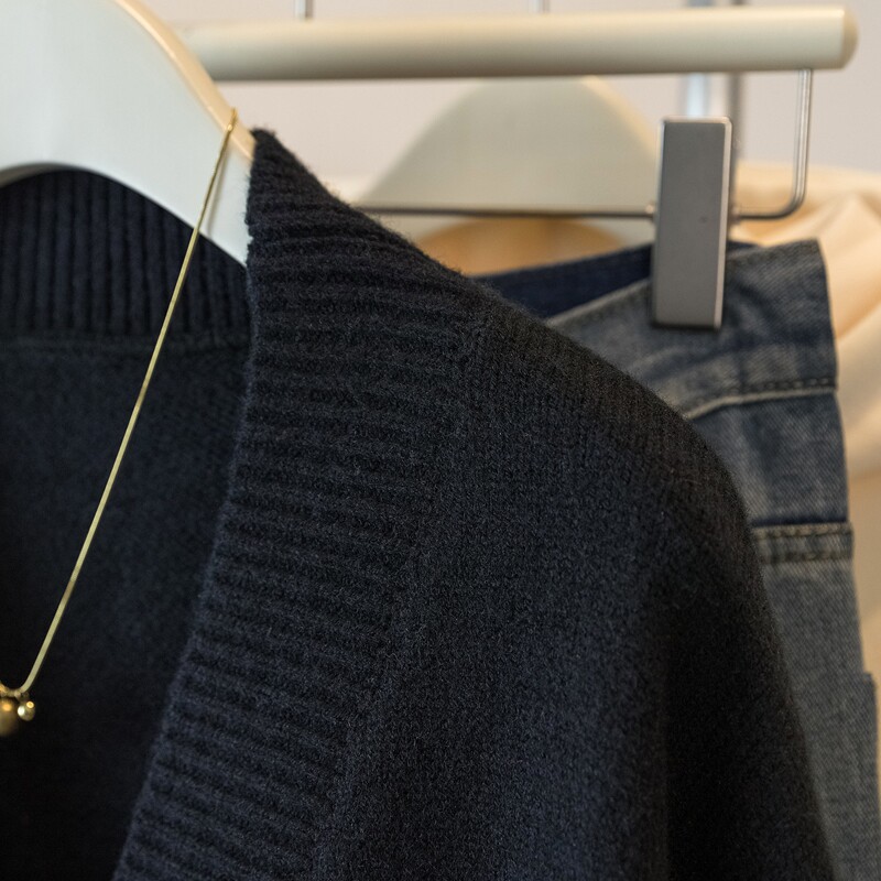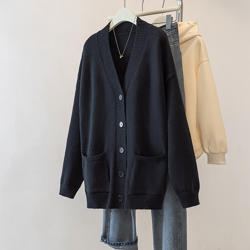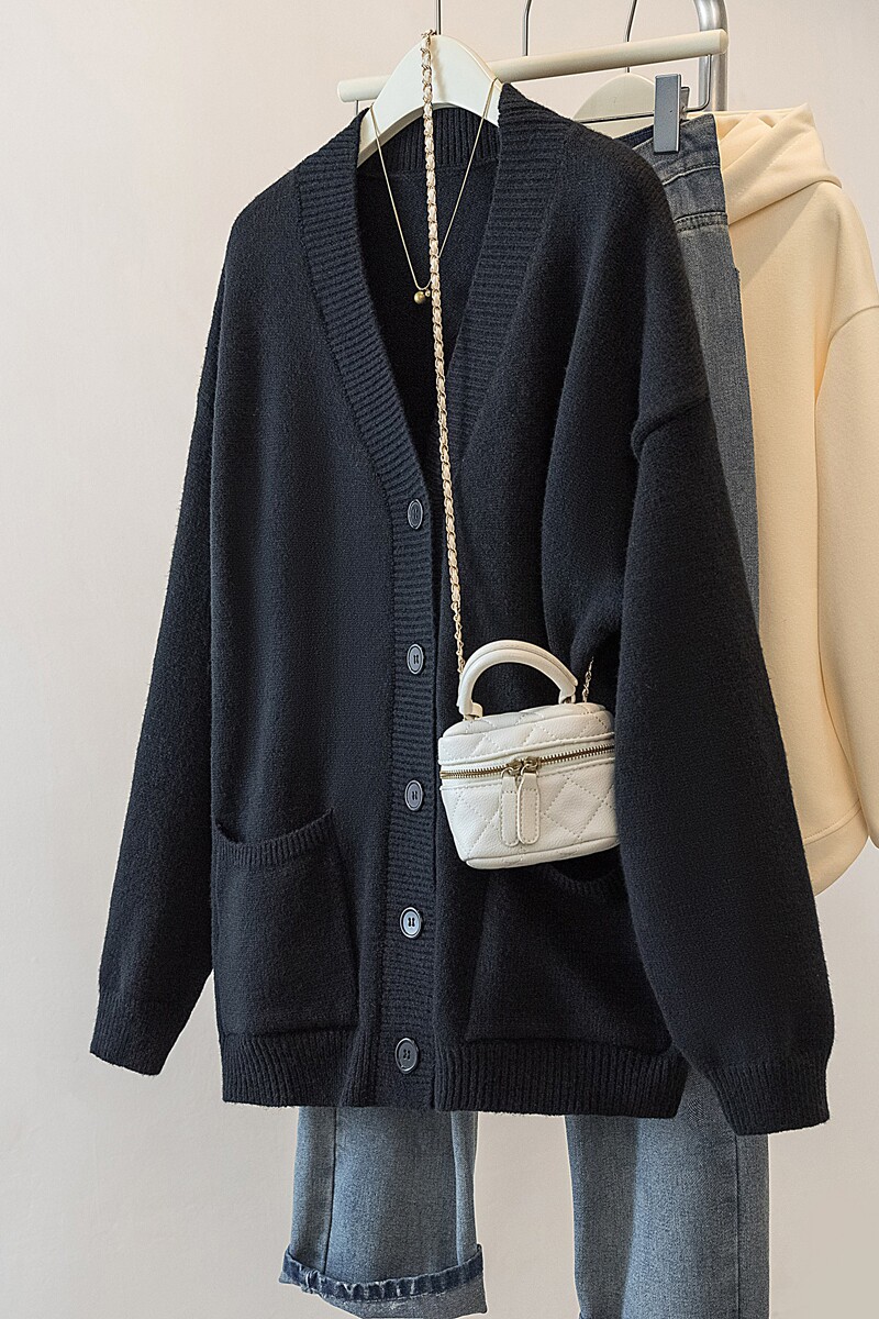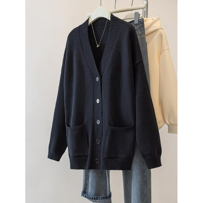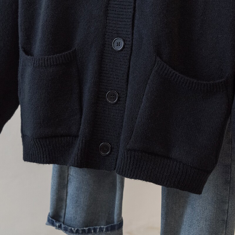 黑色毛衣開衫外套女2025年秋季大碼顯瘦慵懶風寬松中長款針織上衣