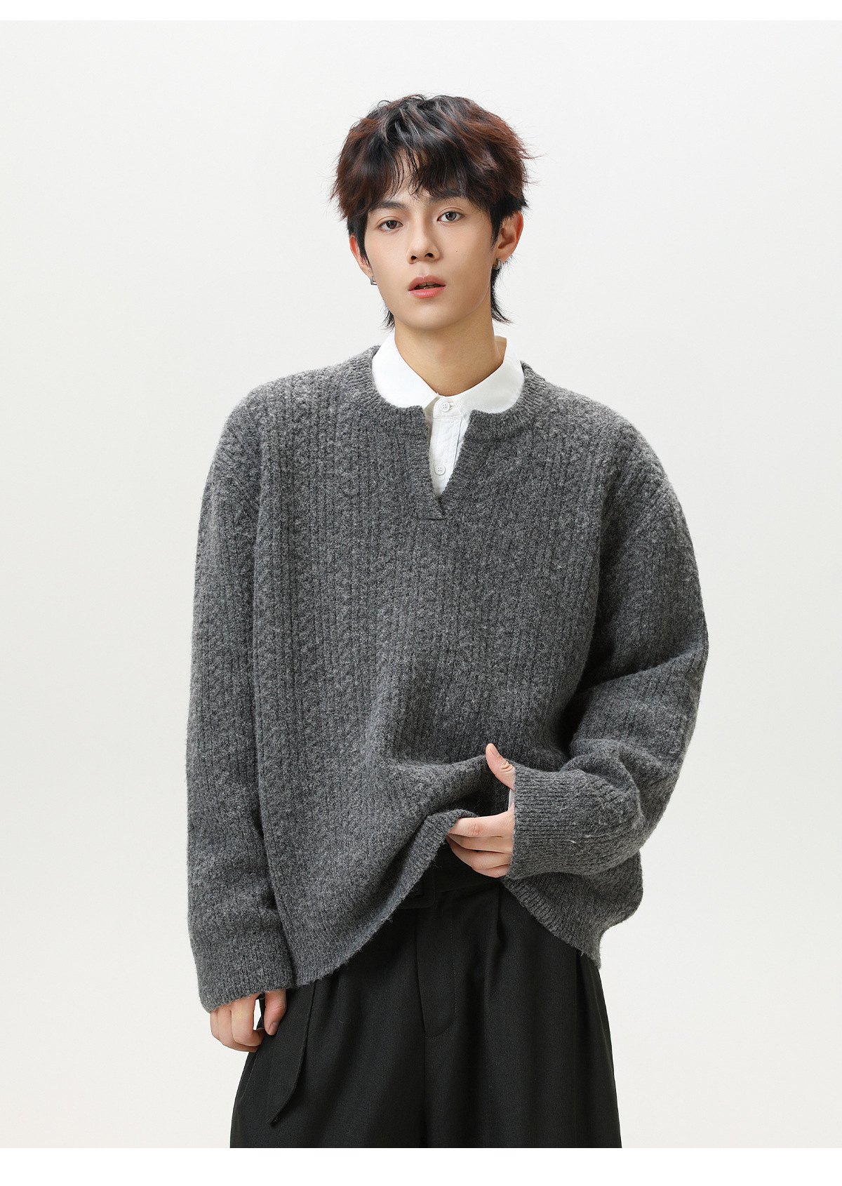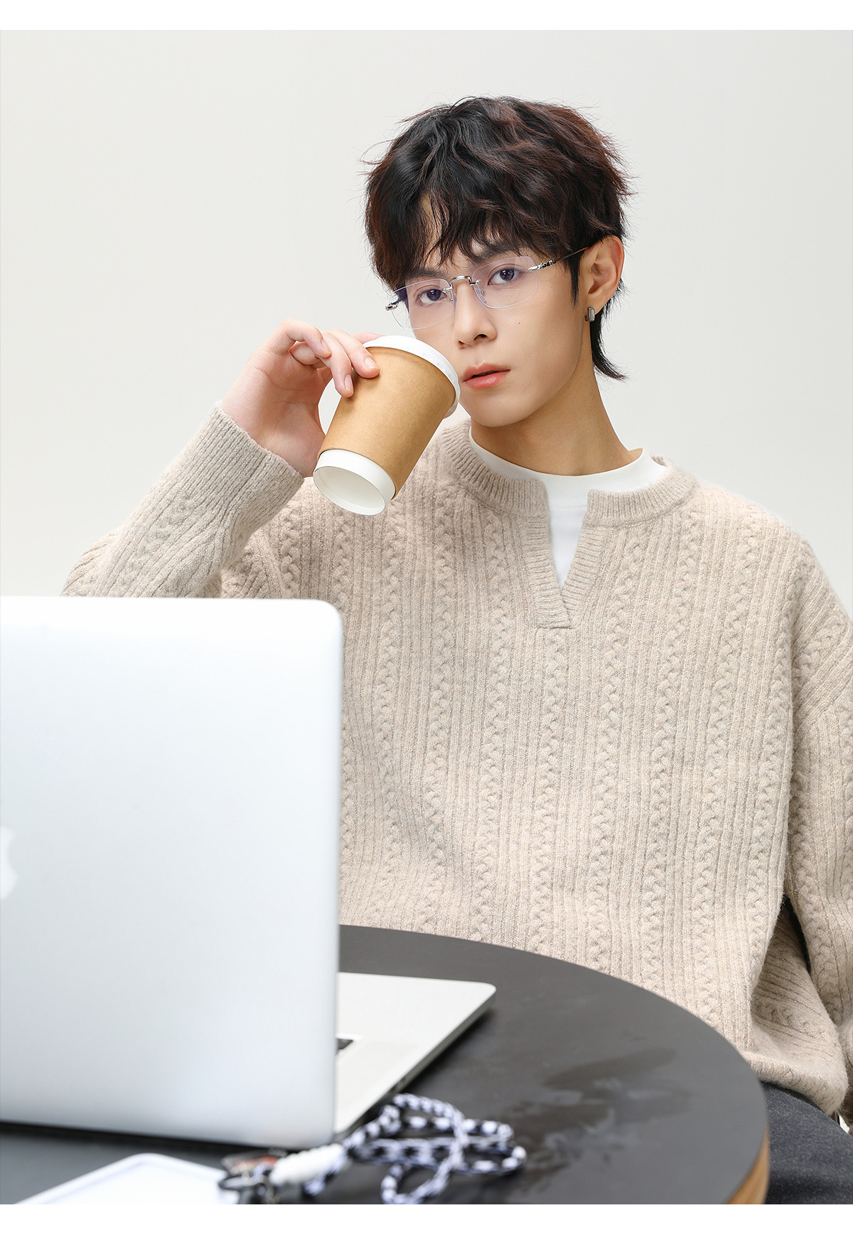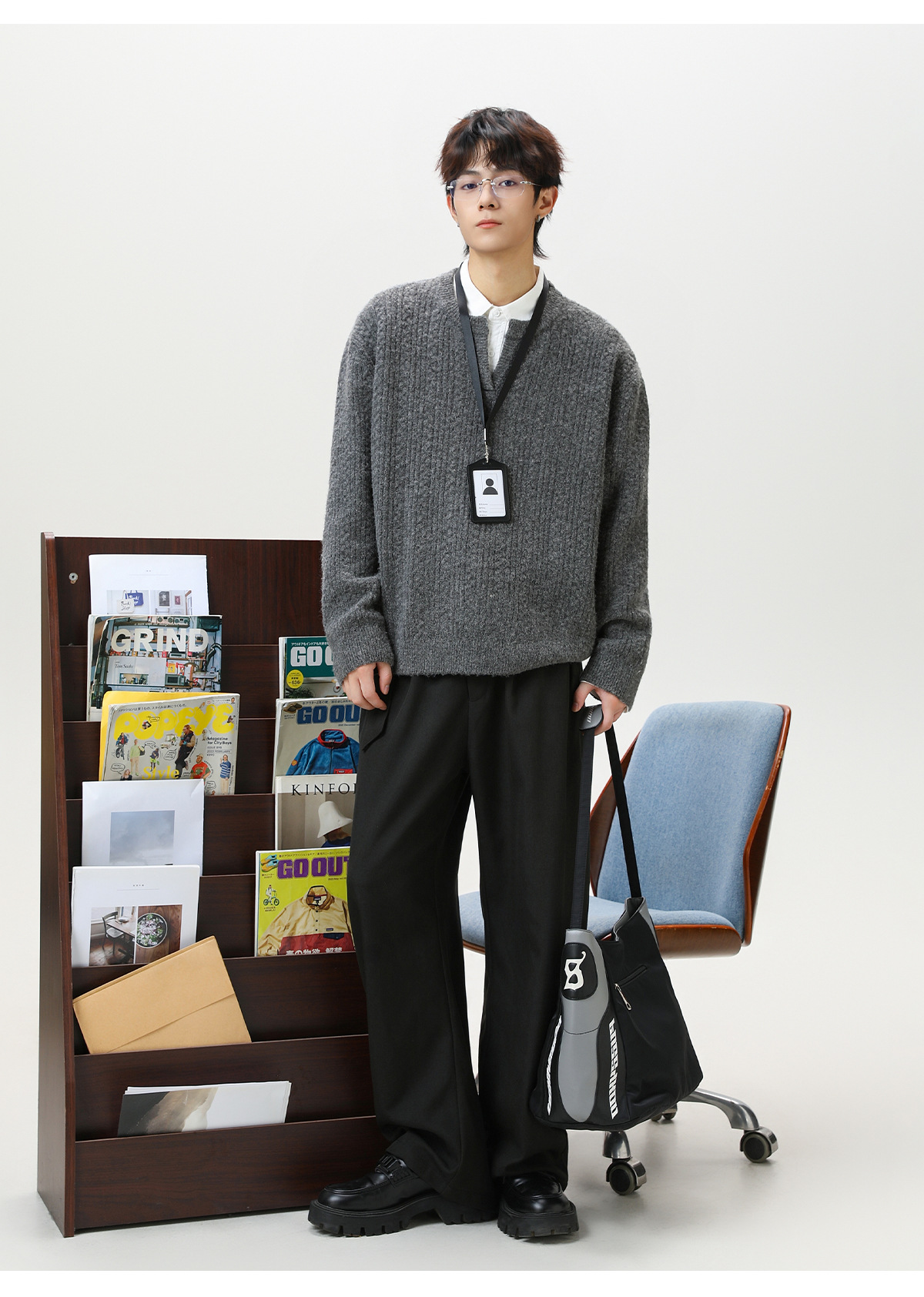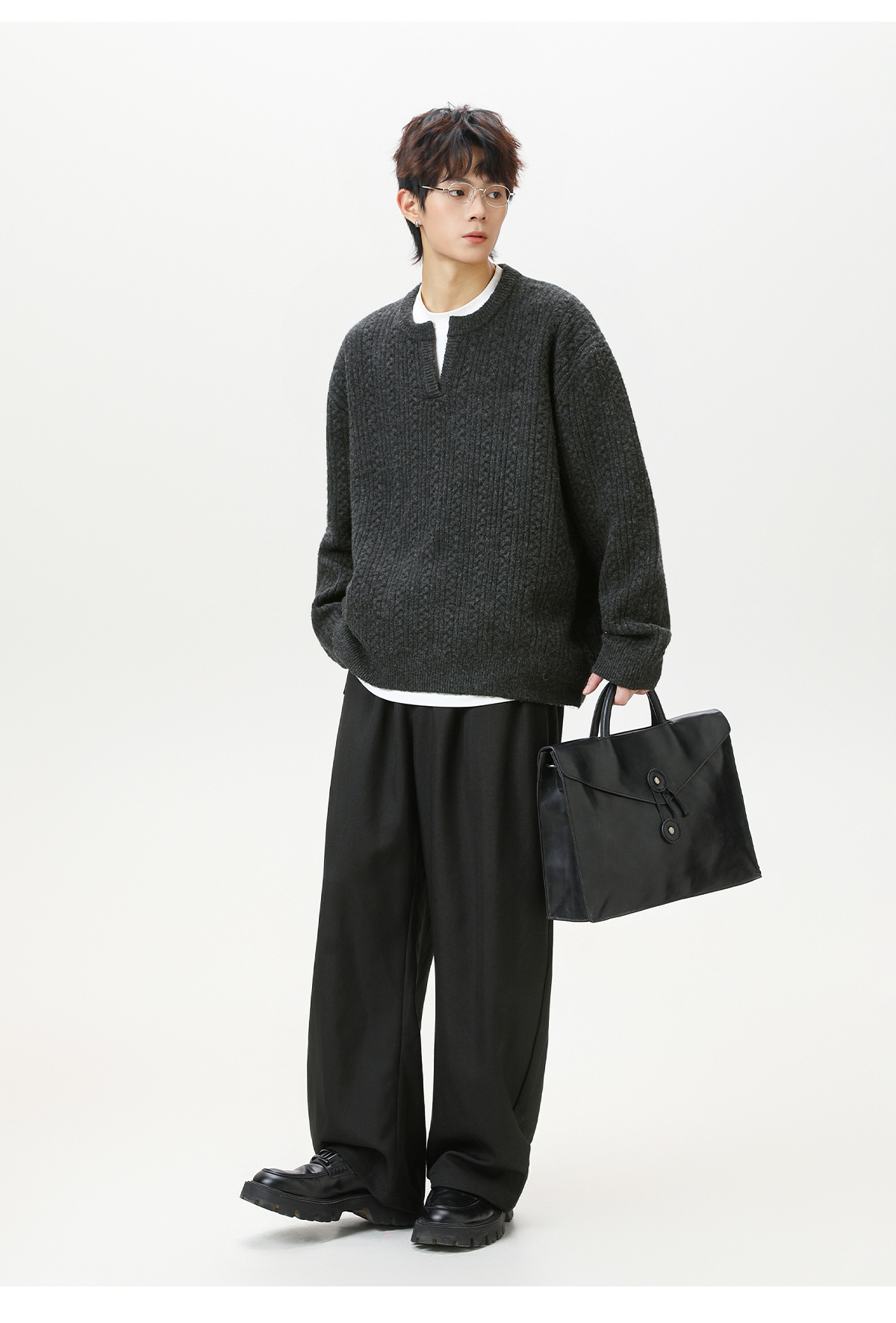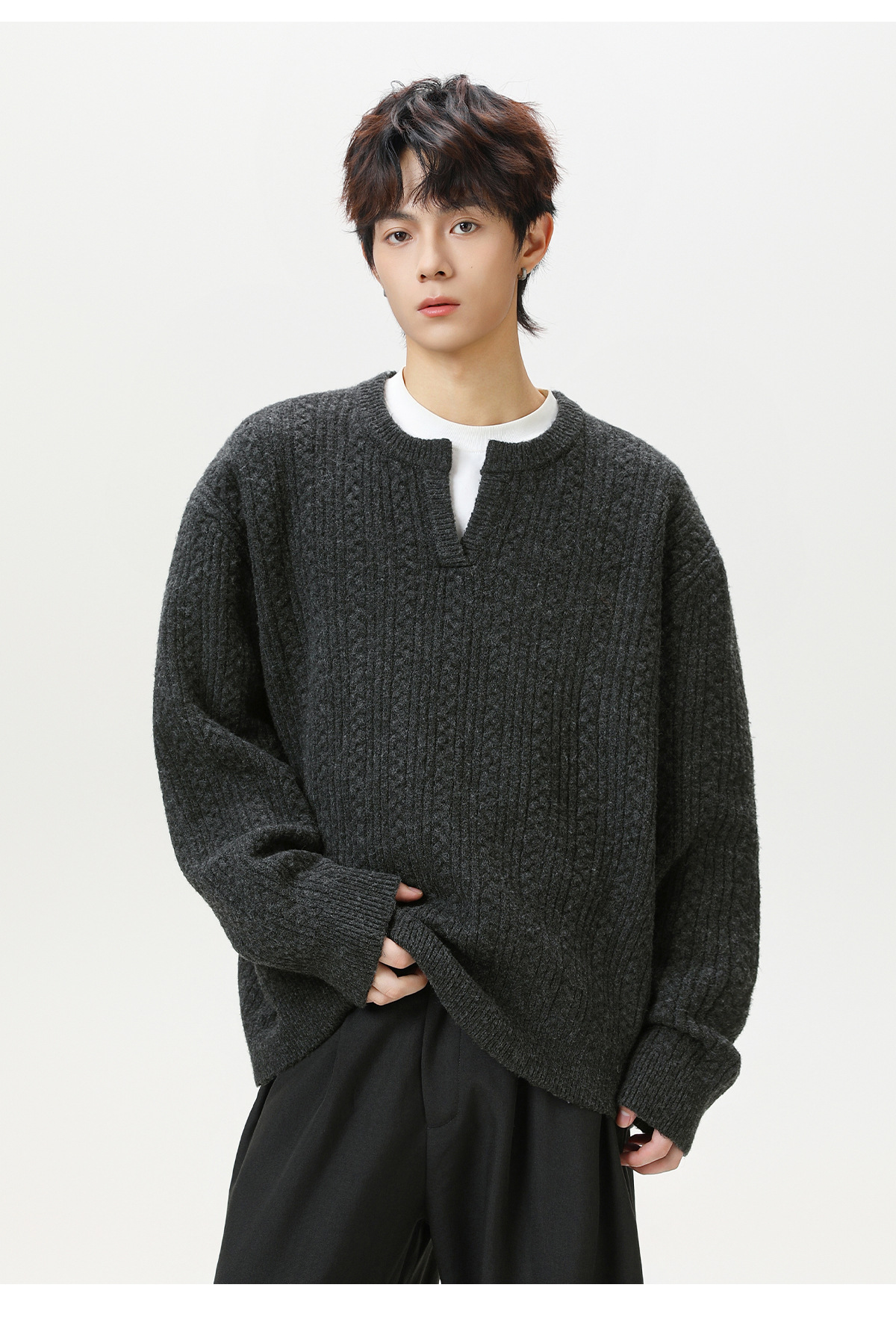 SYP日系不系男生秋冬立體絞花肌理復古寬松重磅小v領毛衣針織衫